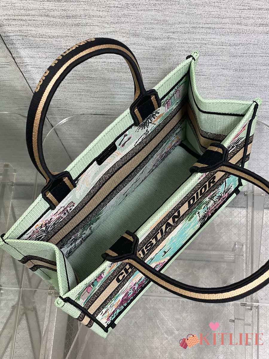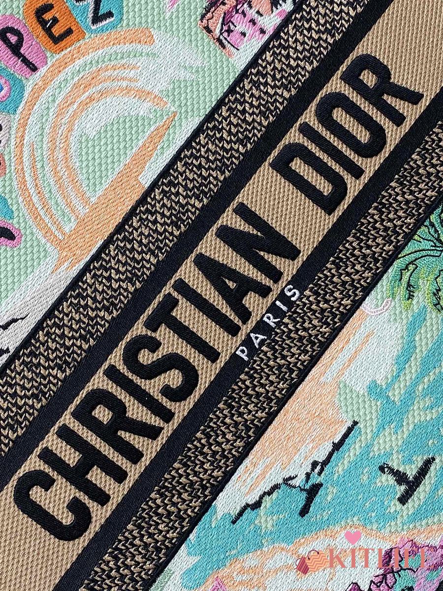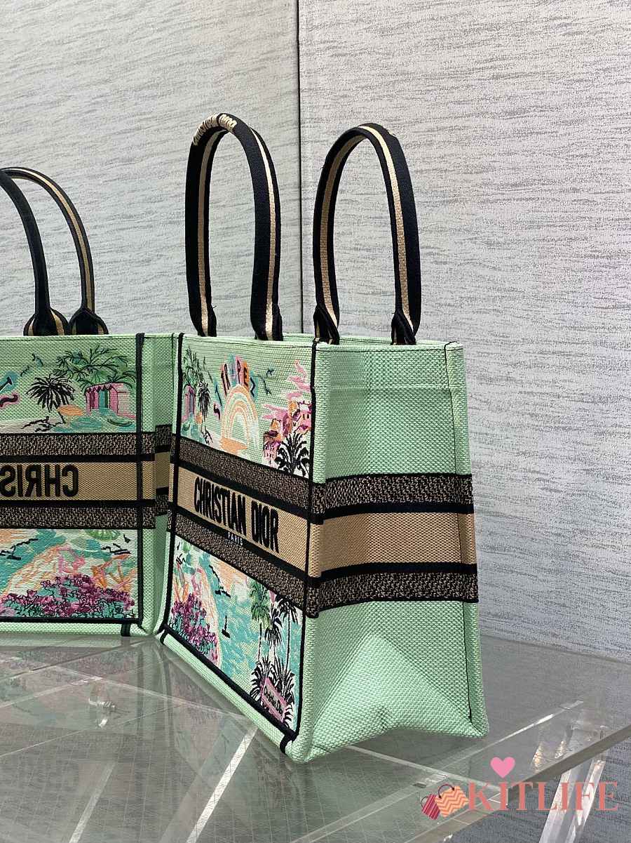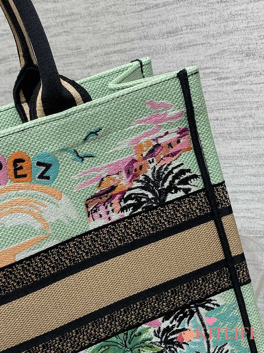 Kitlife Dior Souvenir Medium Green Natural Raffia And Multicolor Book Tote 36x18x28cm