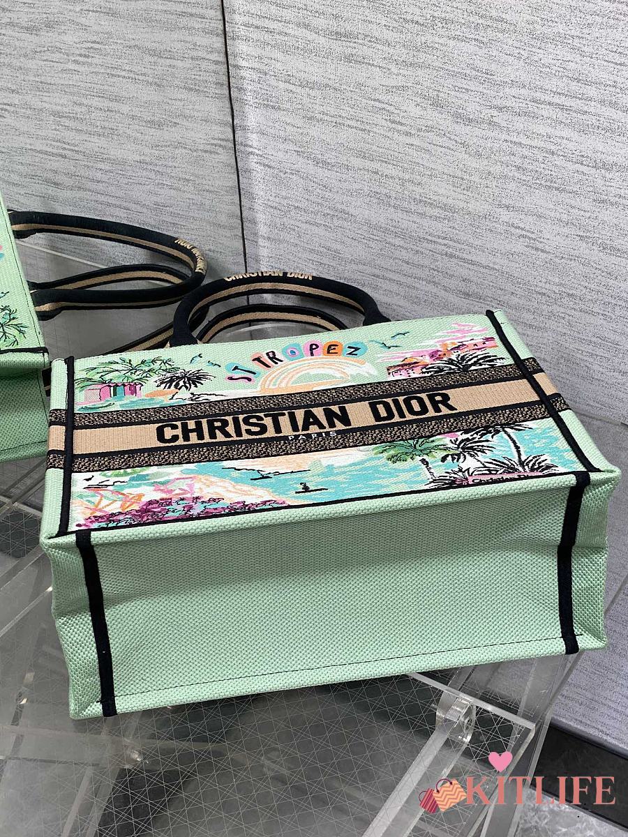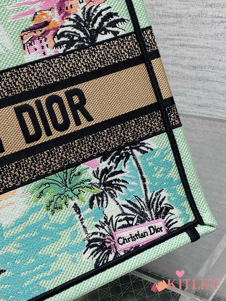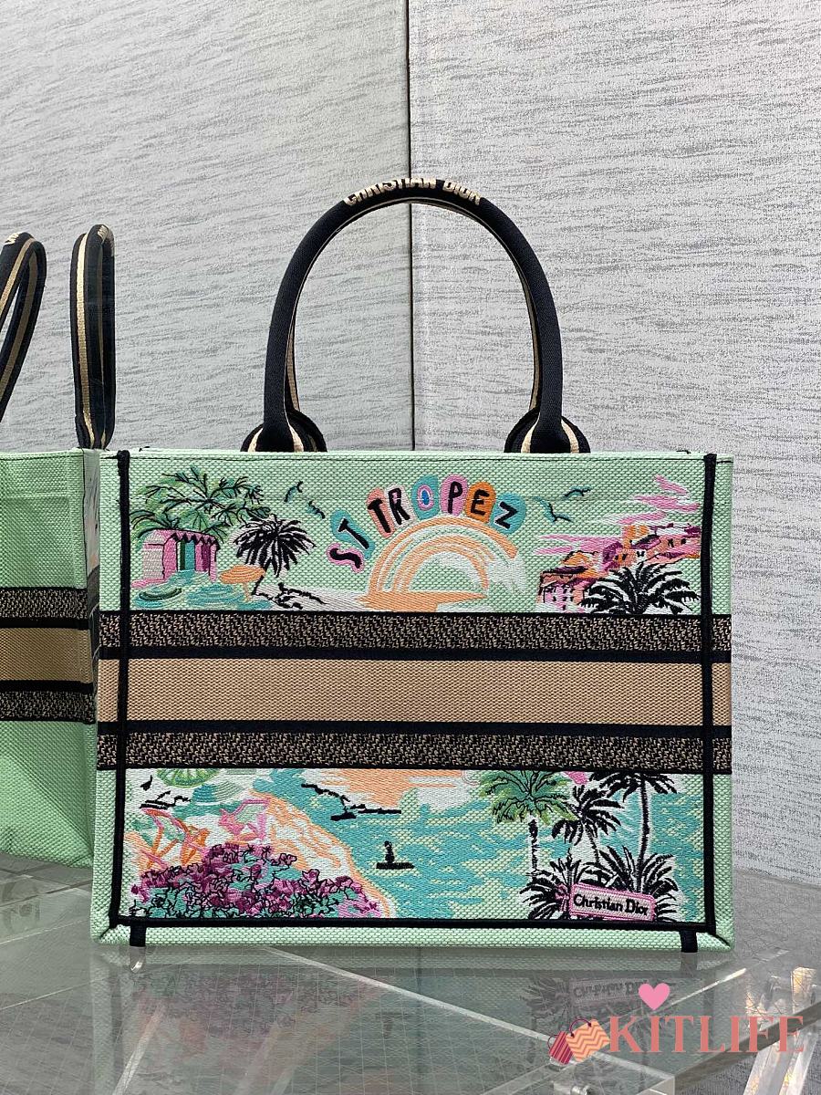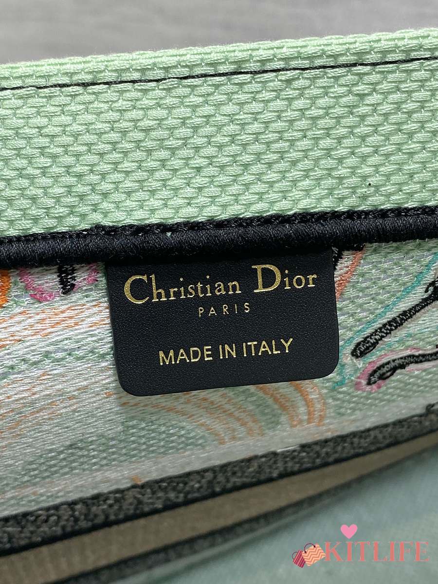 Kitlife Dior Souvenir Medium Green Natural Raffia And Multicolor Book Tote 36x18x28cm
