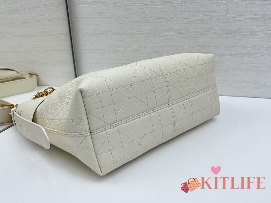 Kitlife Dior Toujours Handbag Graphic Cannage Calfskin White 37x22x12cm