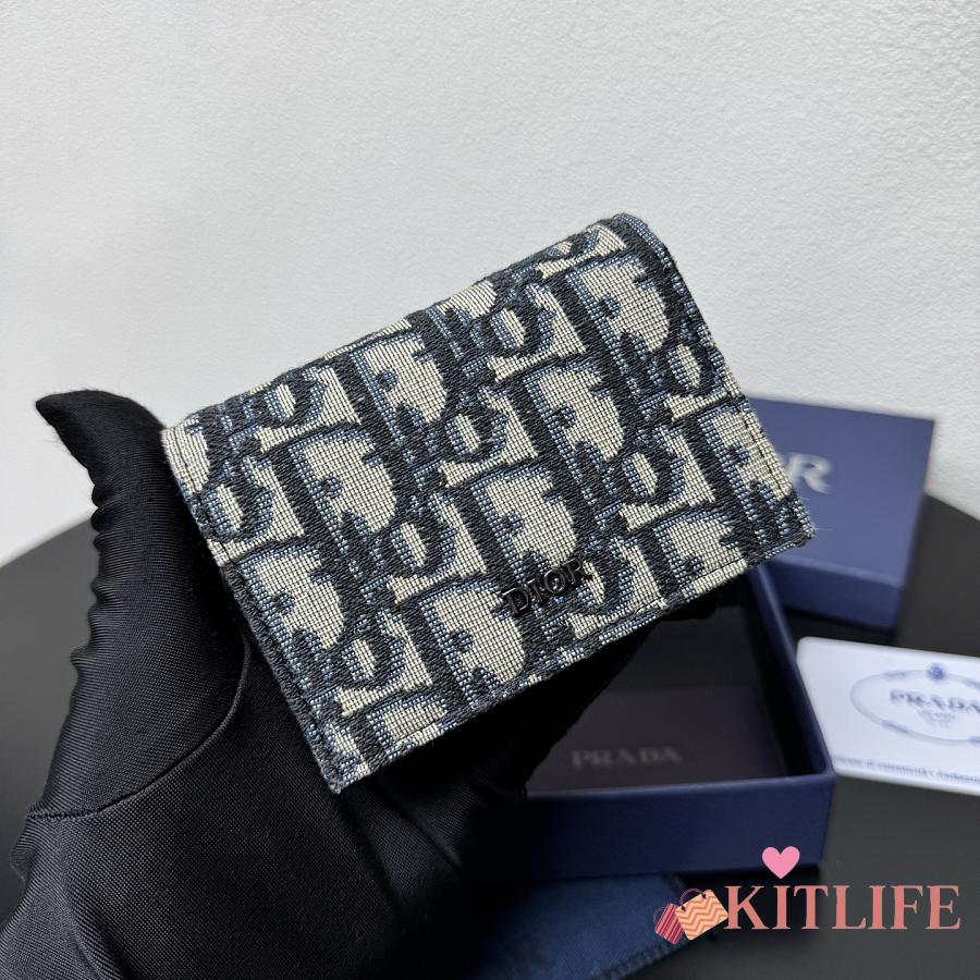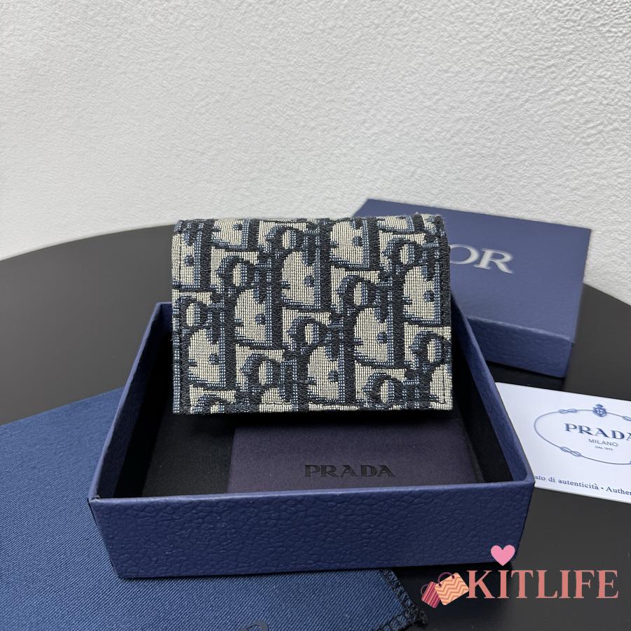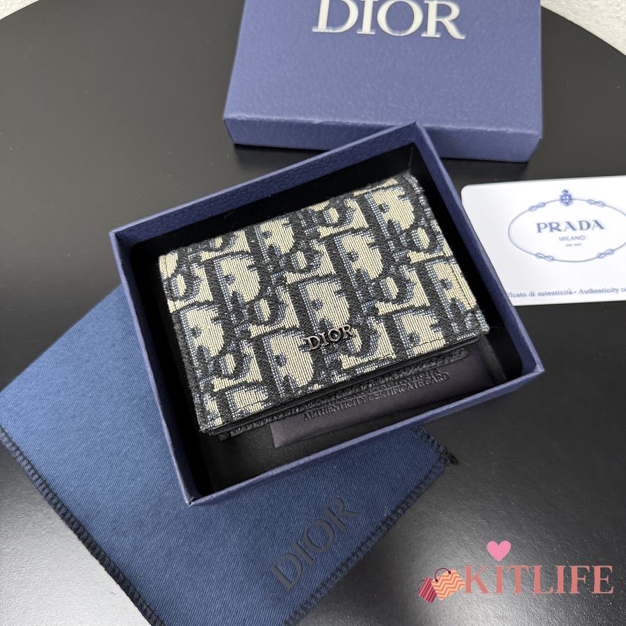 Kitlife Dior Wallet Blue Dior Oblique Jacquard 8012S16 10.5x7.5x2cm