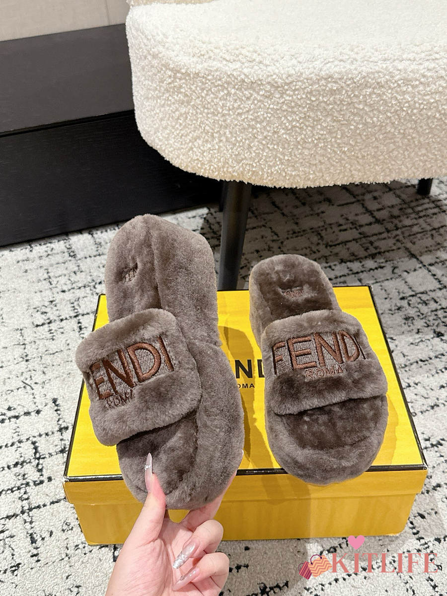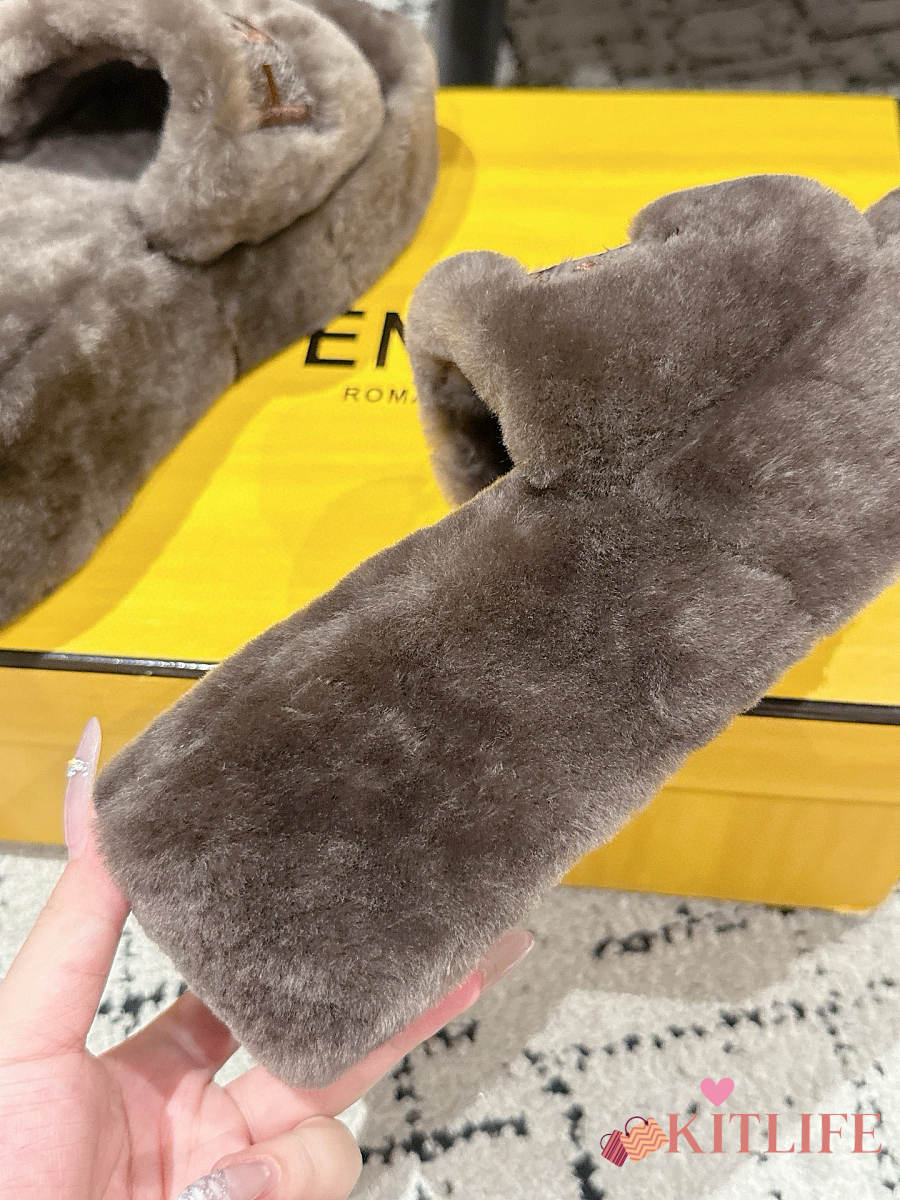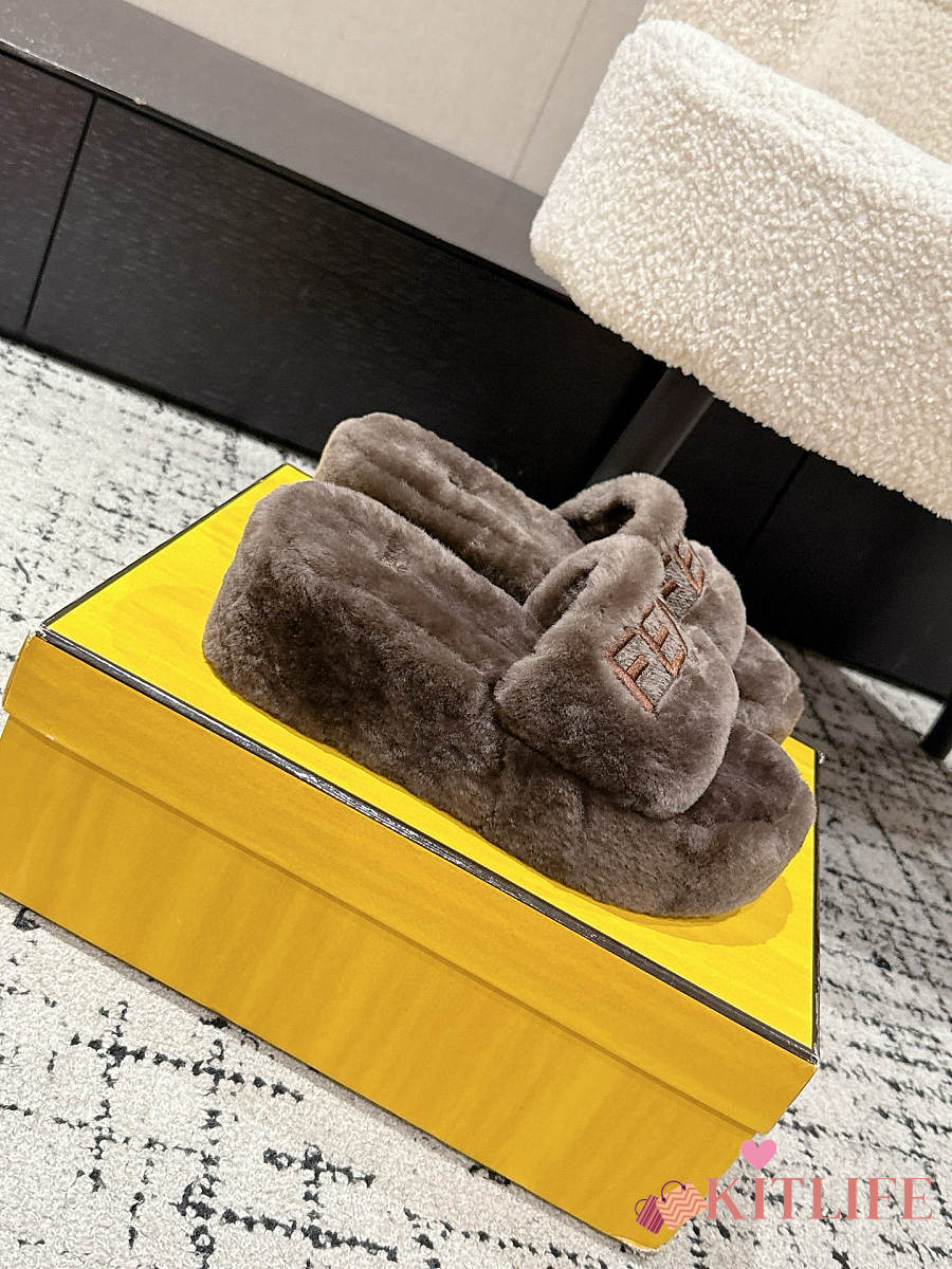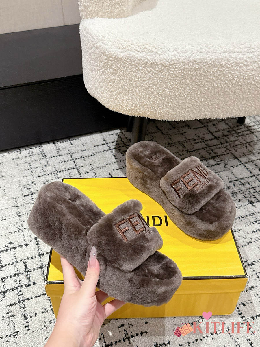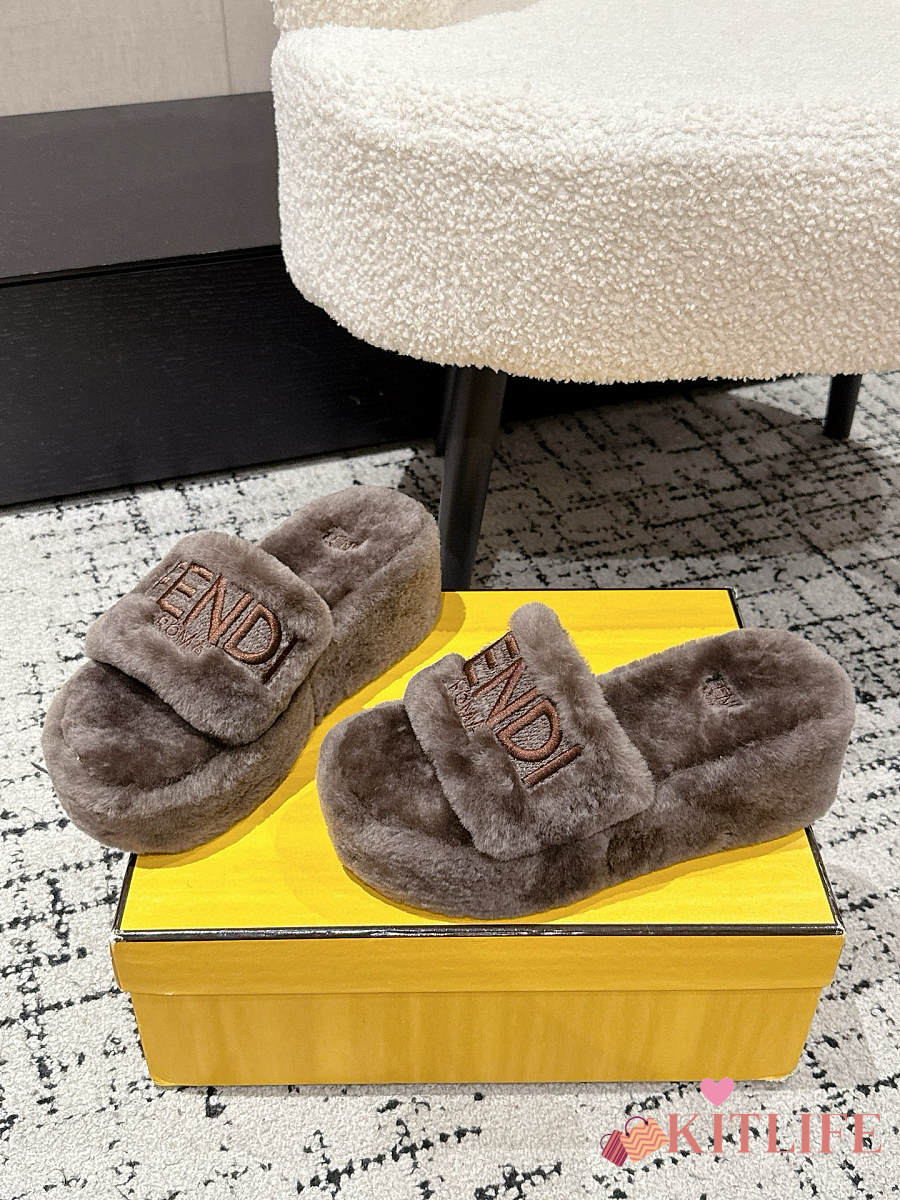 Kitlife Fendi 25 Thick-soled Furry Slides Taupe Brown