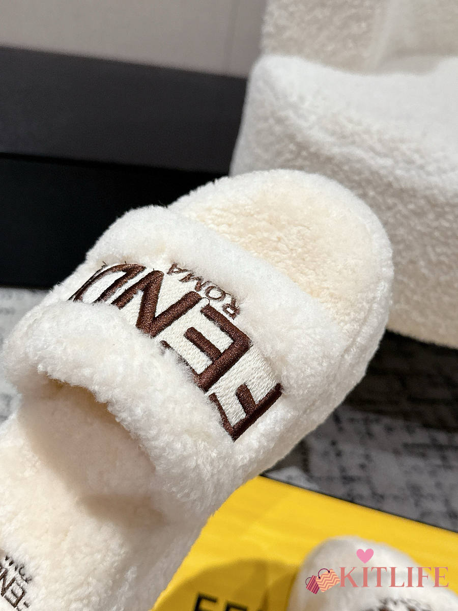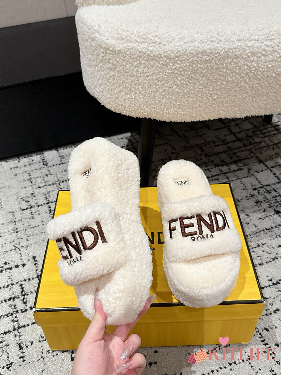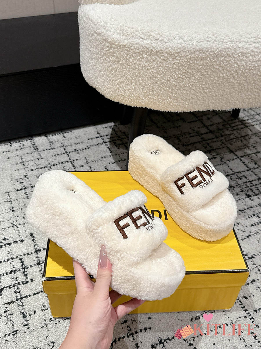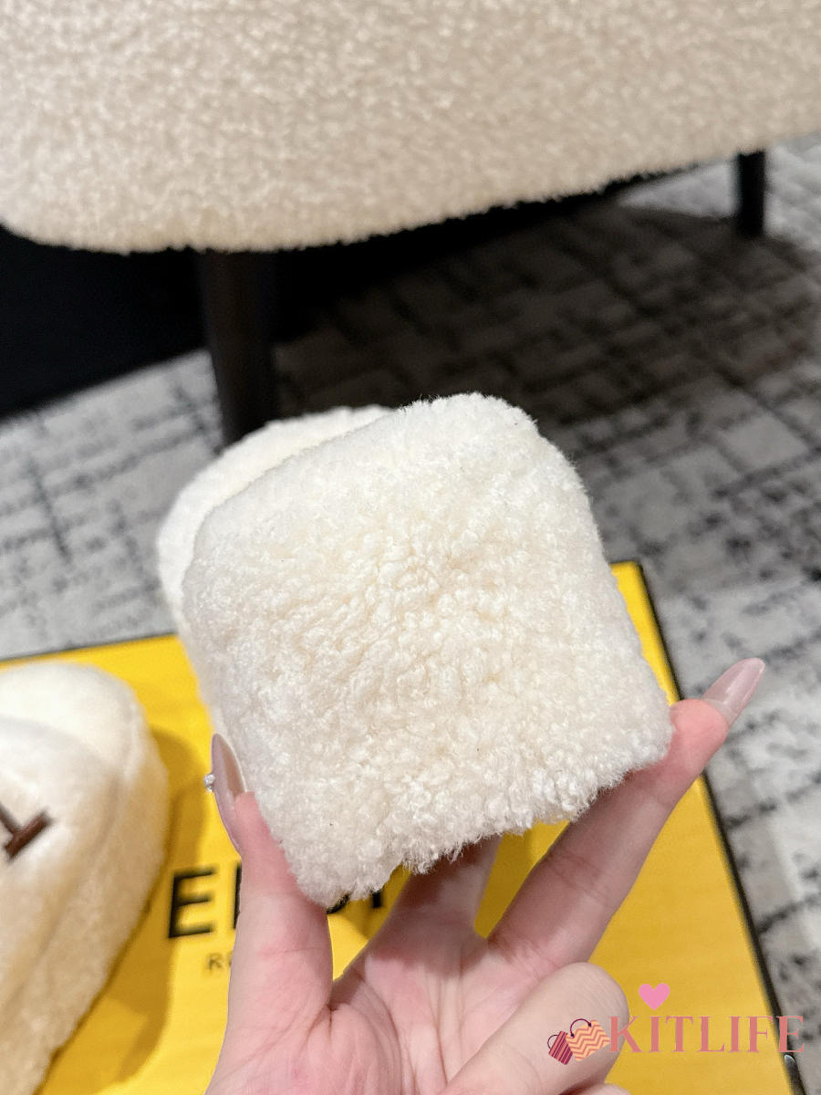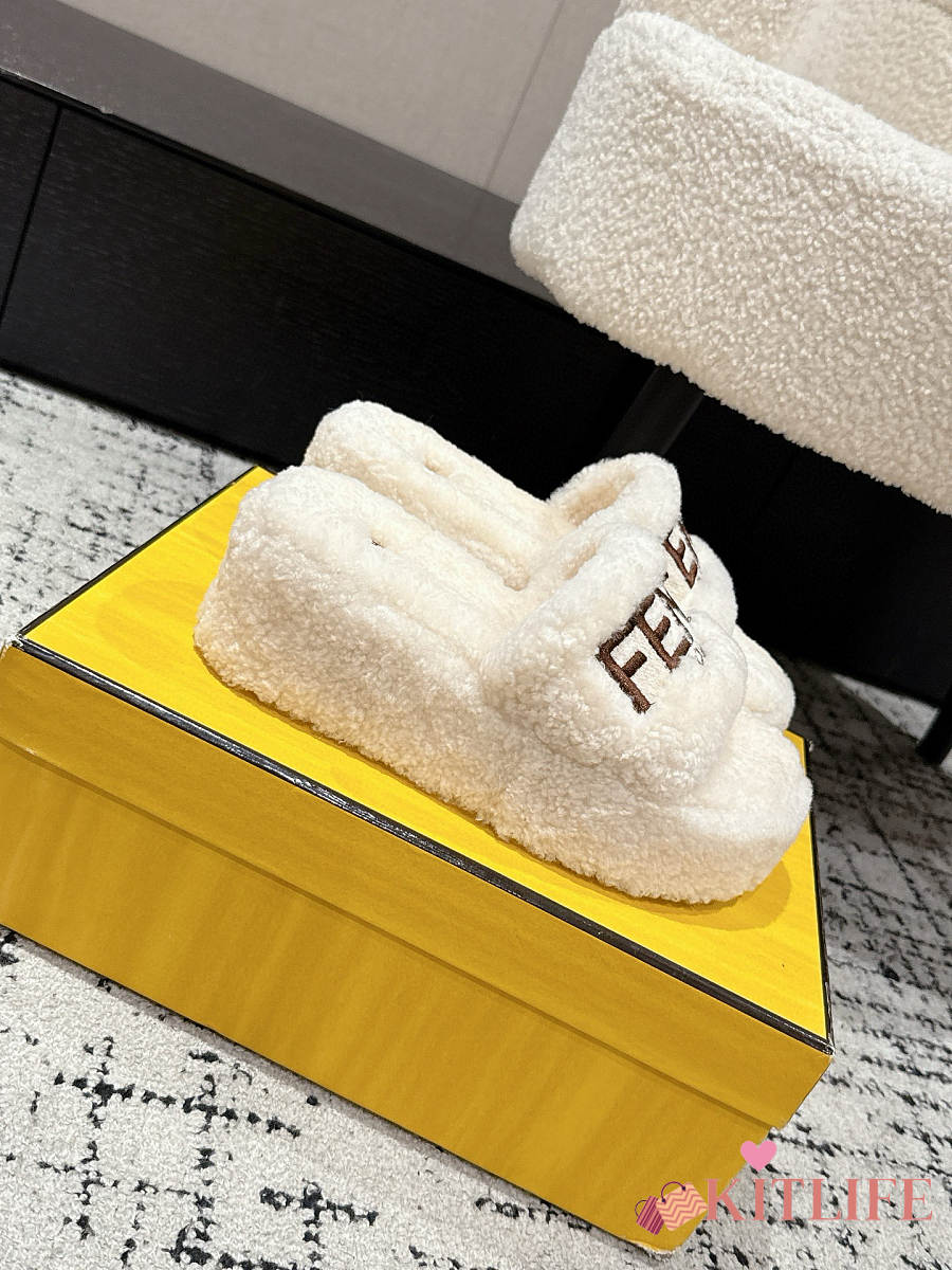 Kitlife Fendi 25 Thick-soled Furry Slides White