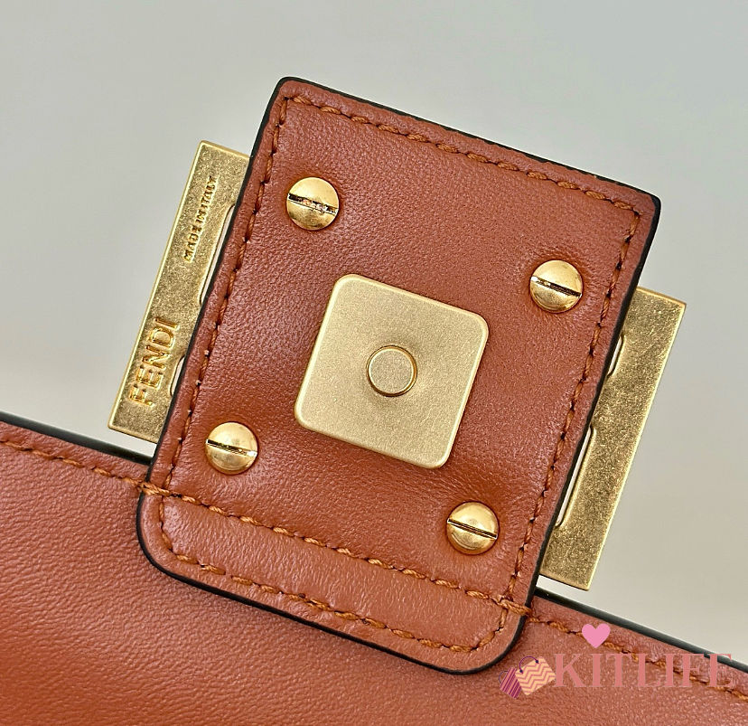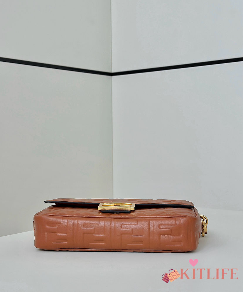 Kitlife Fendi Baguette Brown Lambskin Leather Bag 27x5x15cm