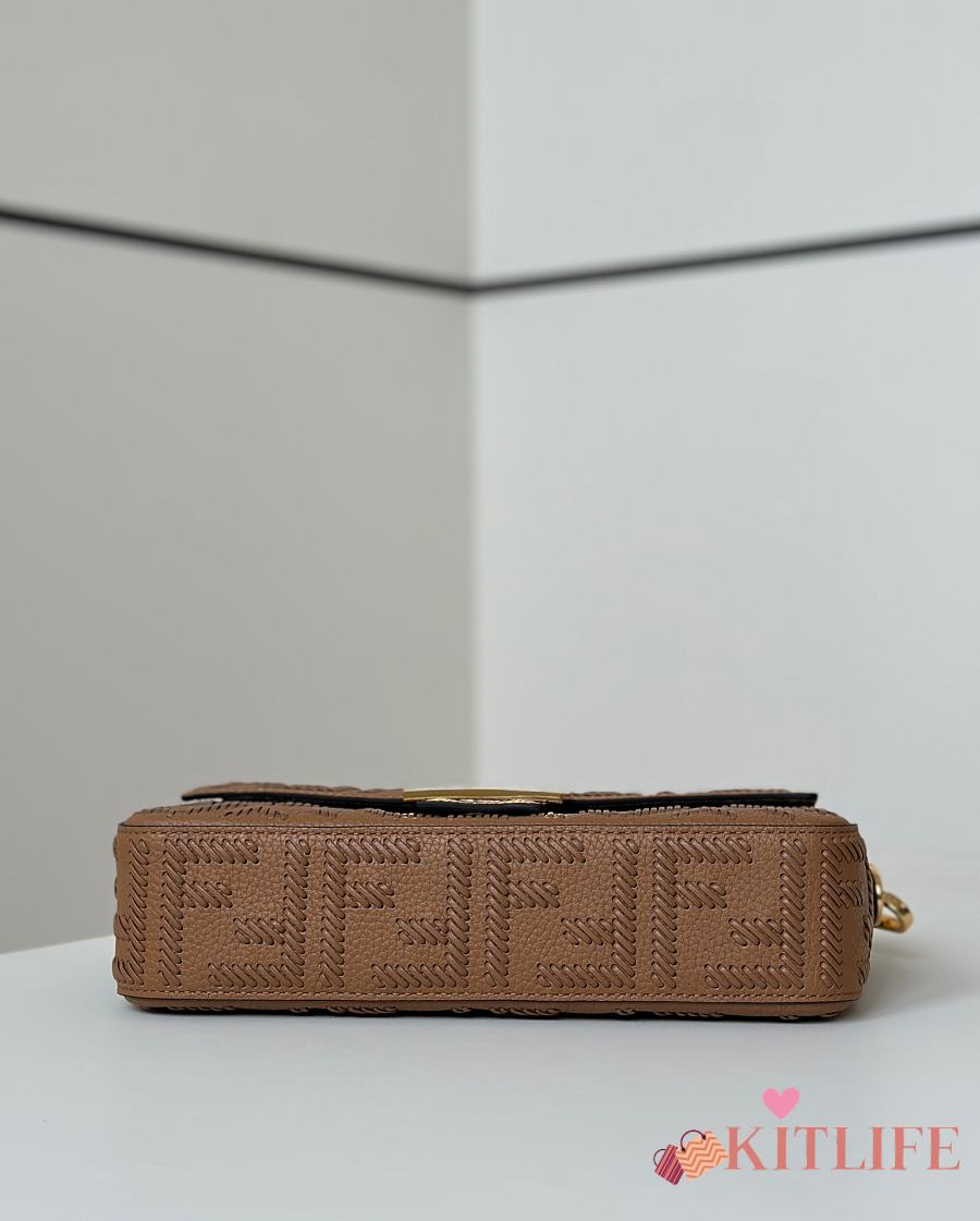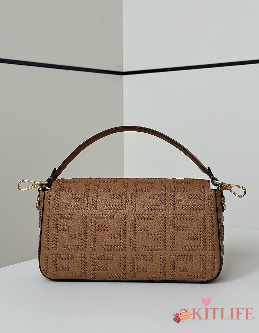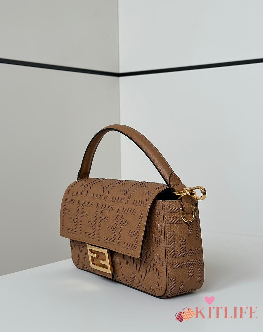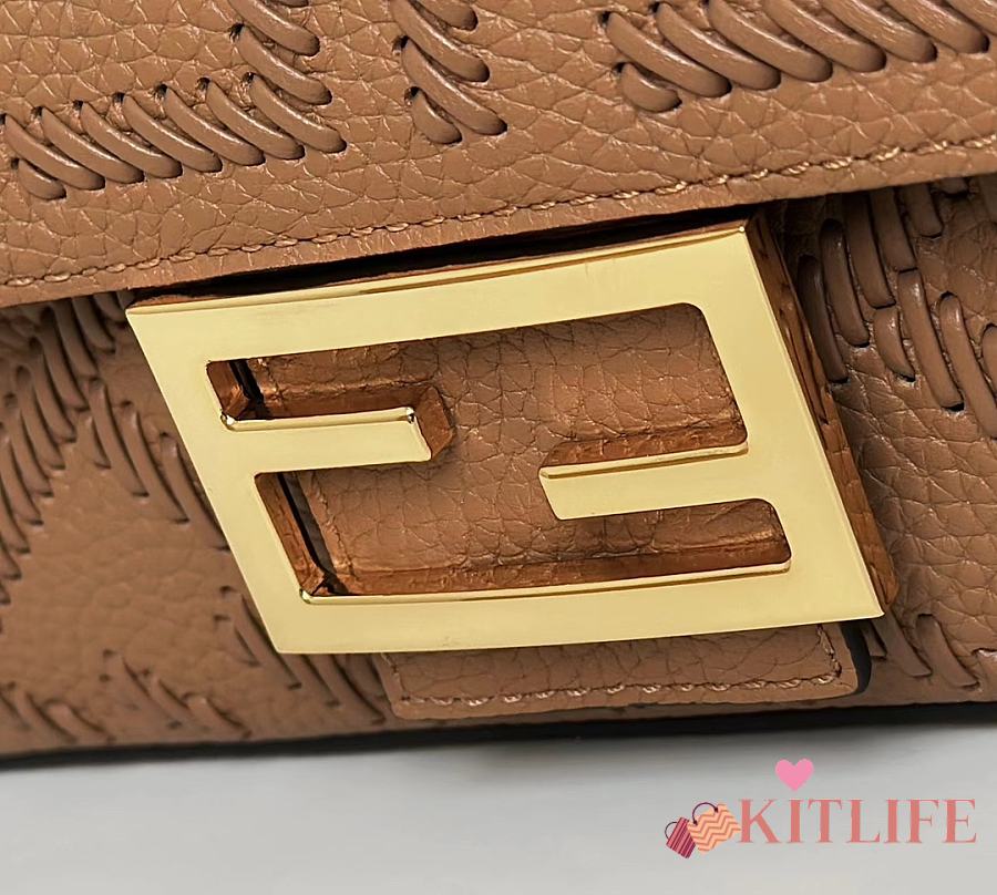 Kitlife Fendi Baguette Cappuccino-coloured Leather Bag With FF Interlacing 27x6x15cm