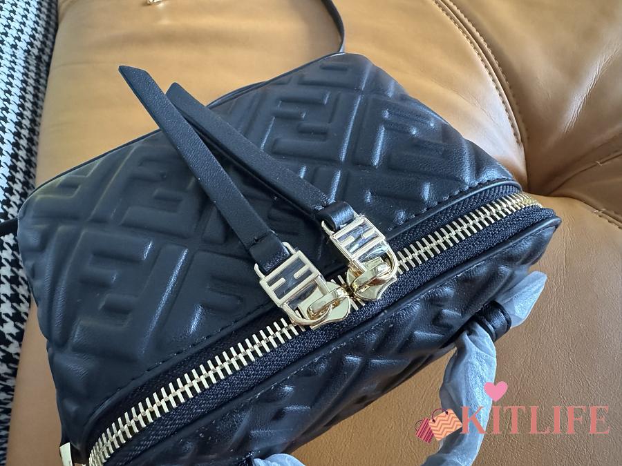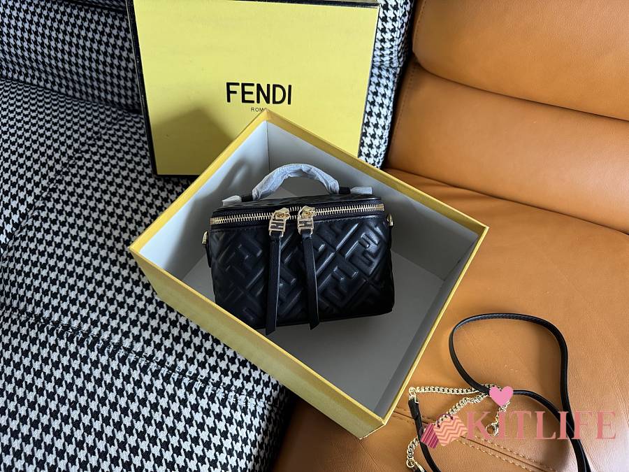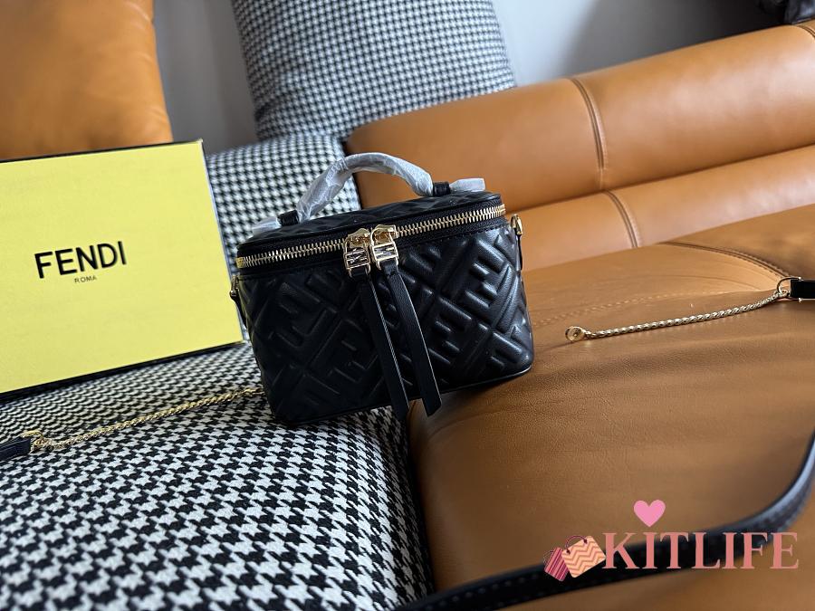 Kitlife Fendi Black Nappa Leather Vanity Bag 16x8x11cm