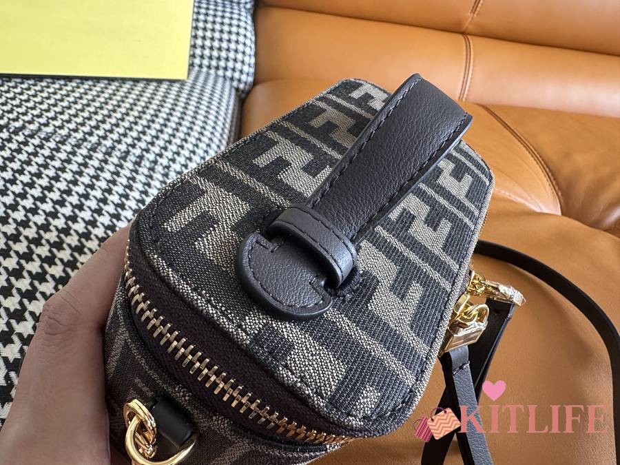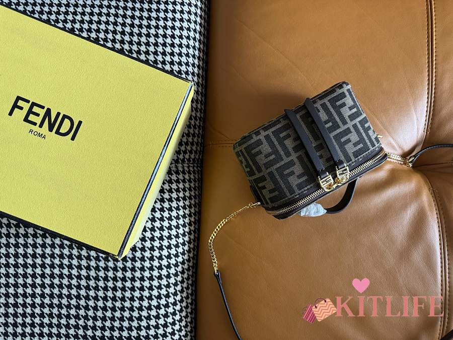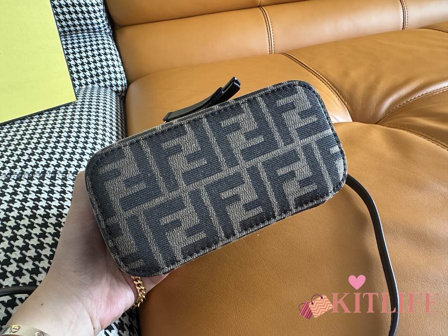 Kitlife Fendi Brown FF Jacquard Vanity Bag 16x8x11cm