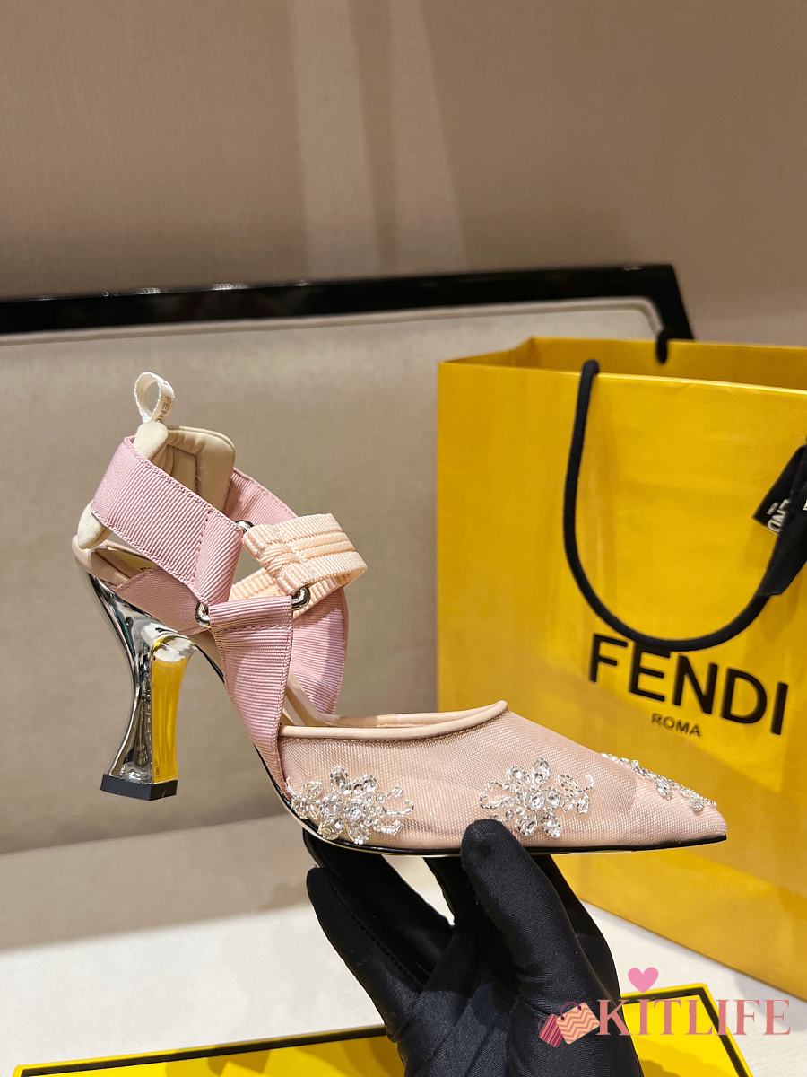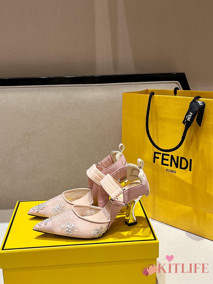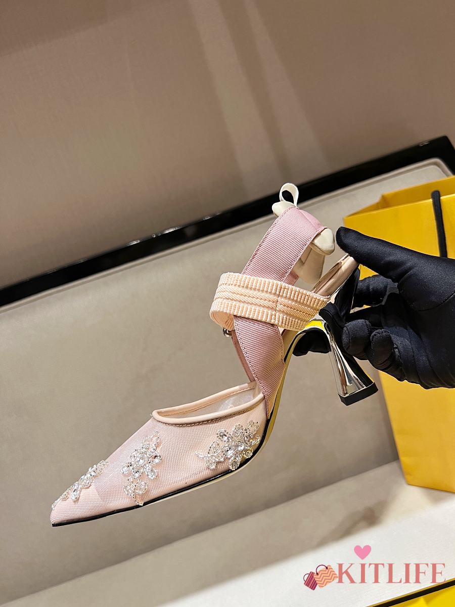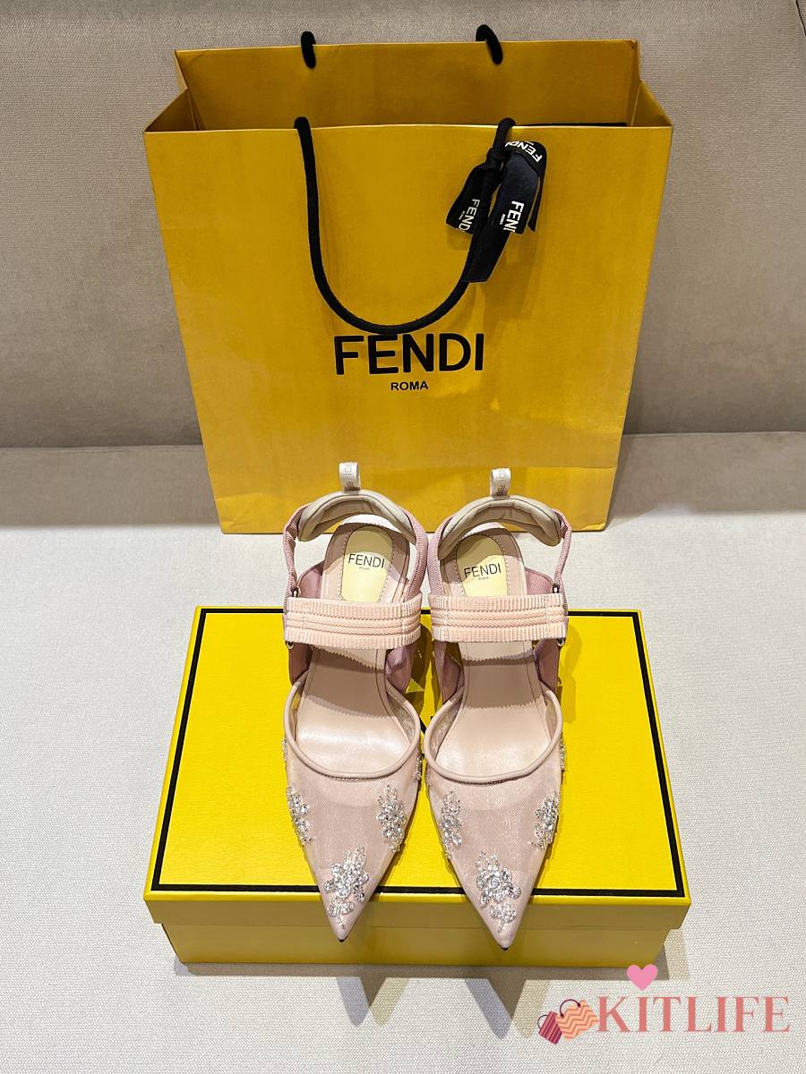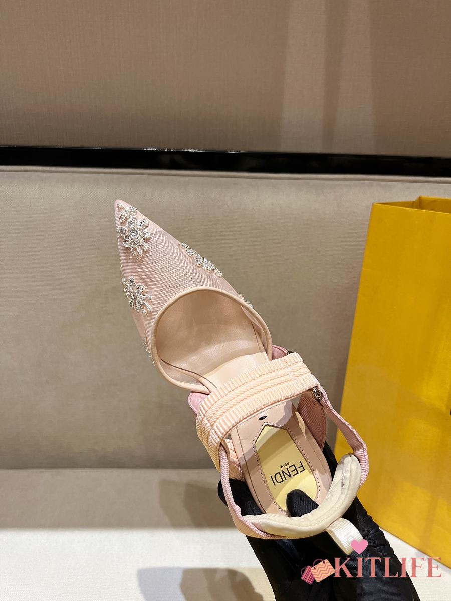Kitlife Fendi Colibri Embellished Slingback Pumps Beige 85mm