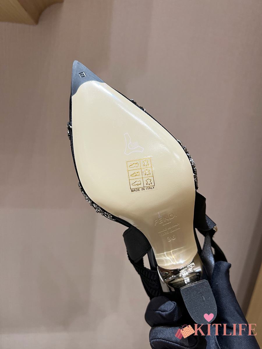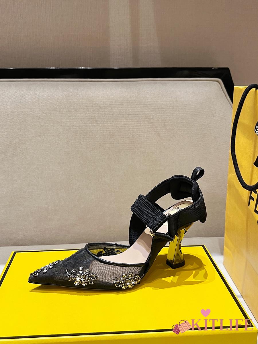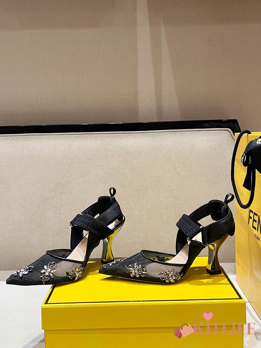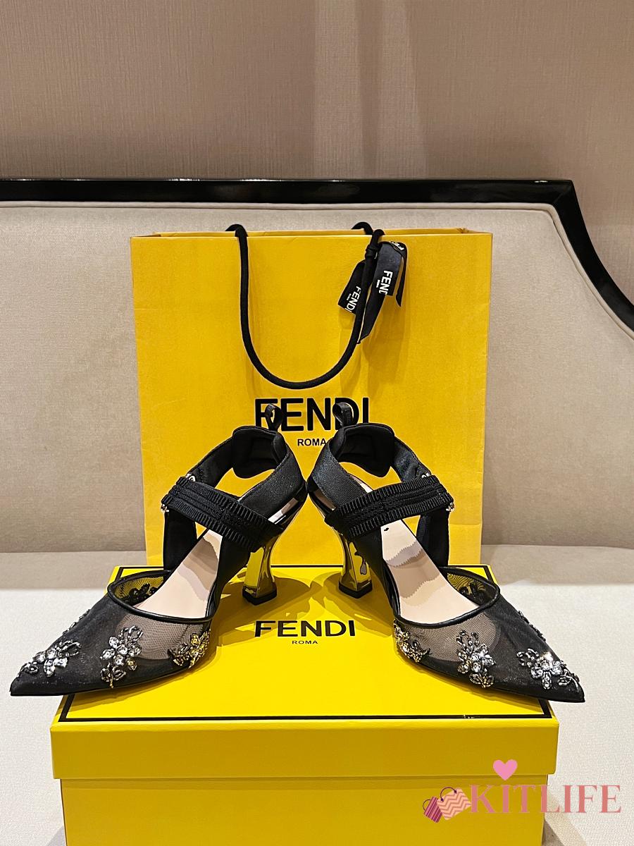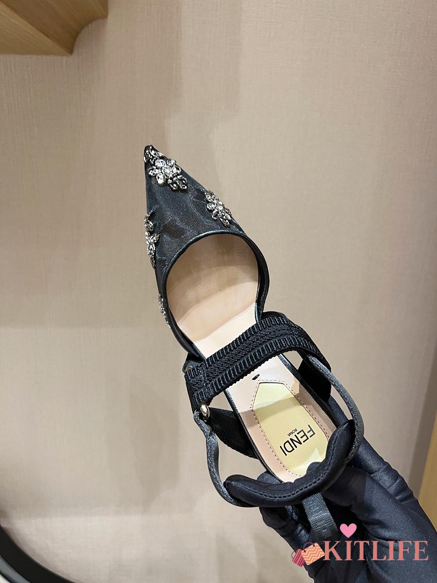 Kitlife Fendi Colibri Embellished Slingback Pumps Black 85mm