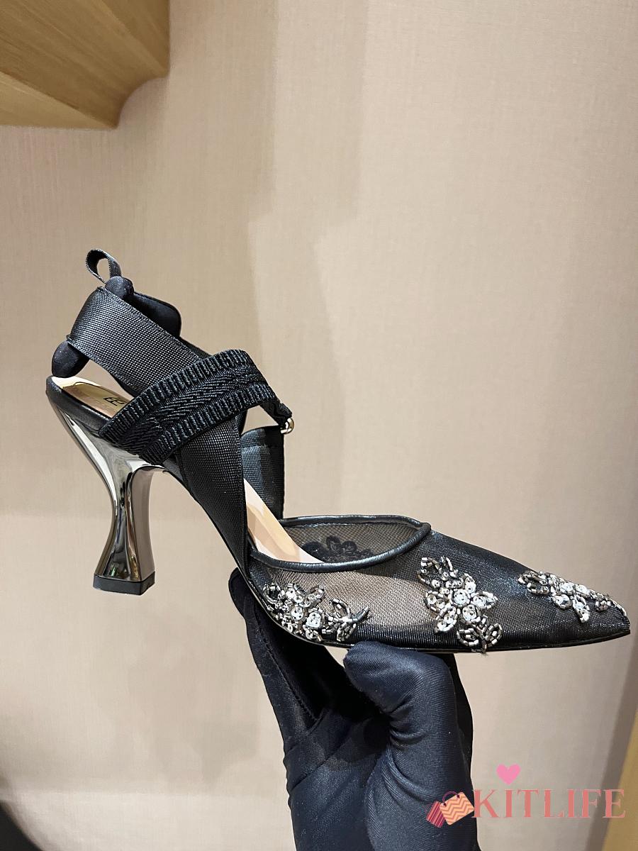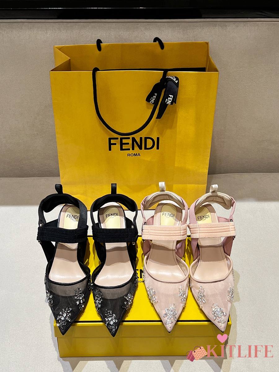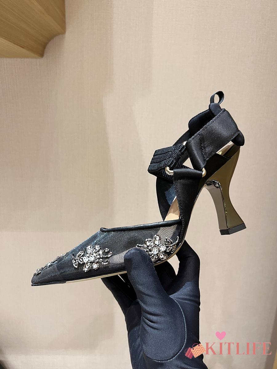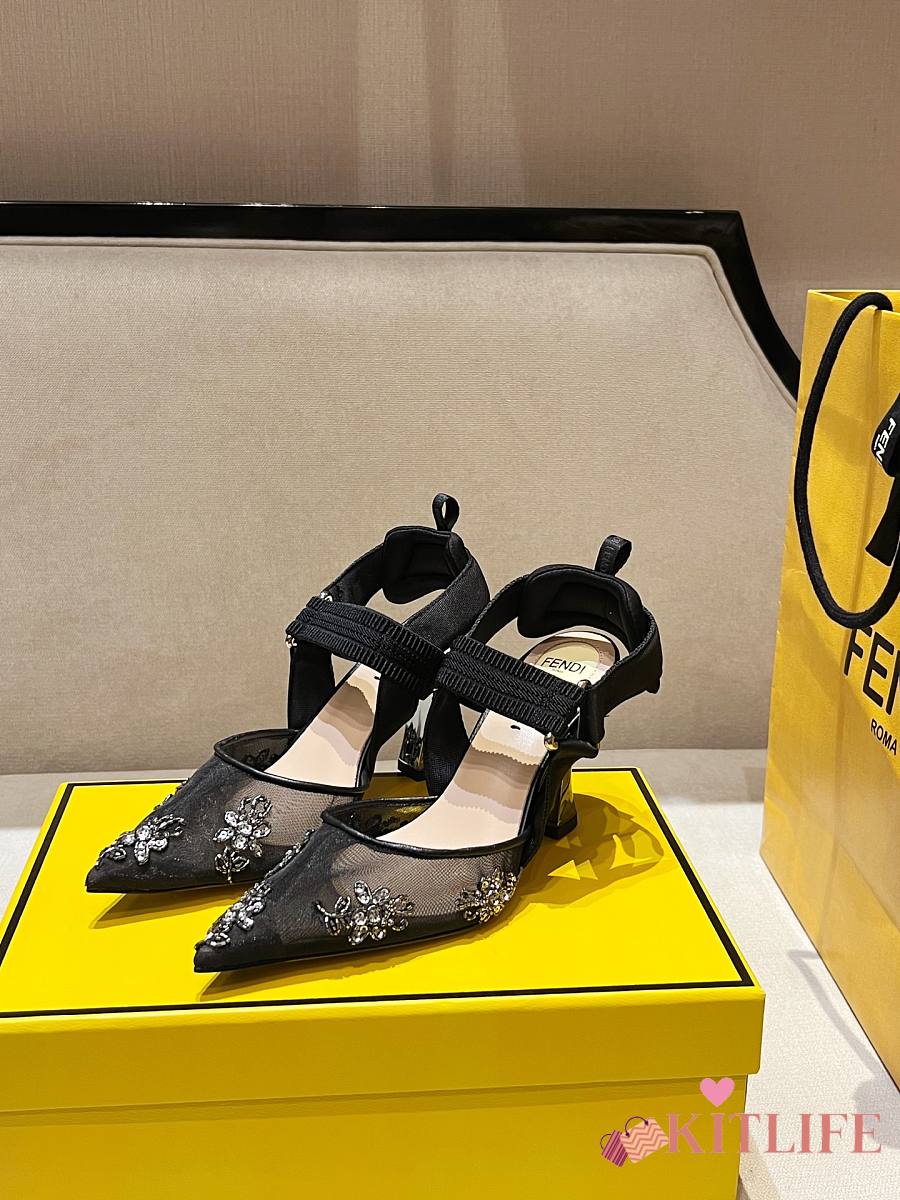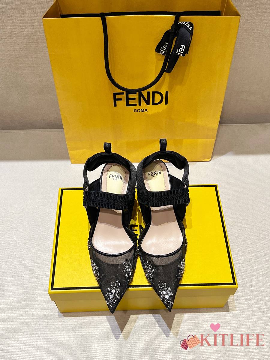 Kitlife Fendi Colibri Embellished Slingback Pumps Black 85mm