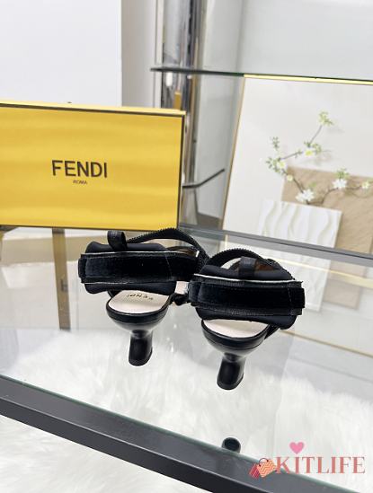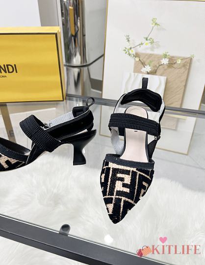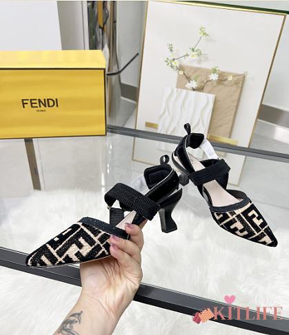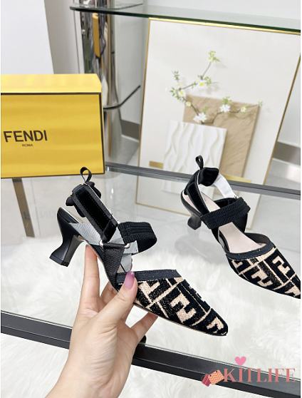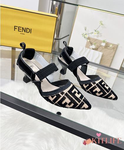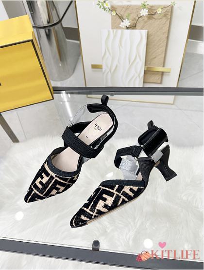 Kitlife Fendi Colibri Lite Black Velvet FF Logo Pointed Slingbacks