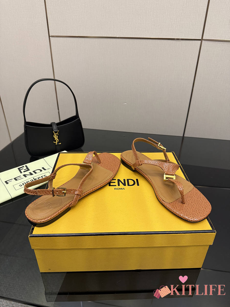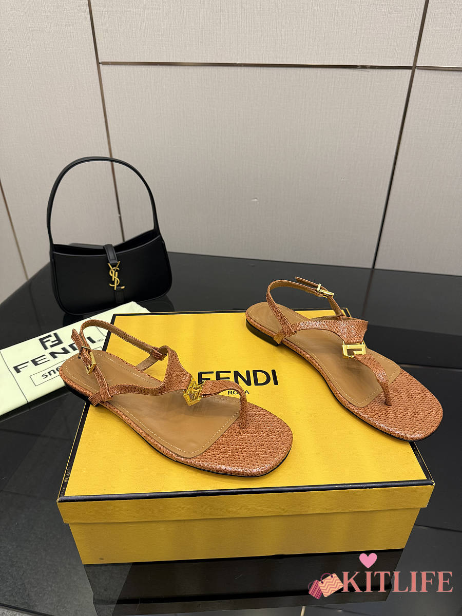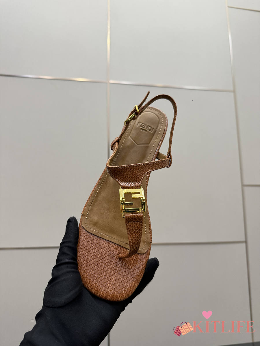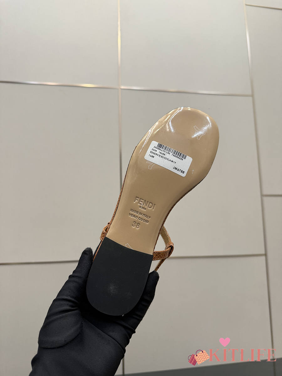 Kitlife Fendi Delfina FFold Dark Flip-flops Beige Cowhide Leather