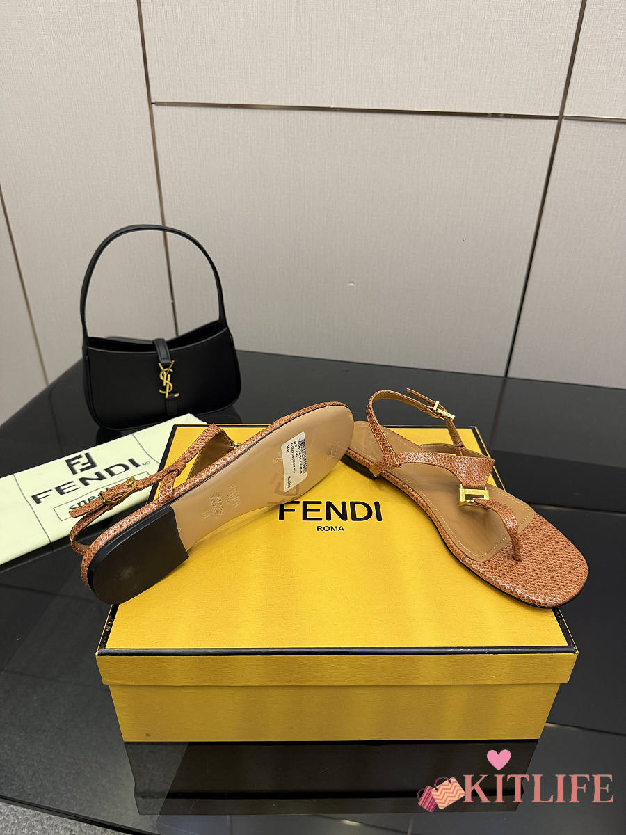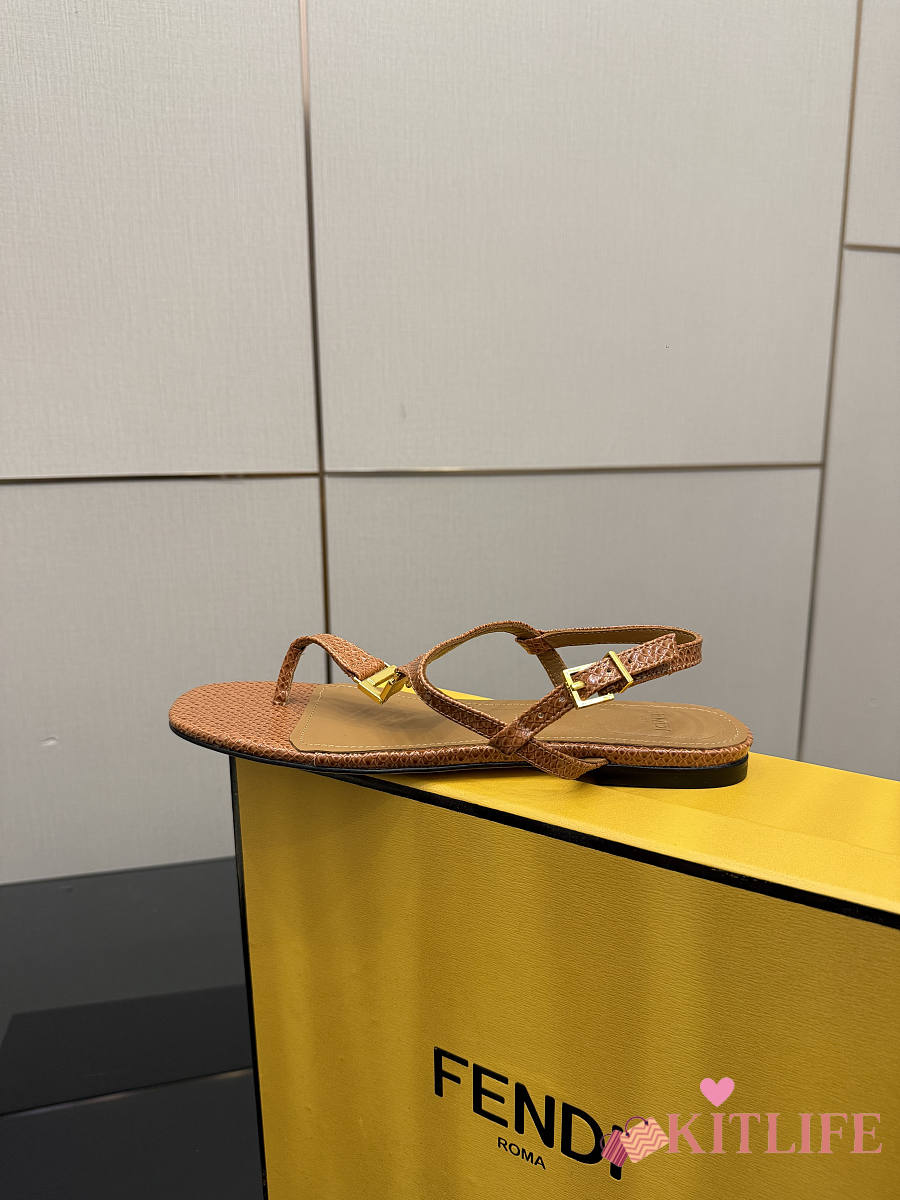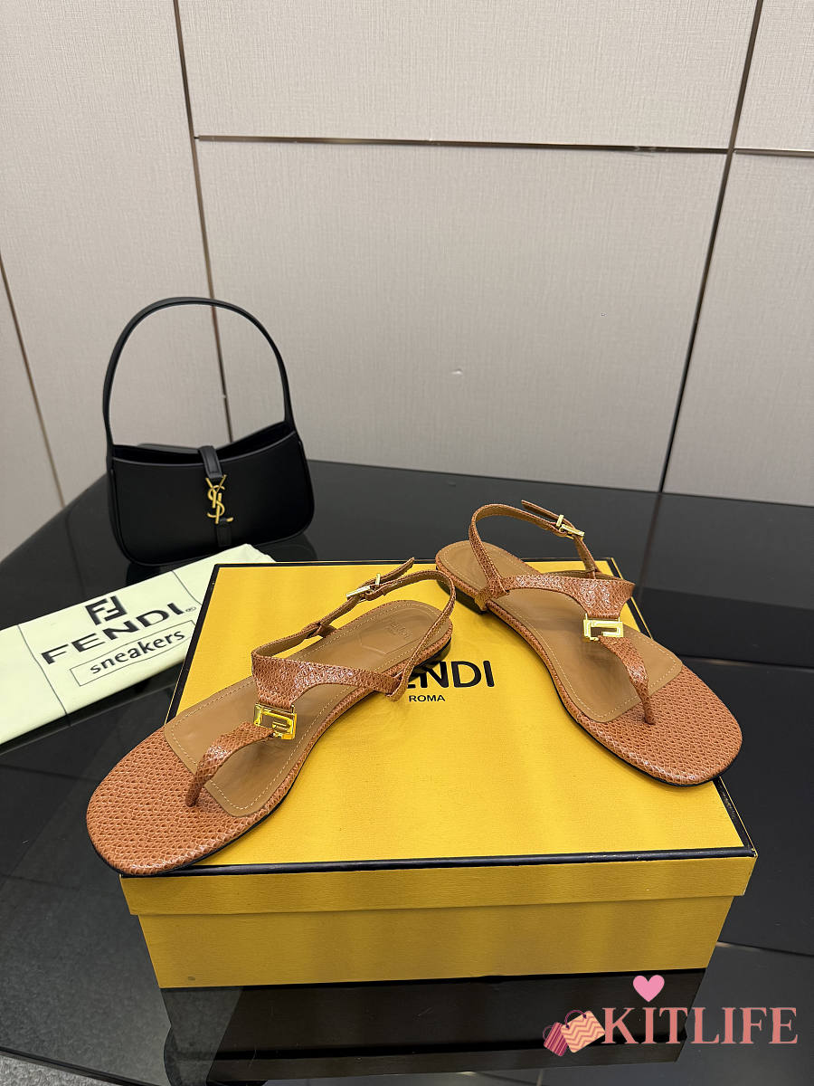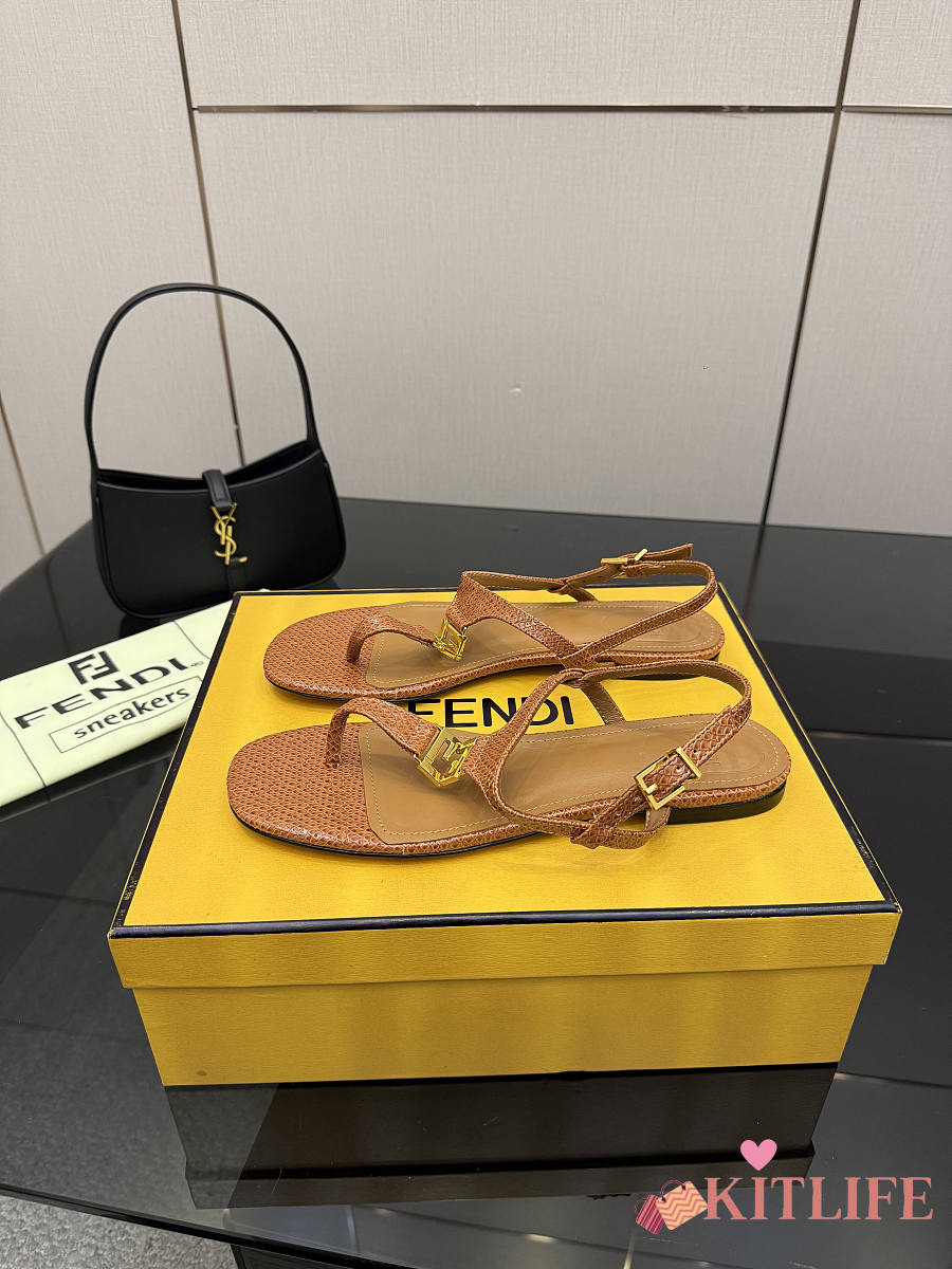 Kitlife Fendi Delfina FFold Dark Flip-flops Beige Cowhide Leather