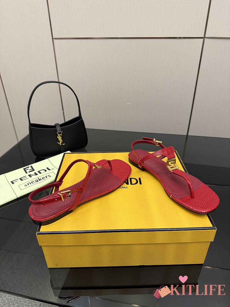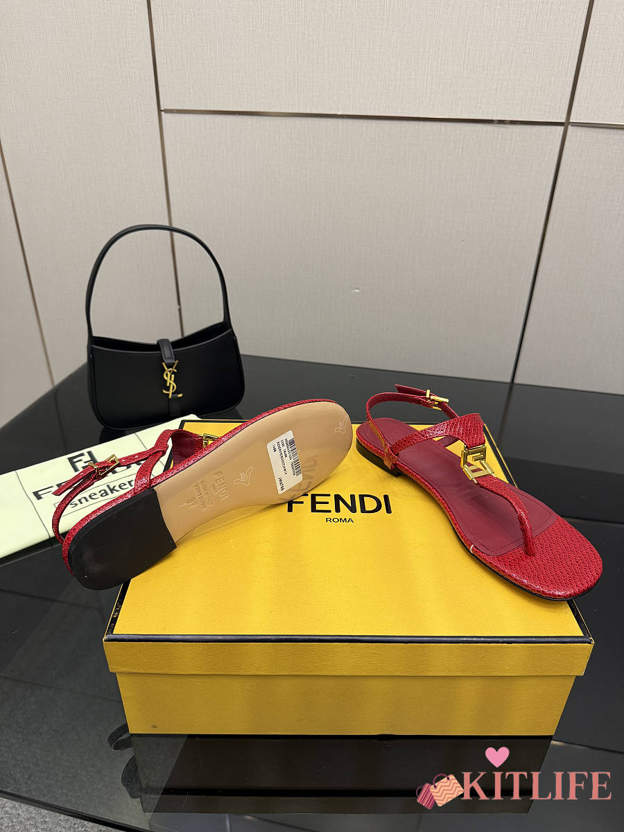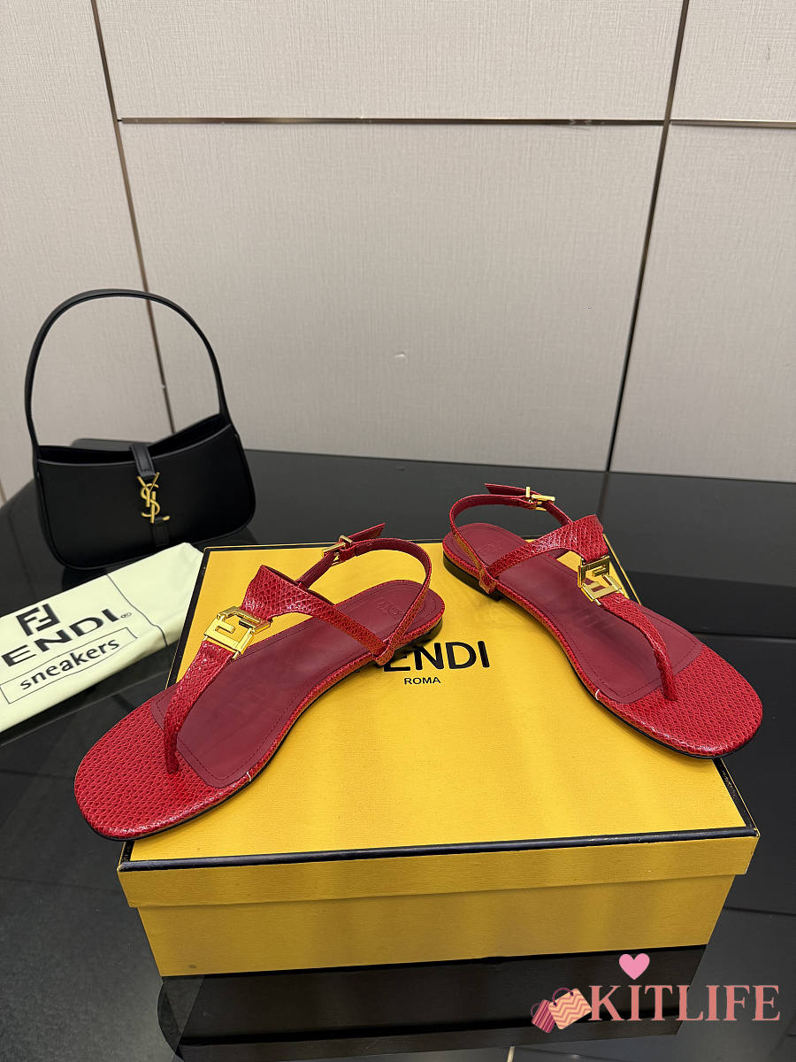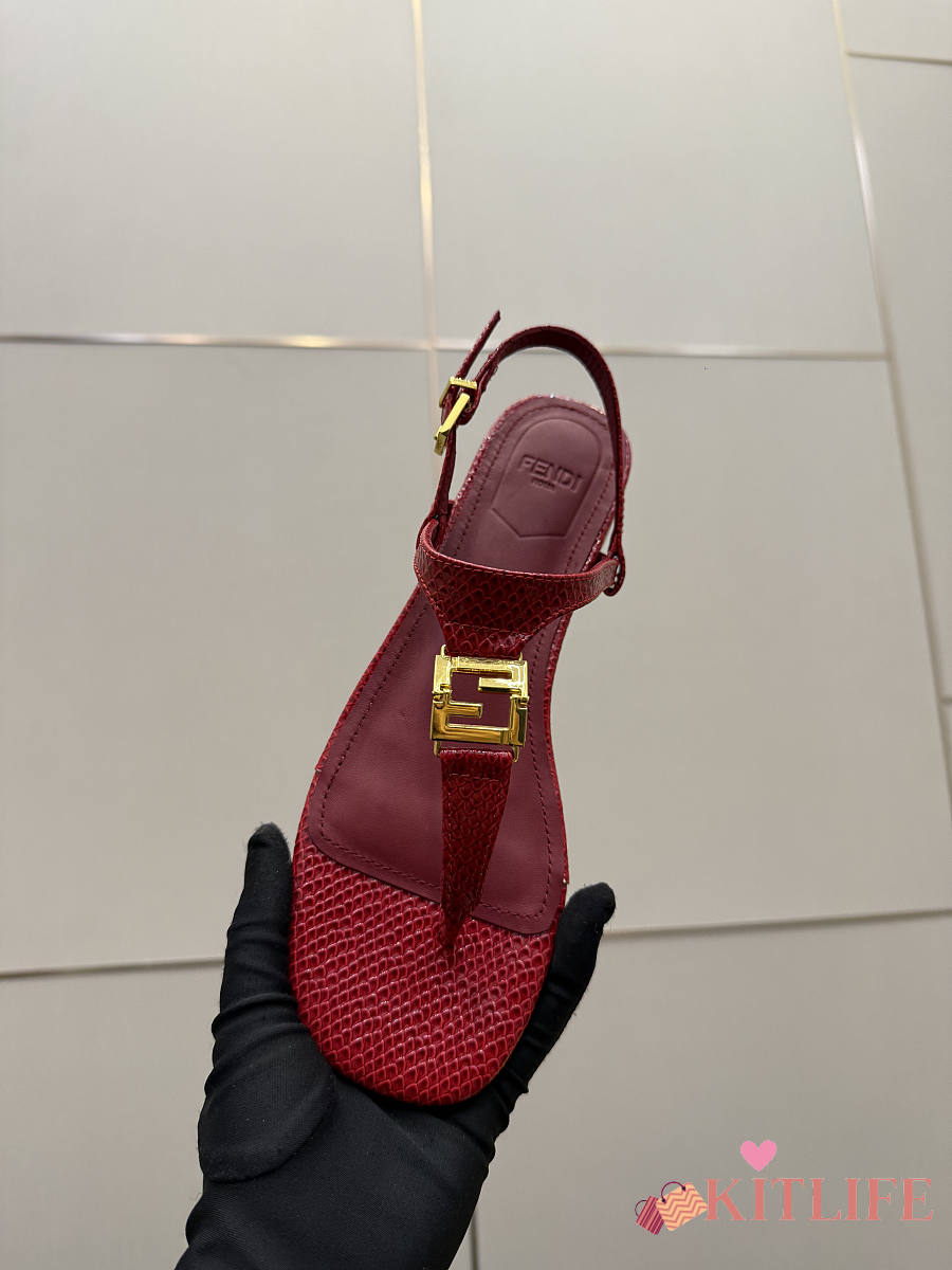 Kitlife Fendi Delfina FFold Dark Flip-flops Red Cowhide Leather