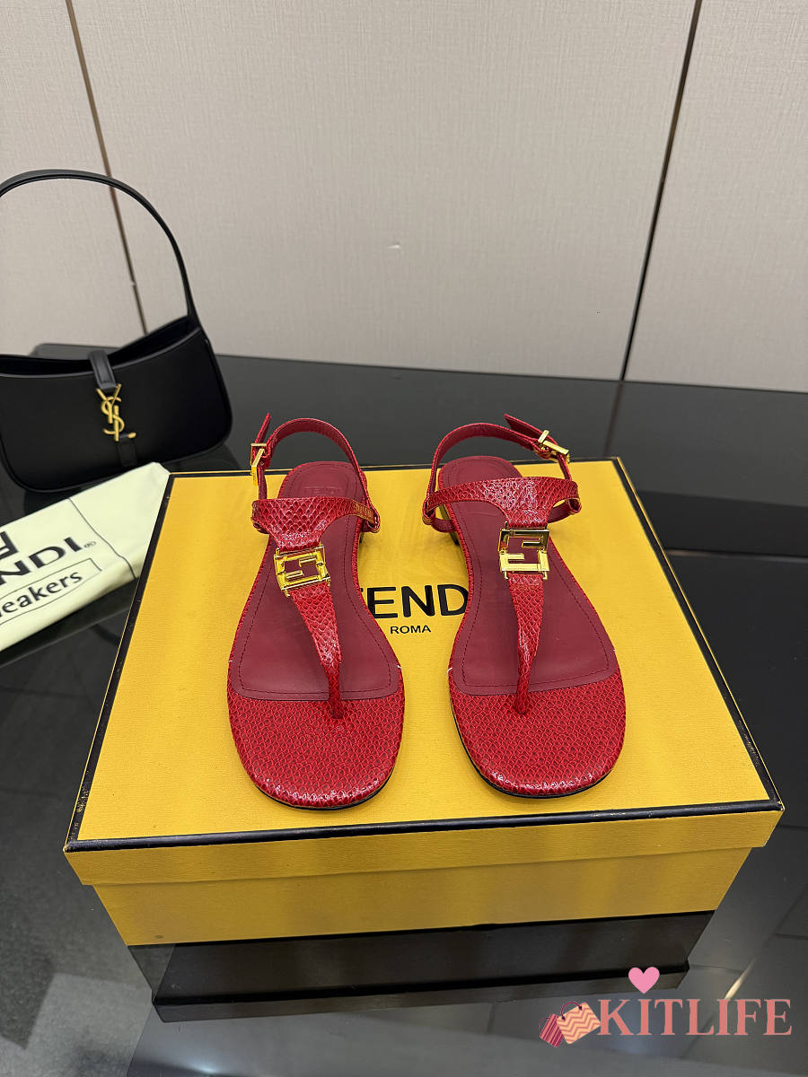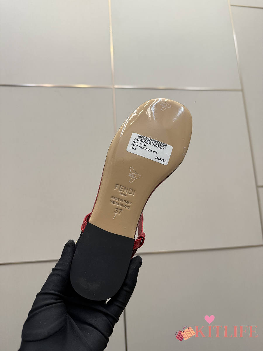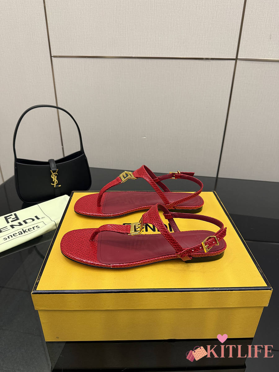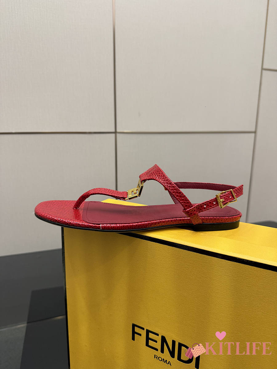 Kitlife Fendi Delfina FFold Dark Flip-flops Red Cowhide Leather