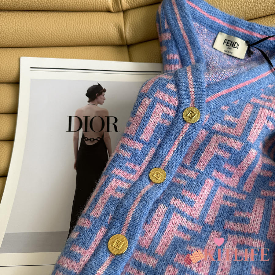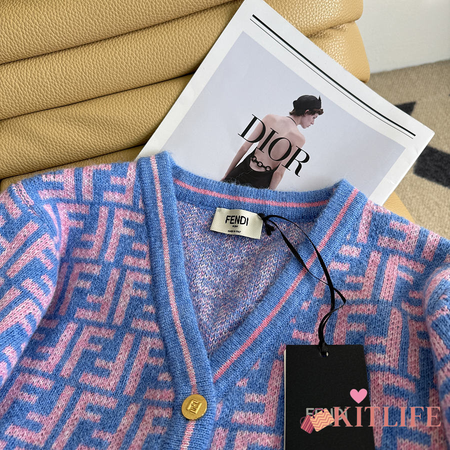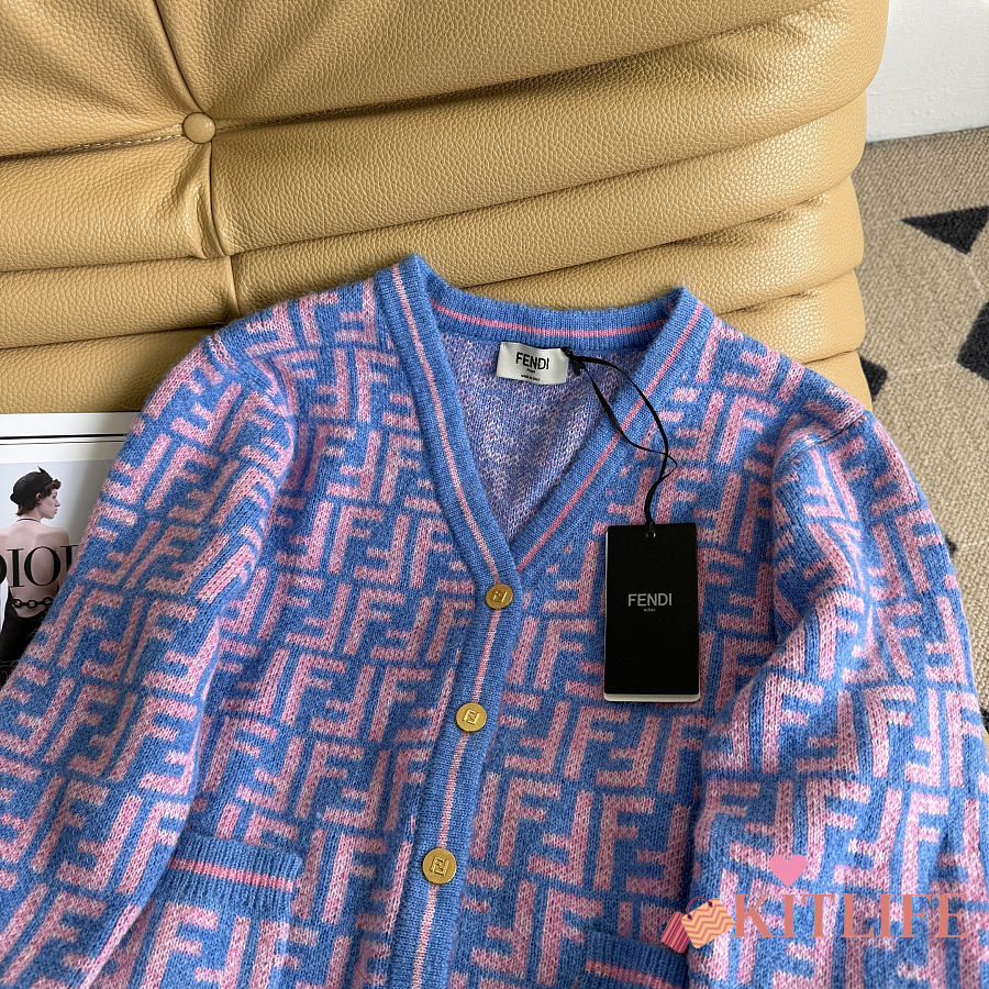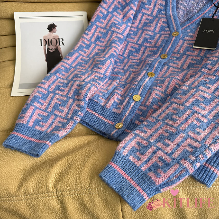 Kitlife Fendi Double-F Wool V-neck Knit Cardigan Blue & Purple