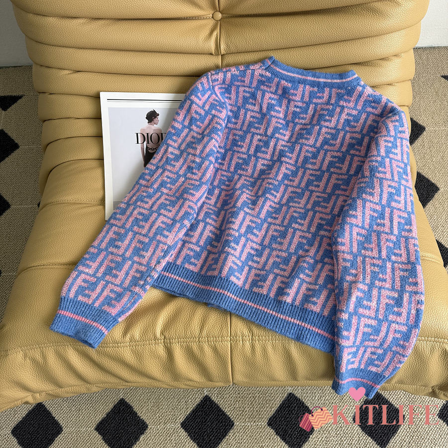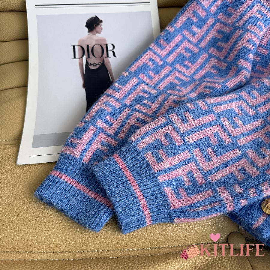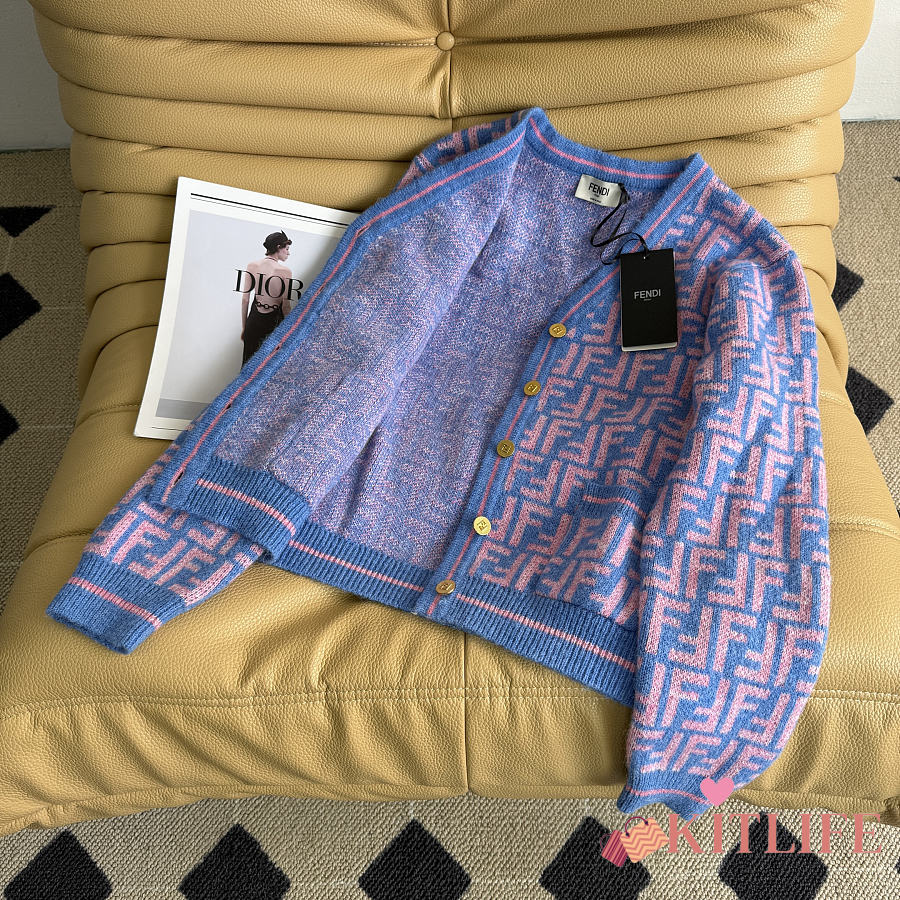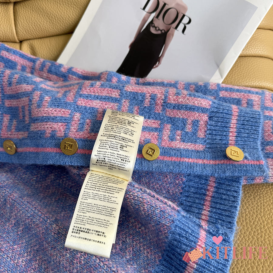 Kitlife Fendi Double-F Wool V-neck Knit Cardigan Blue & Purple