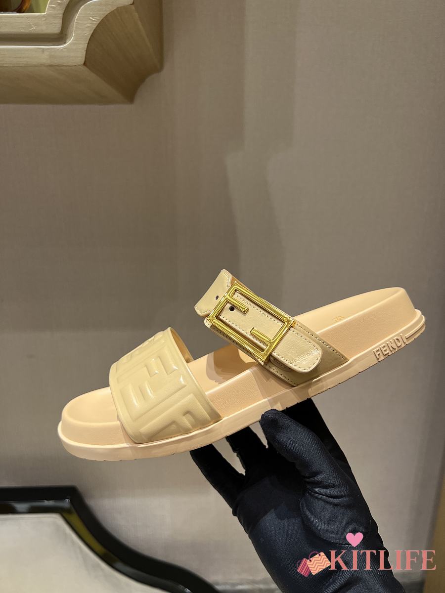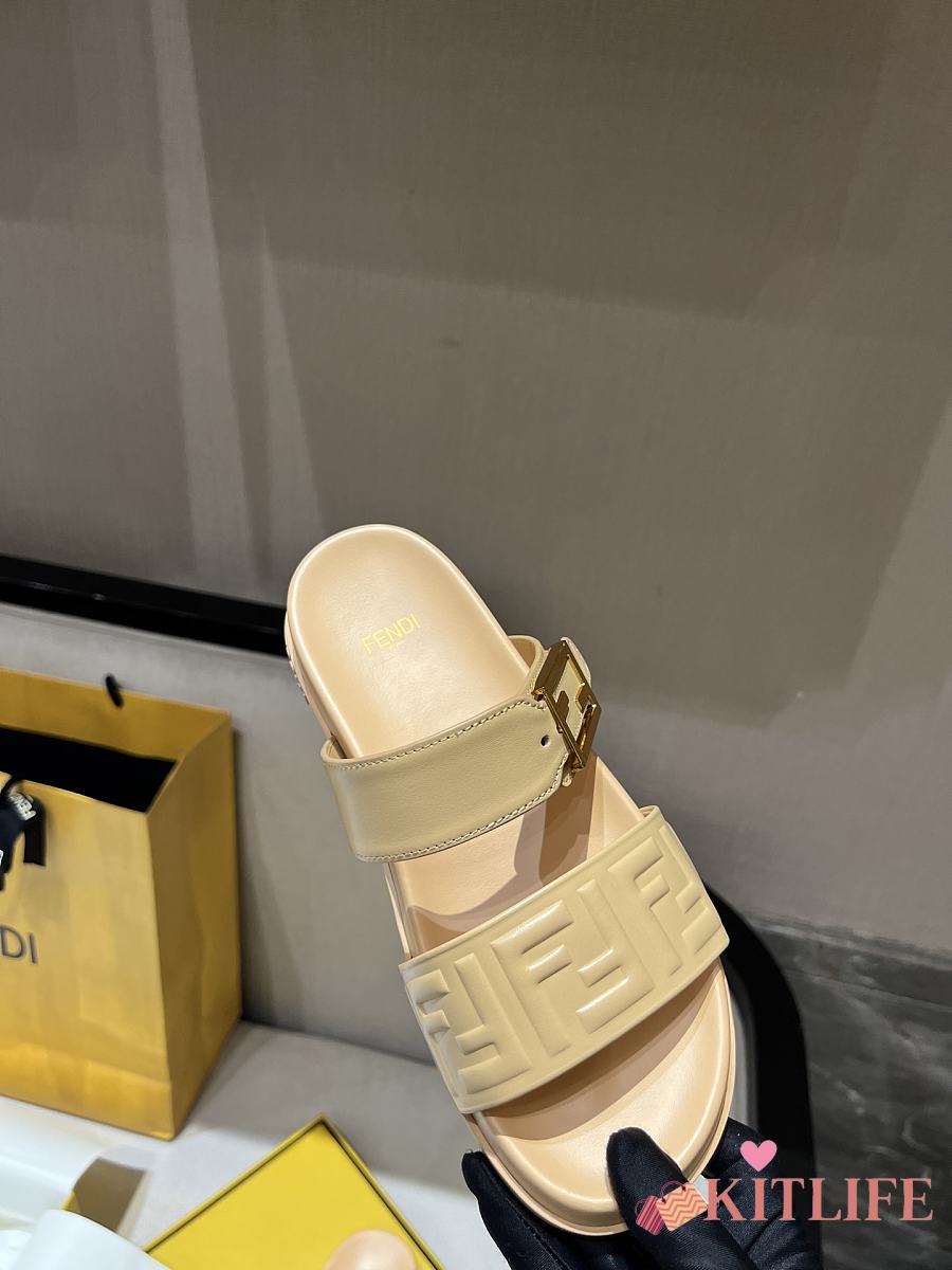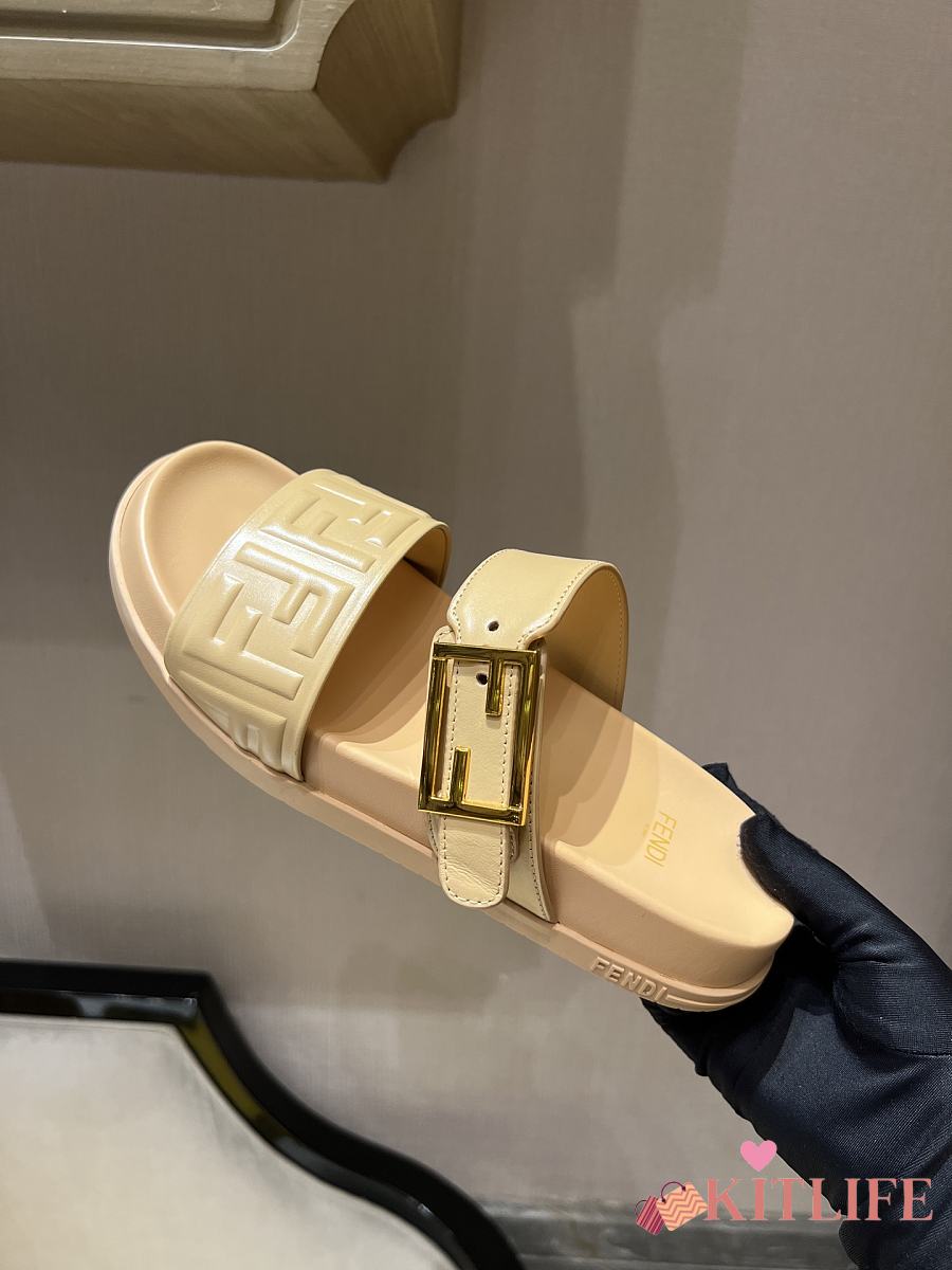Kitlife Fendi Feel Beige Nappa Leather Slides