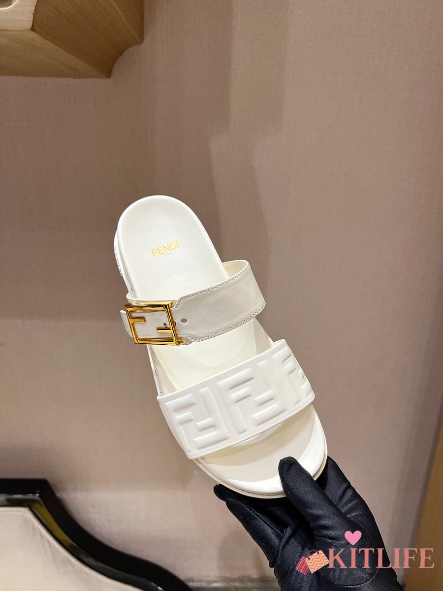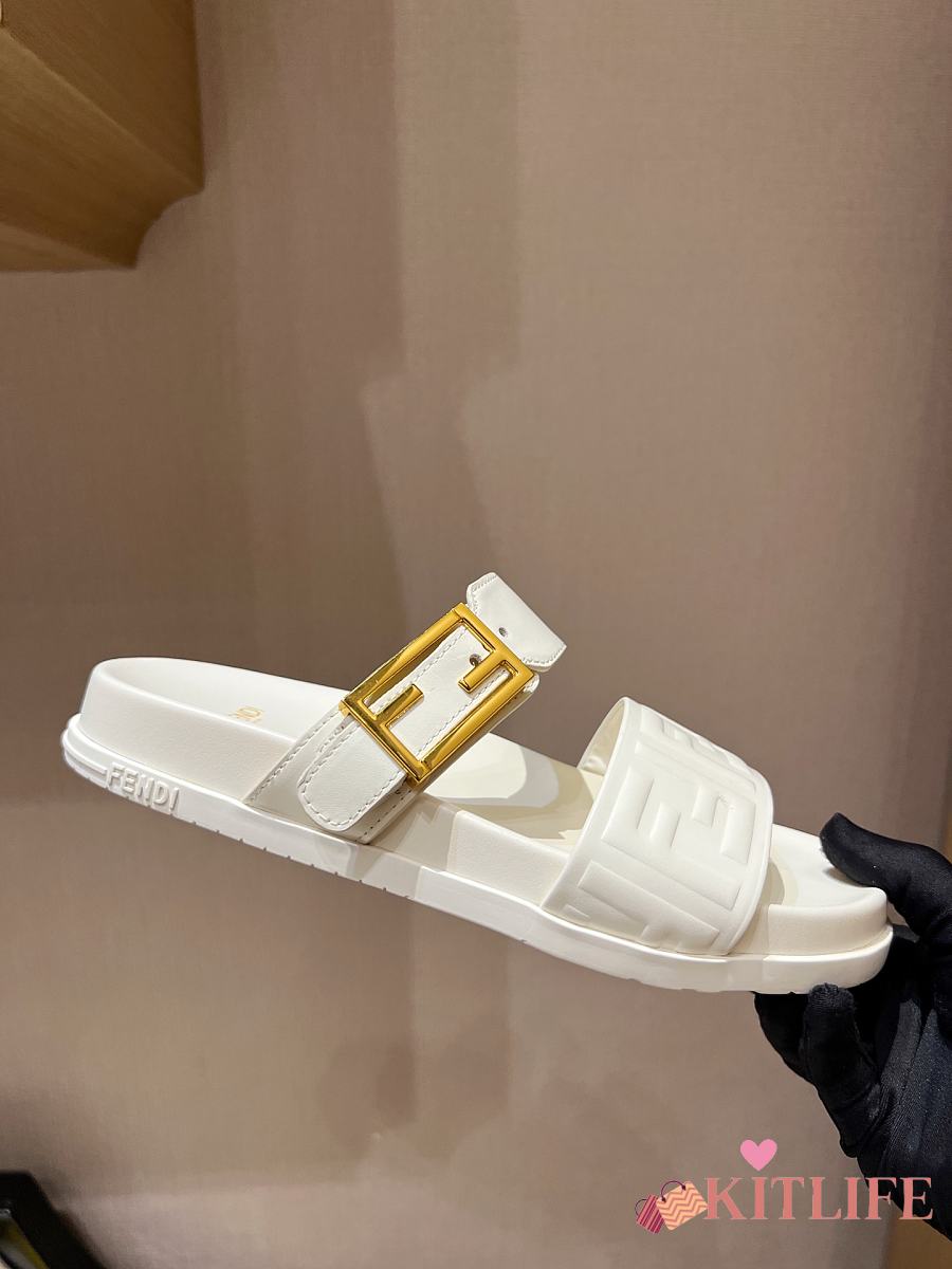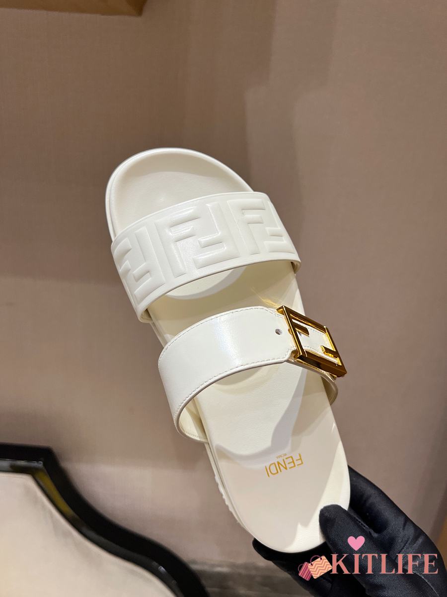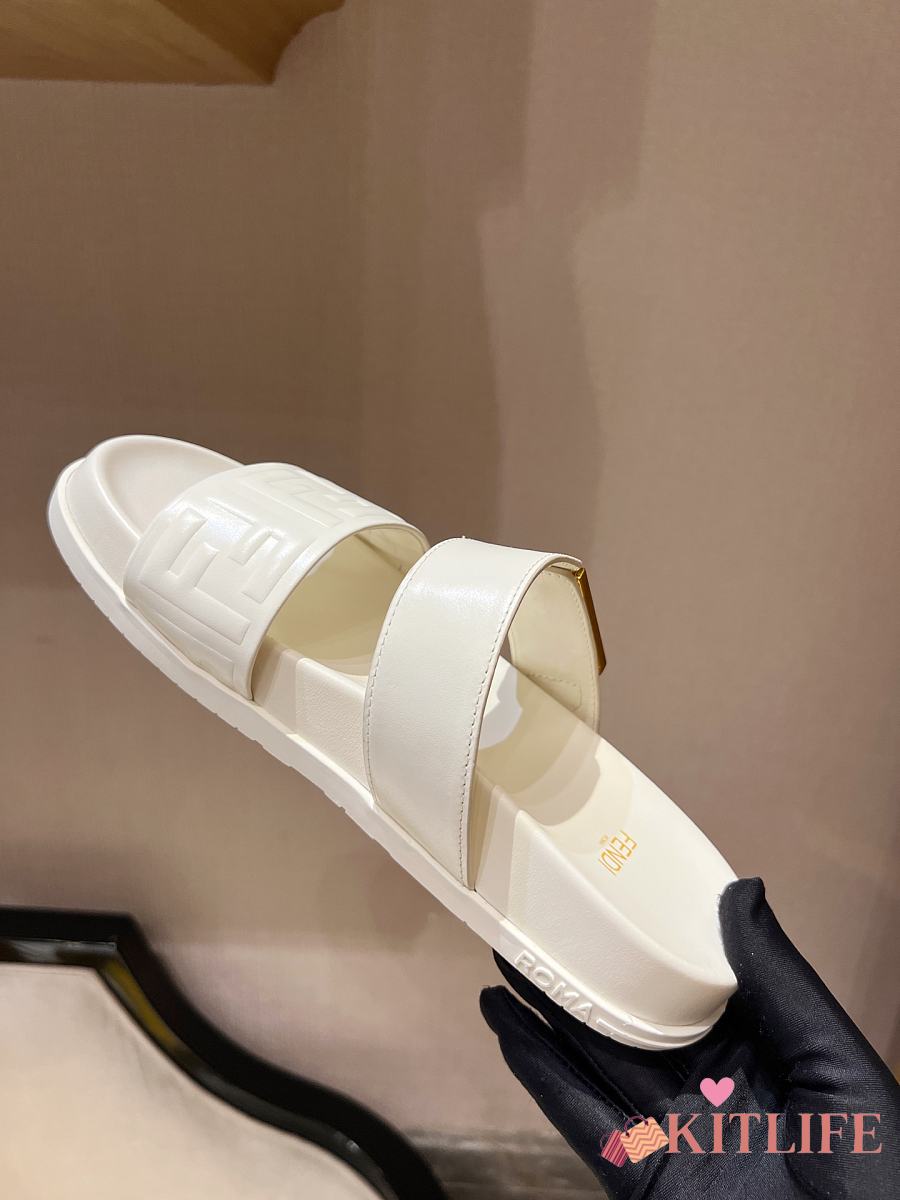 Kitlife Fendi Feel White Nappa Leather Slides