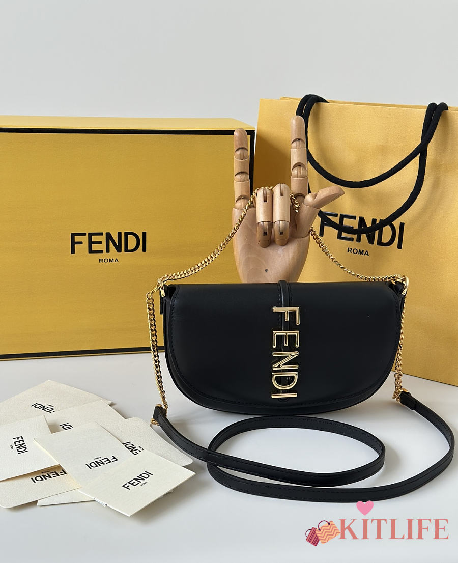 Kitlife Fendi Fendigraphy Wallet on Chain Black 20x4x13cm