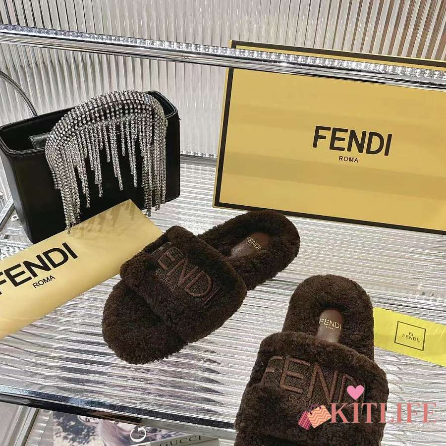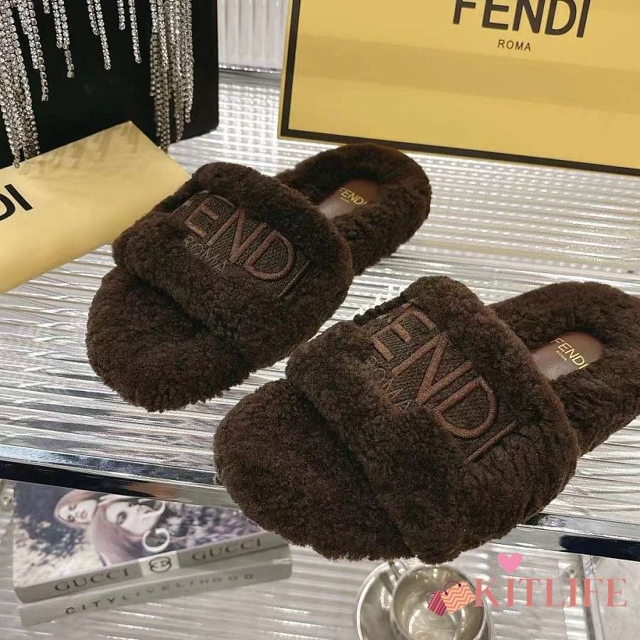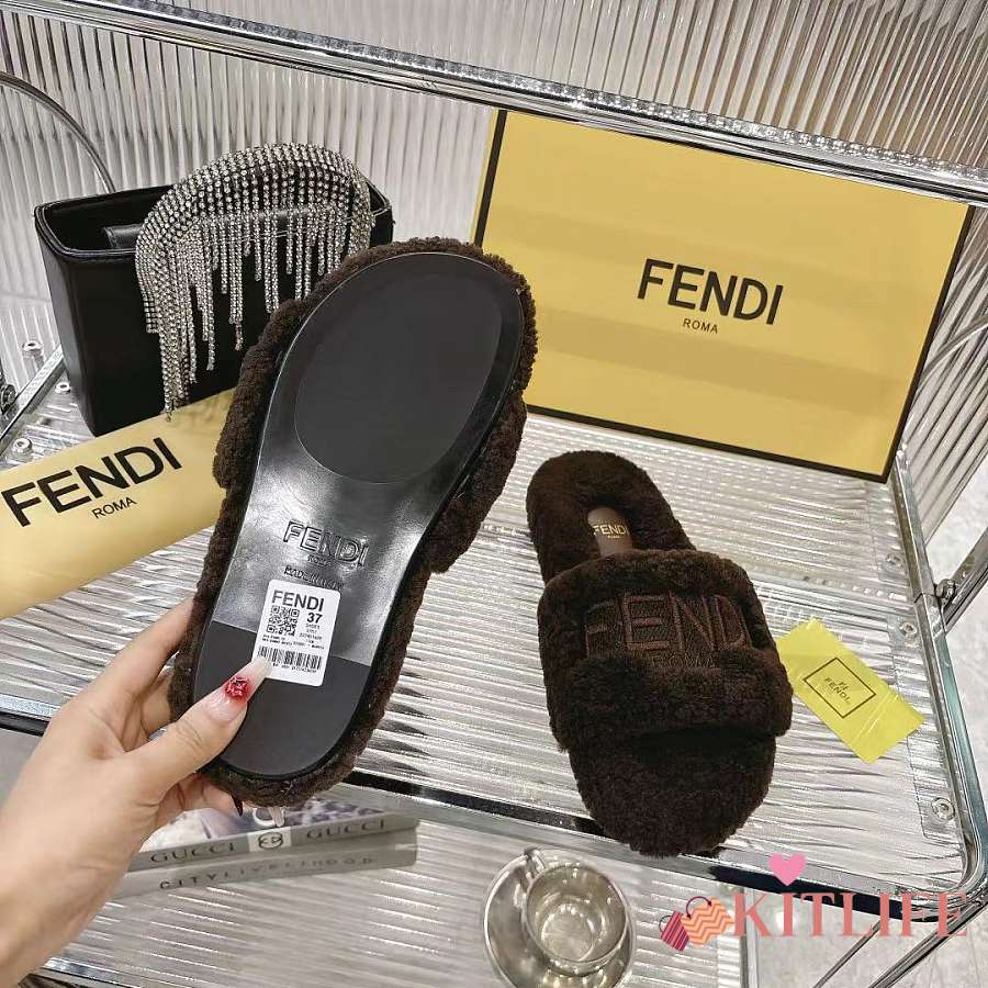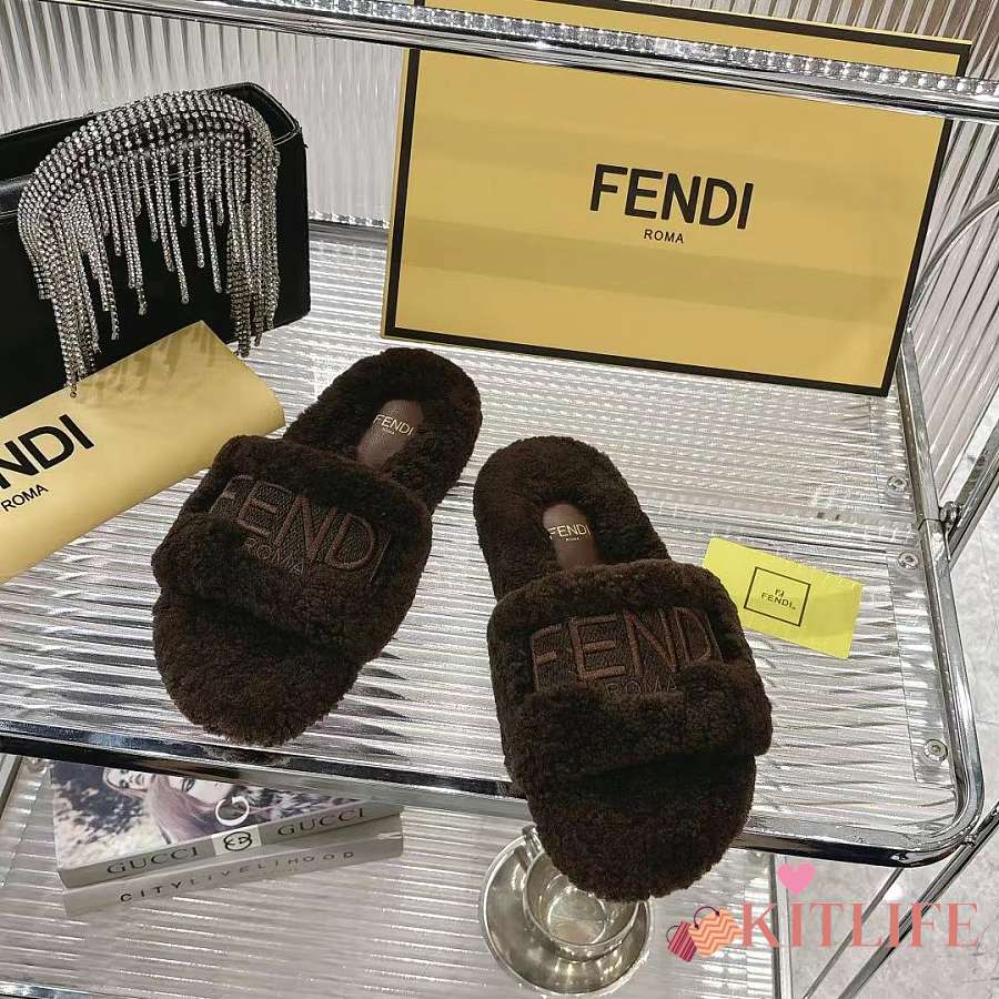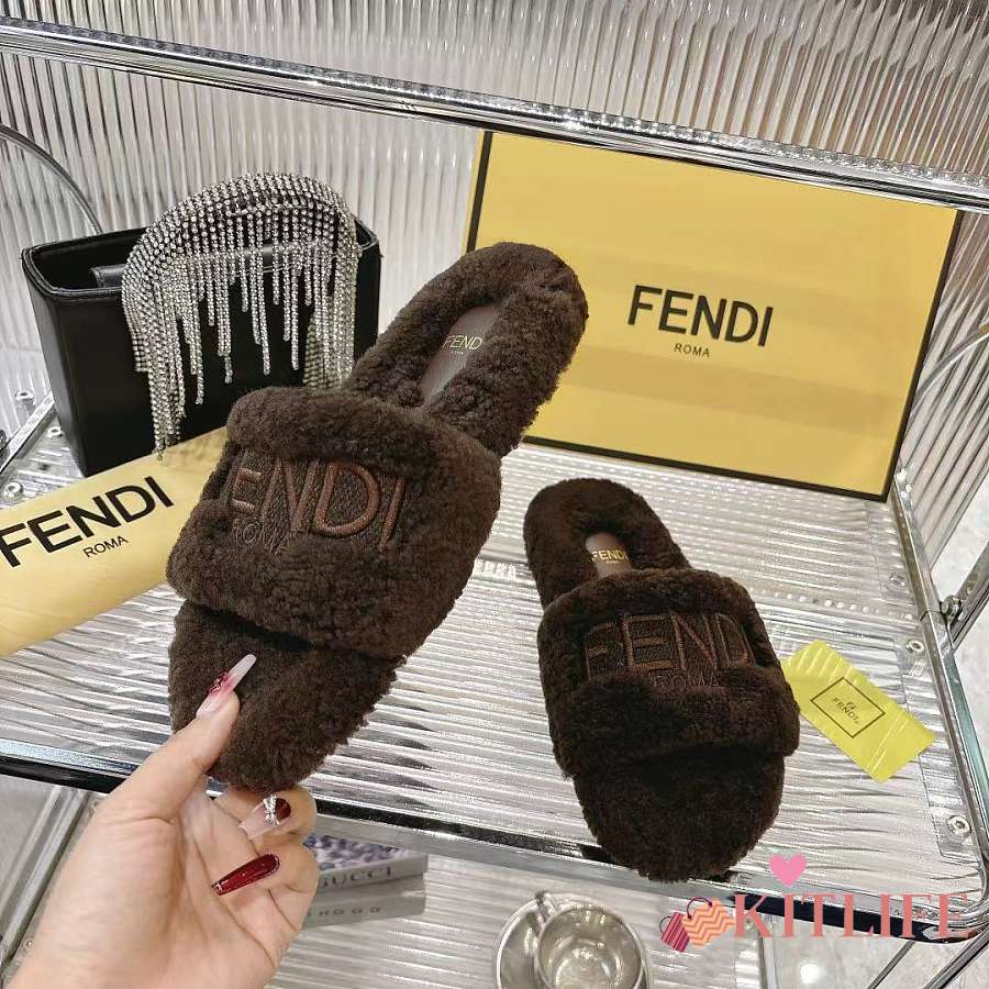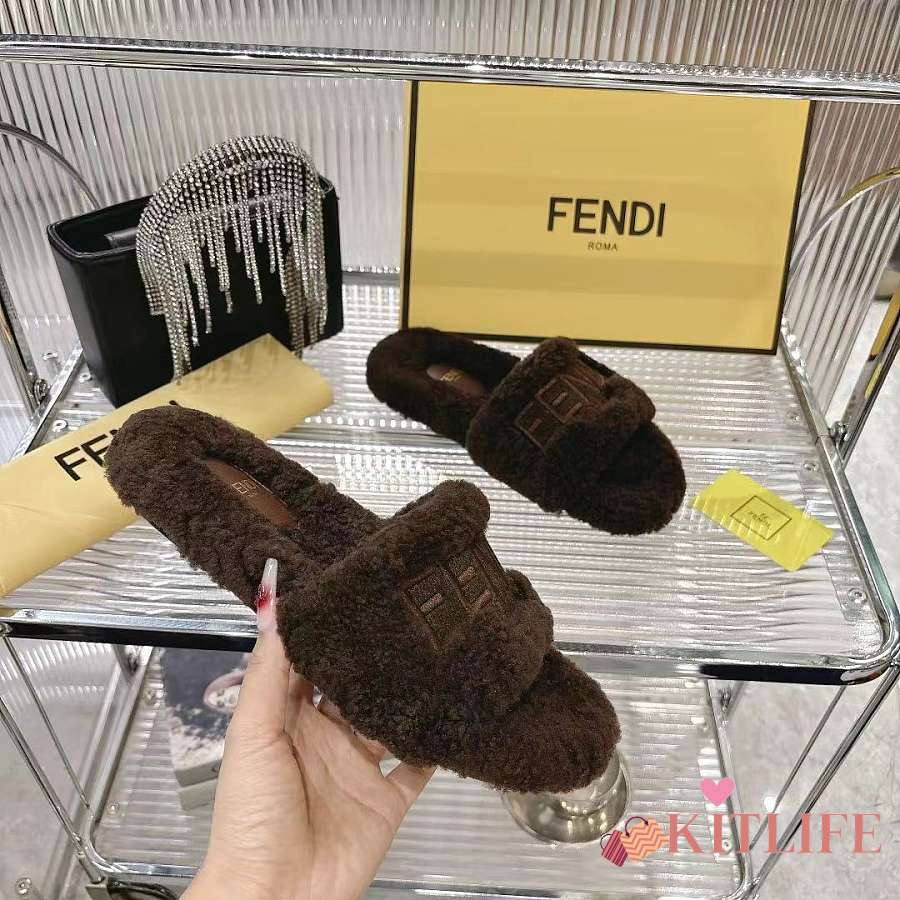 Kitlife Fendi Fur Slippers Dark Brown