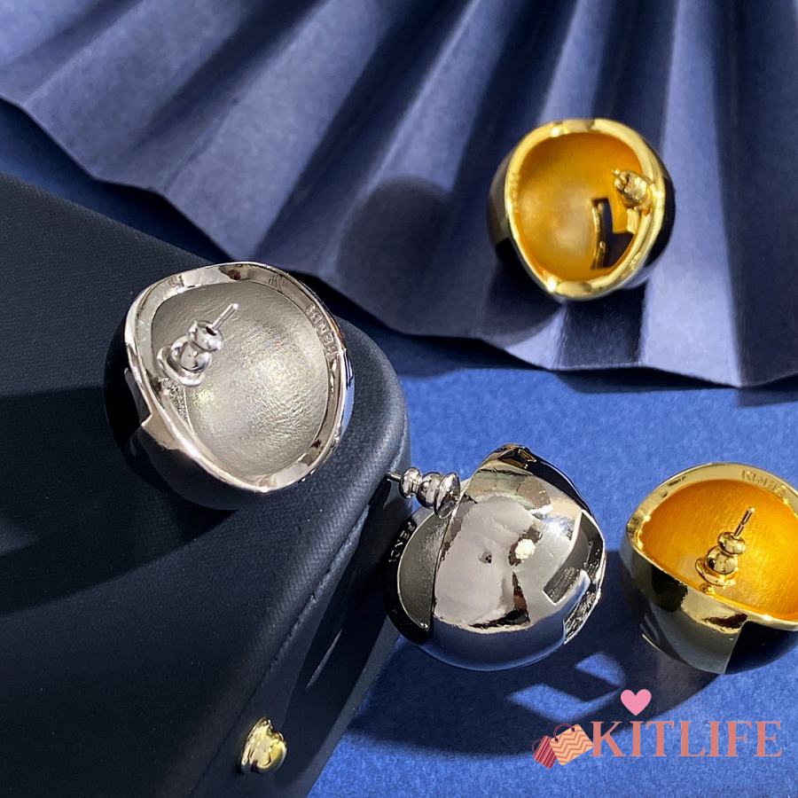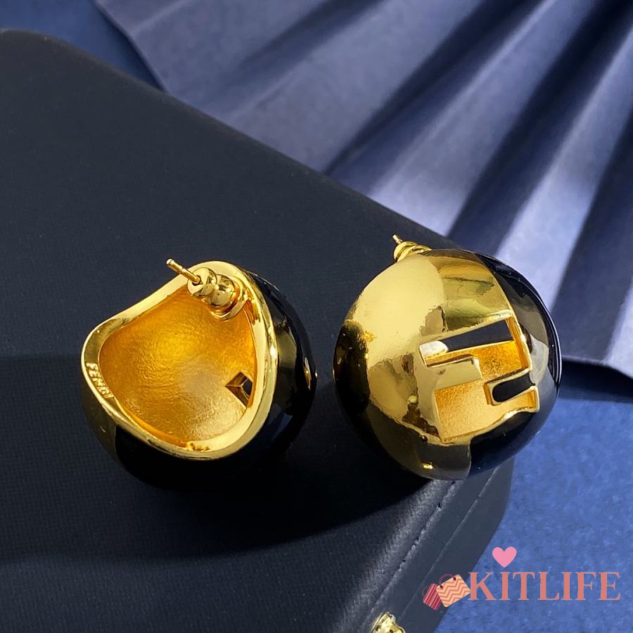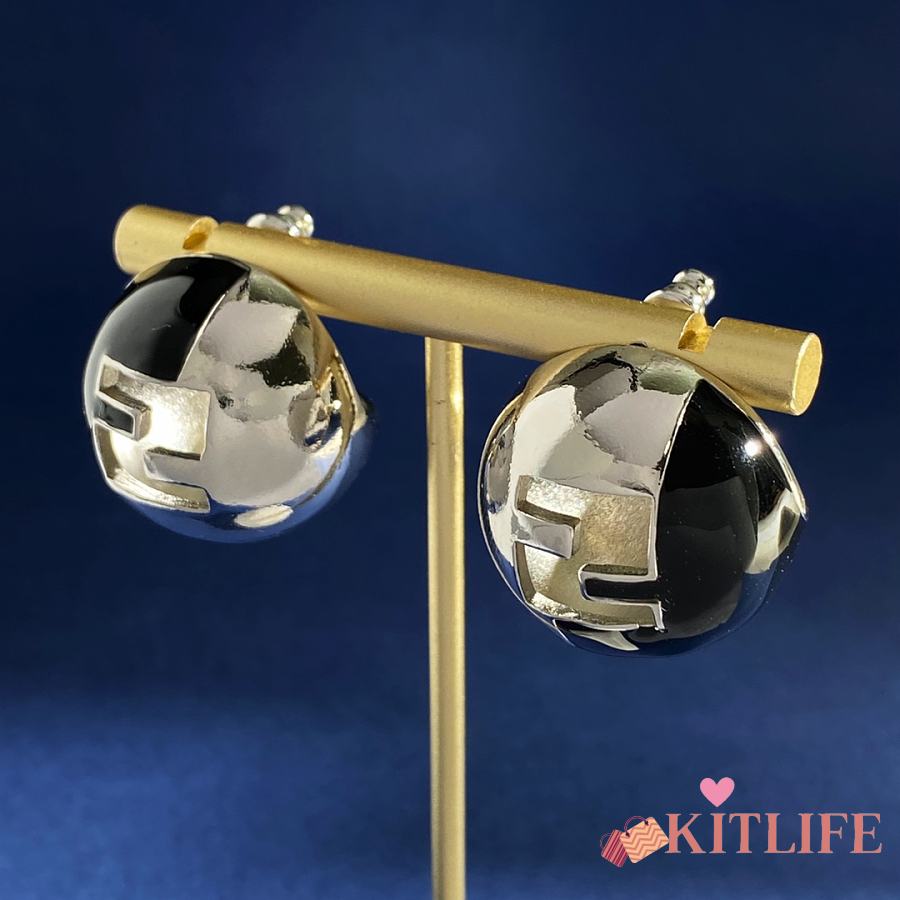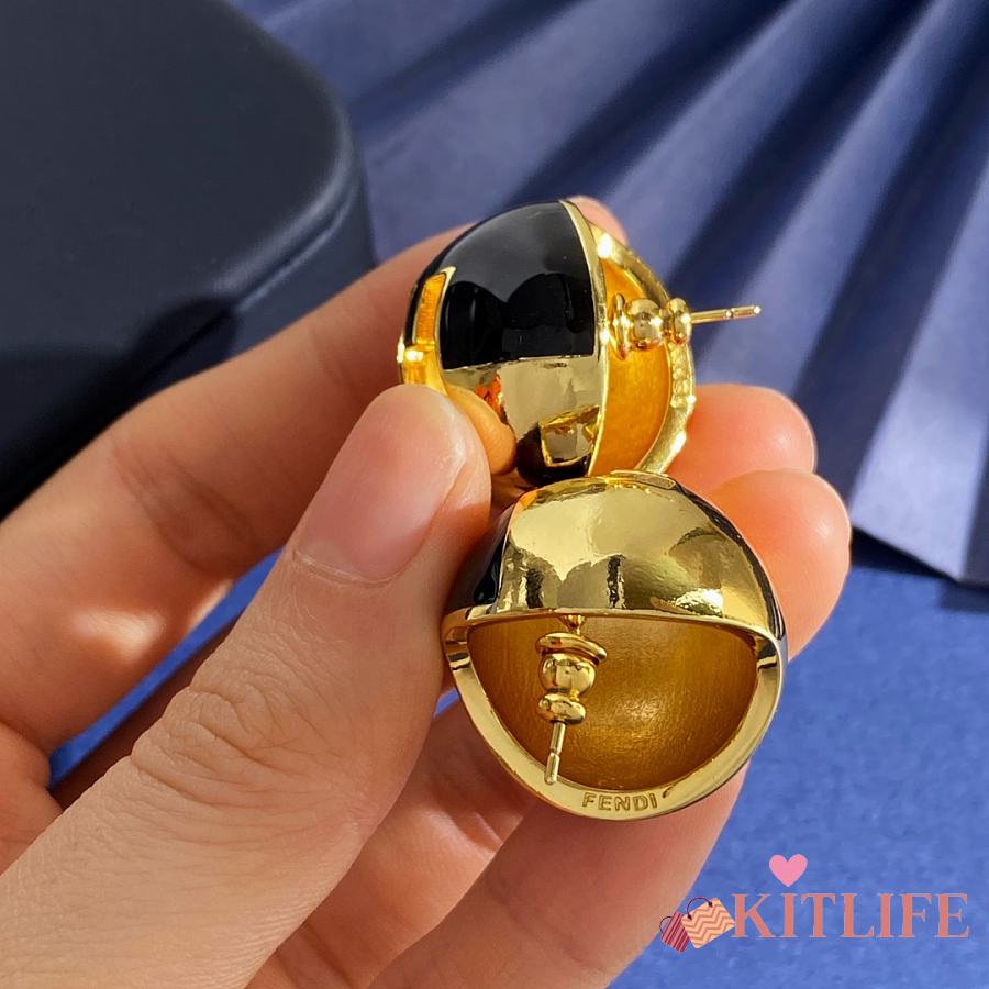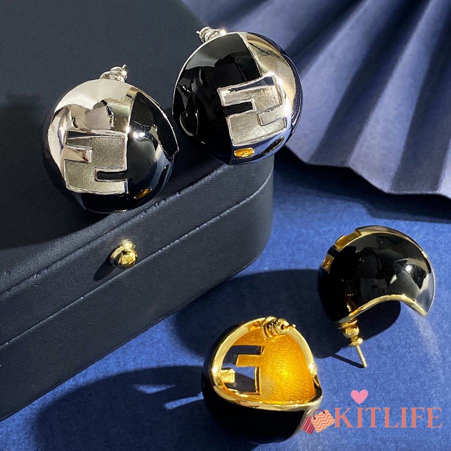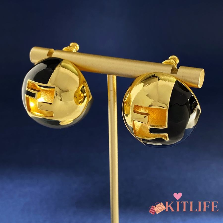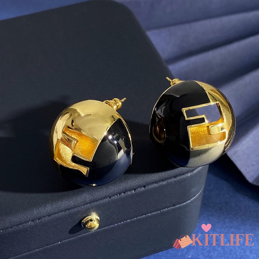 Kitlife Fendi Metal Spherical Half-black Oil Drop Earrings Gold / Silver