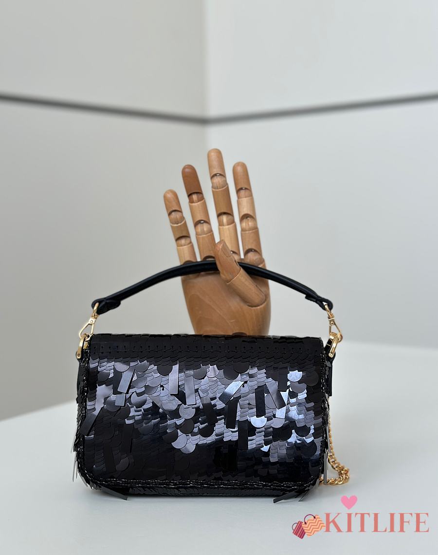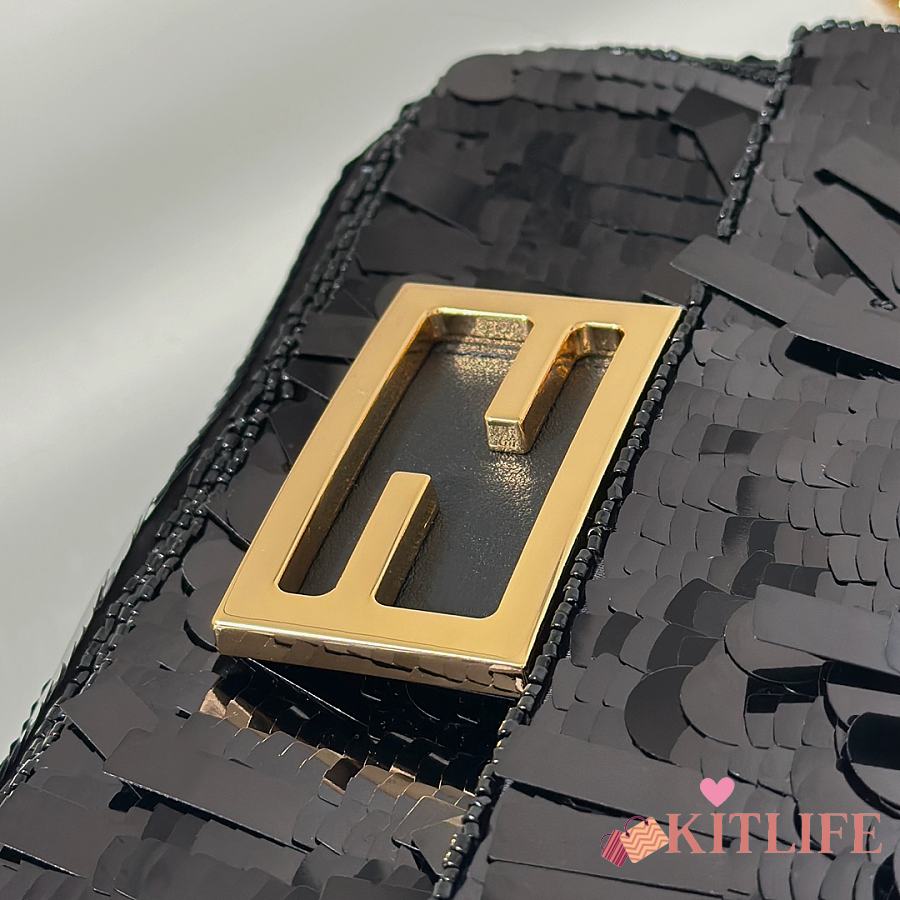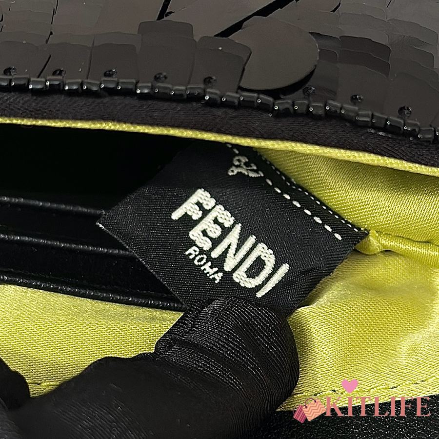 Kitlife Fendi Mini Bag Embroidered With Black Sequins 8601s 19x5x11cm