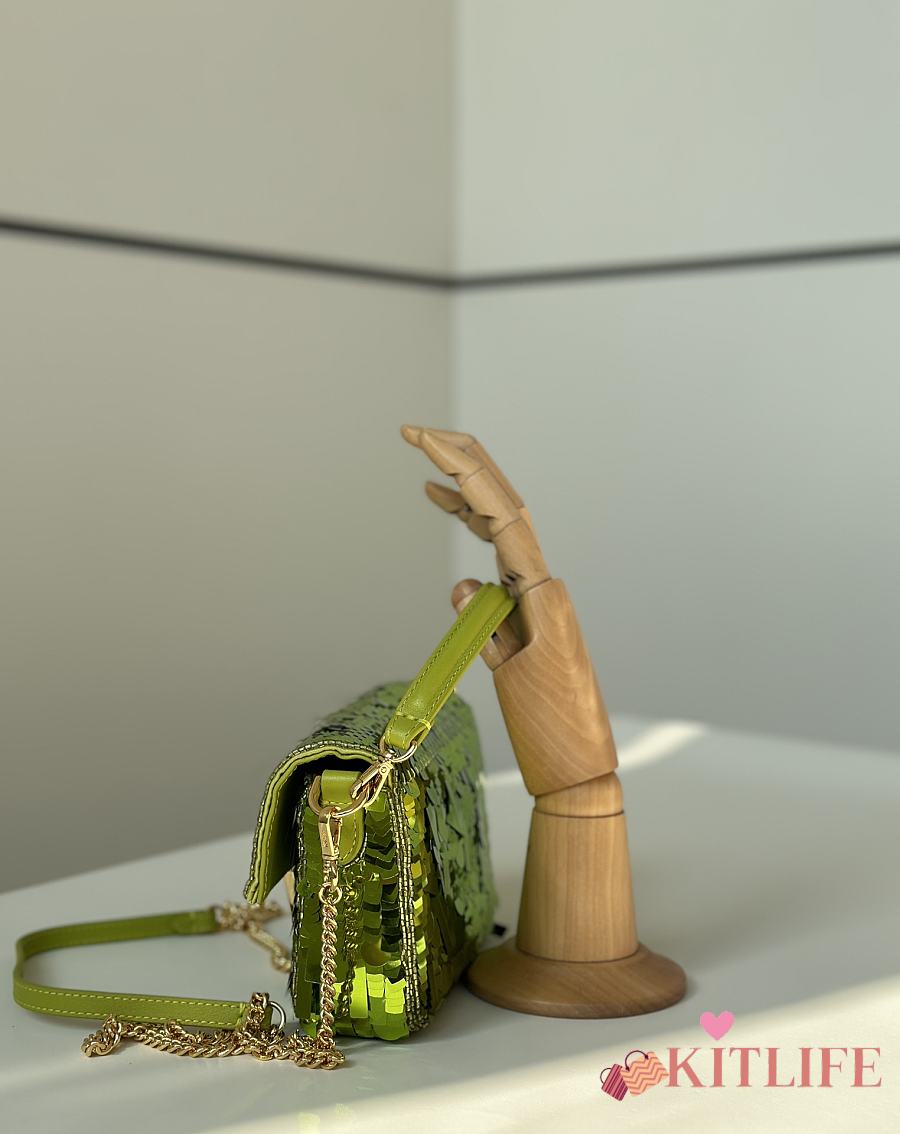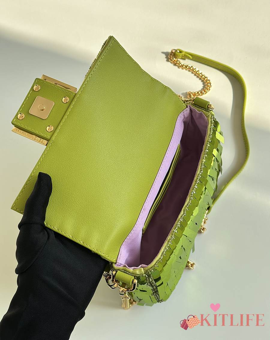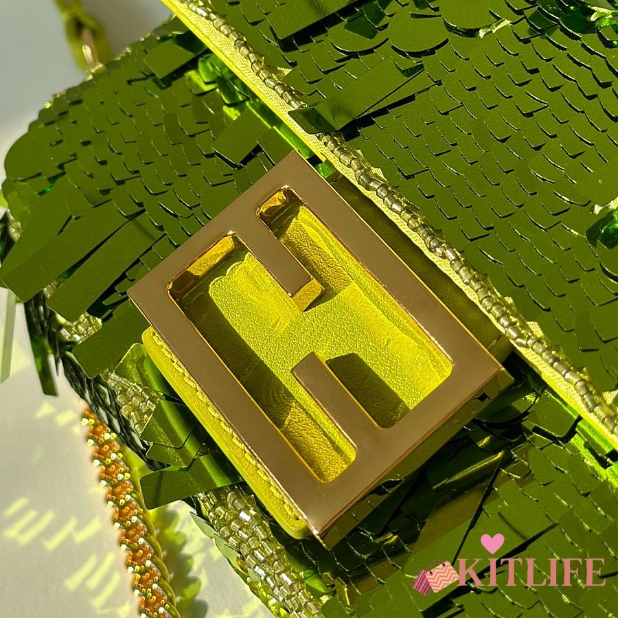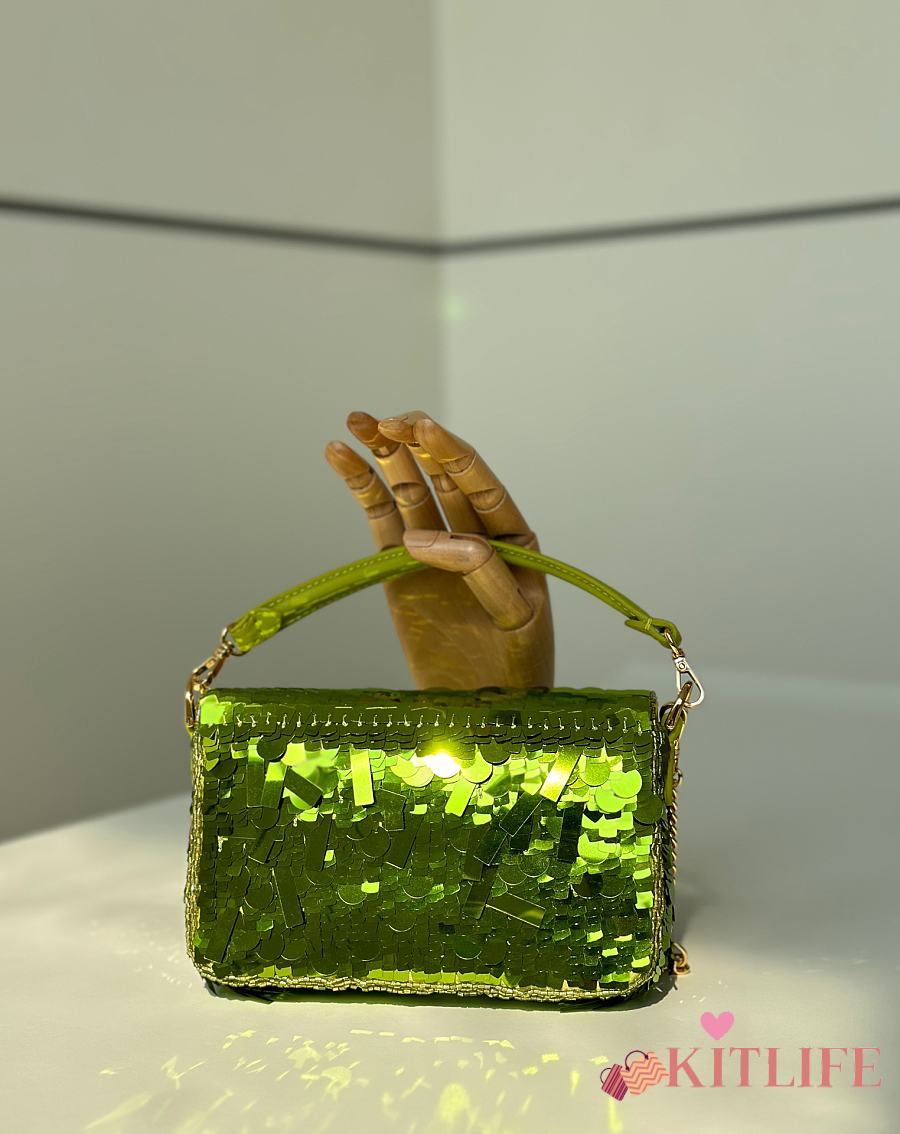 Kitlife Fendi Mini Bag Embroidered With Green Sequins 8601s 19x5x11cm