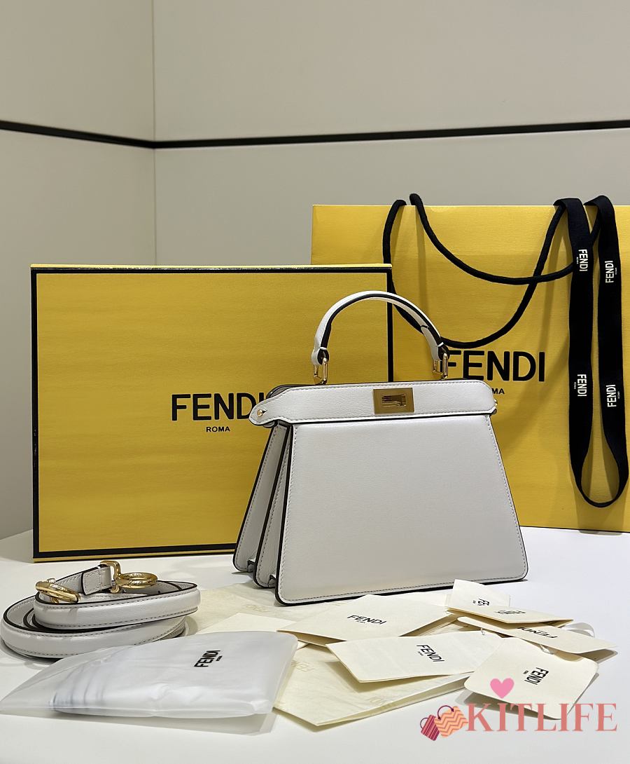 Kitlife Fendi Peekaboo ISeeU Small Bag White 20x11x15cm