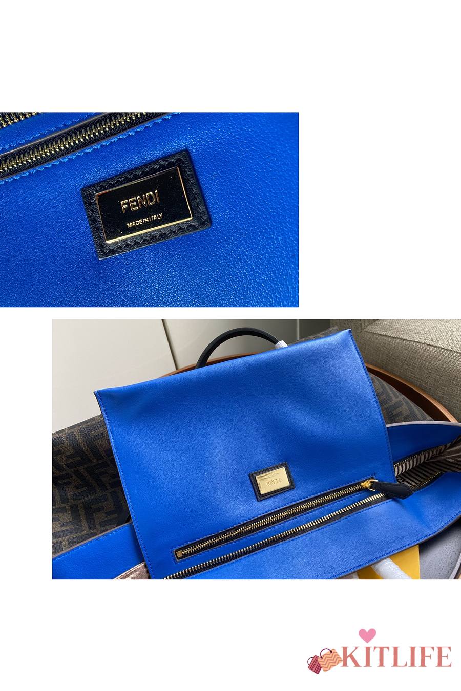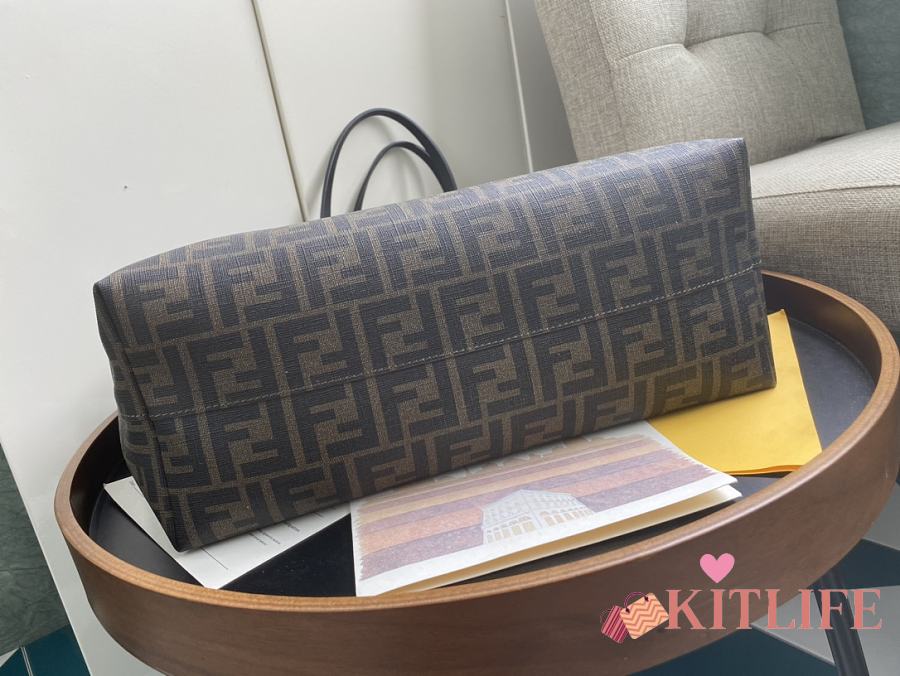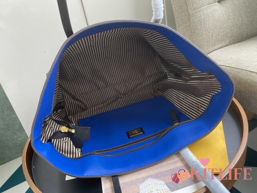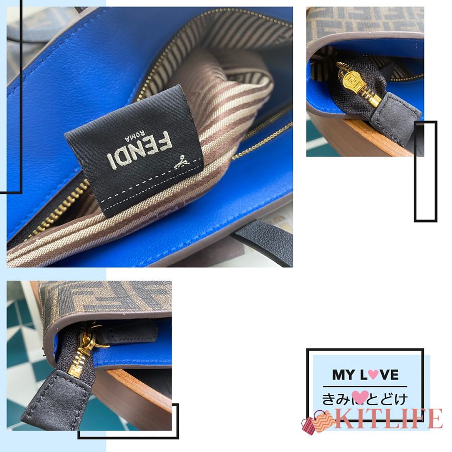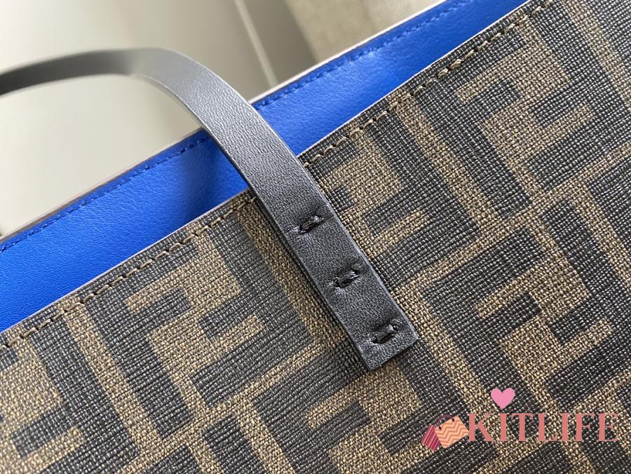 Kitlife Fendi Roll Shopping Bag in Brown FF jacquard Fabric And Blue 35x27x13.5cm