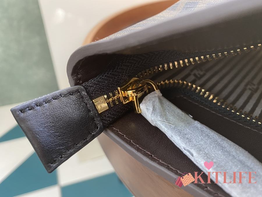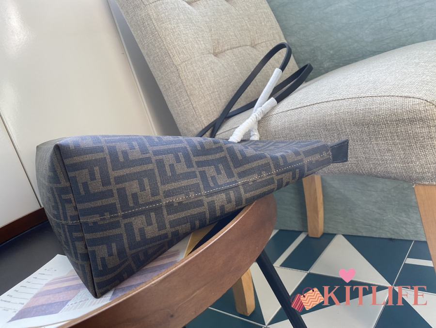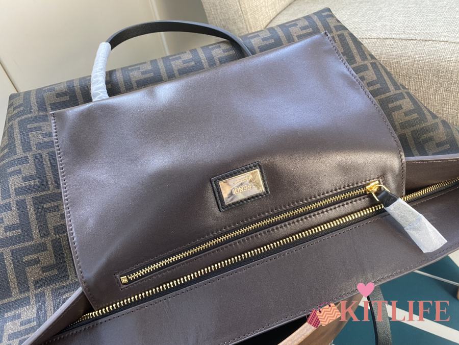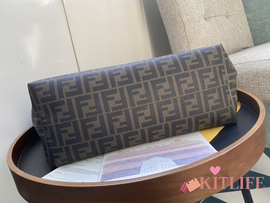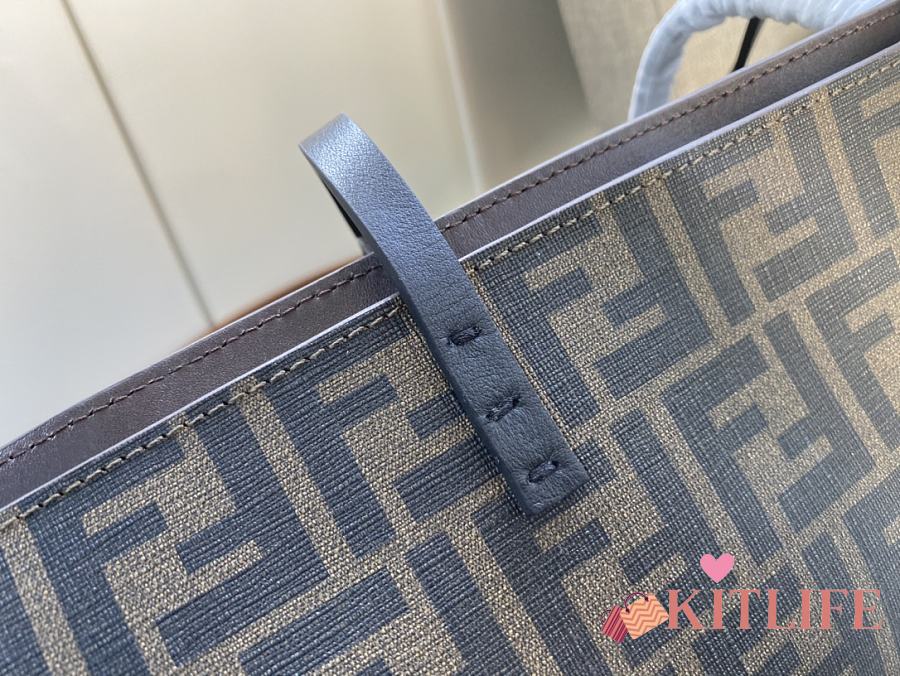 Kitlife Fendi Roll Shopping Bag in Brown FF jacquard Fabric And Brown Stripes 35x27x13.5cm