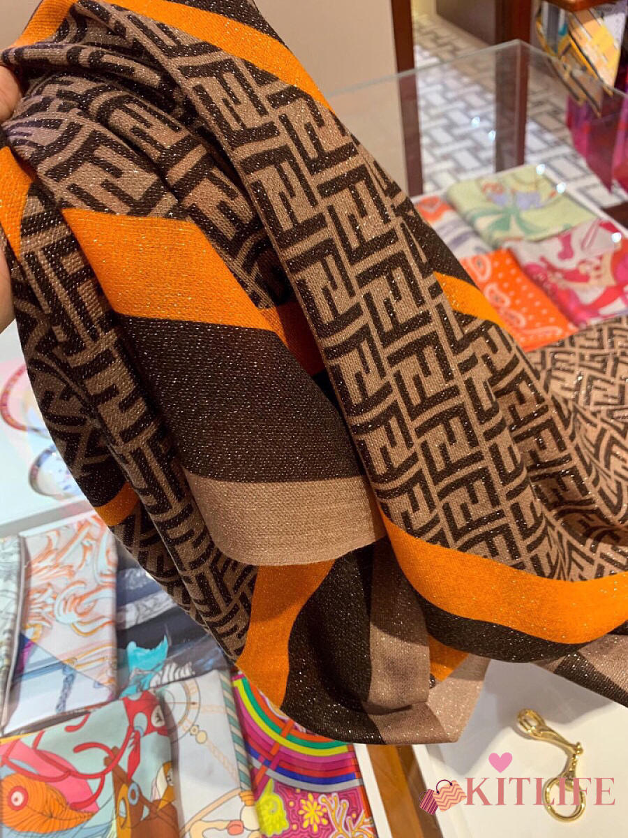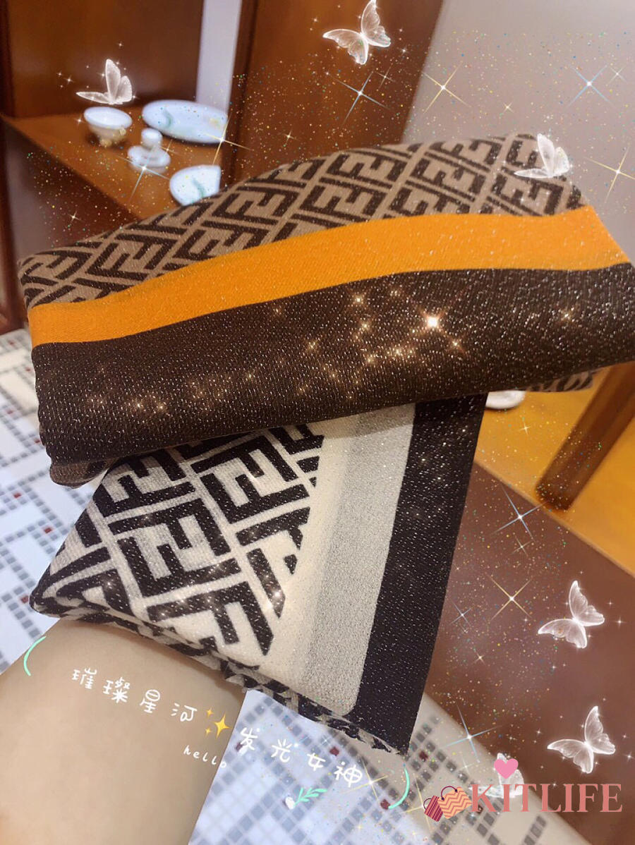 Kitlife Fendi Shining Goddess Shawl Scarf Brown & Yellow 100x200cm