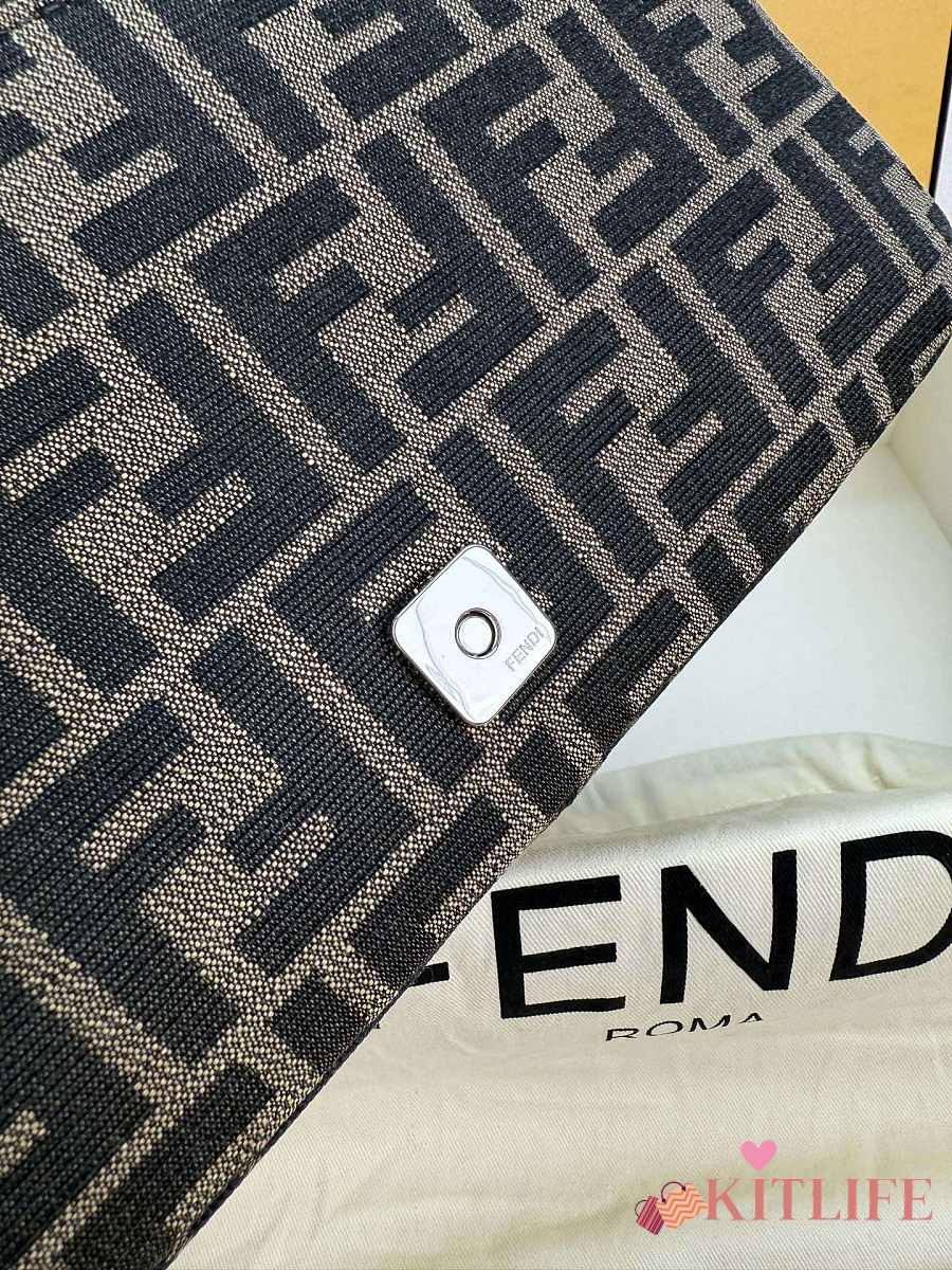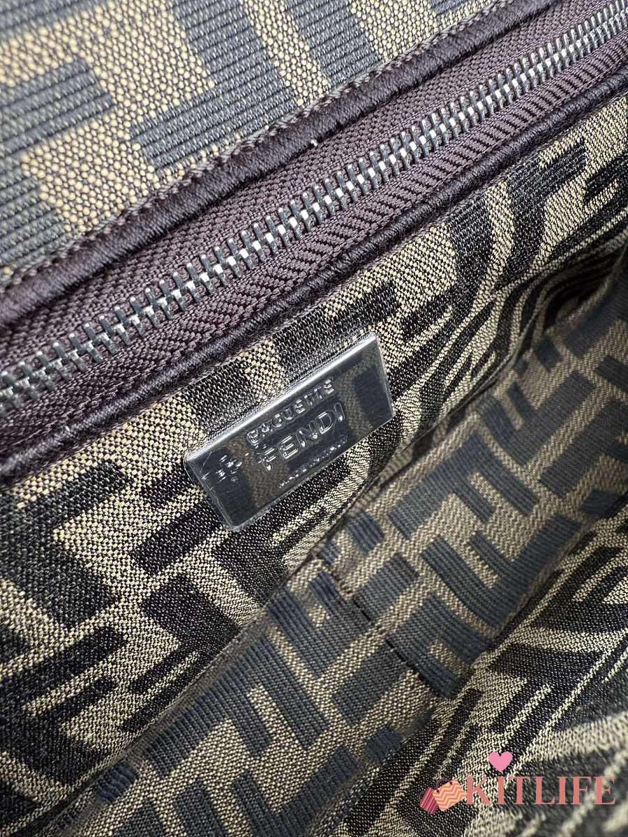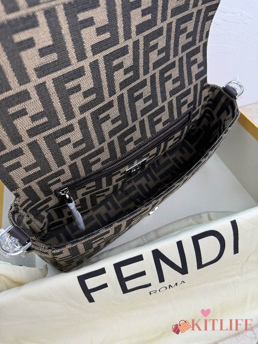 Kitlife Fendi Tobacco Brown FF Jacquard Fabric Bag Silver Buckle 27x6x15cm