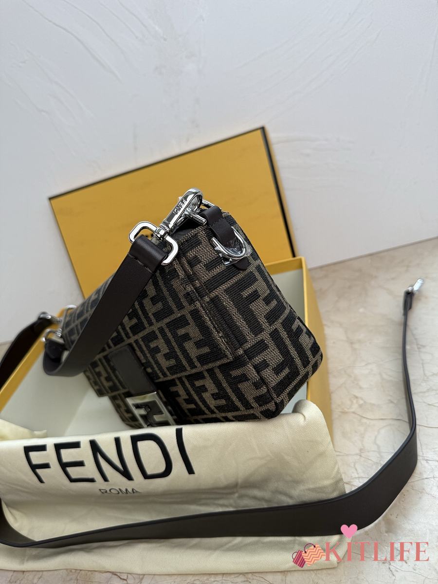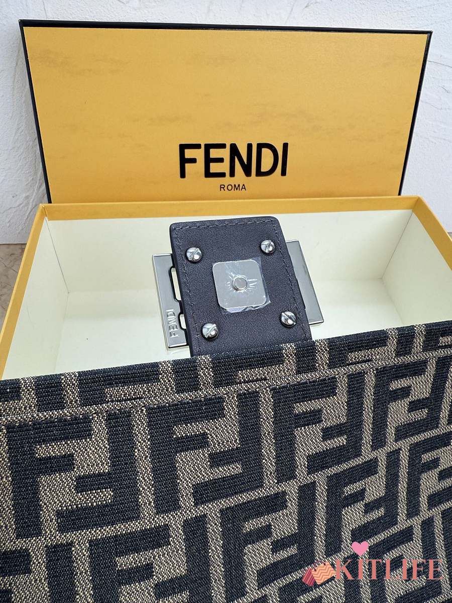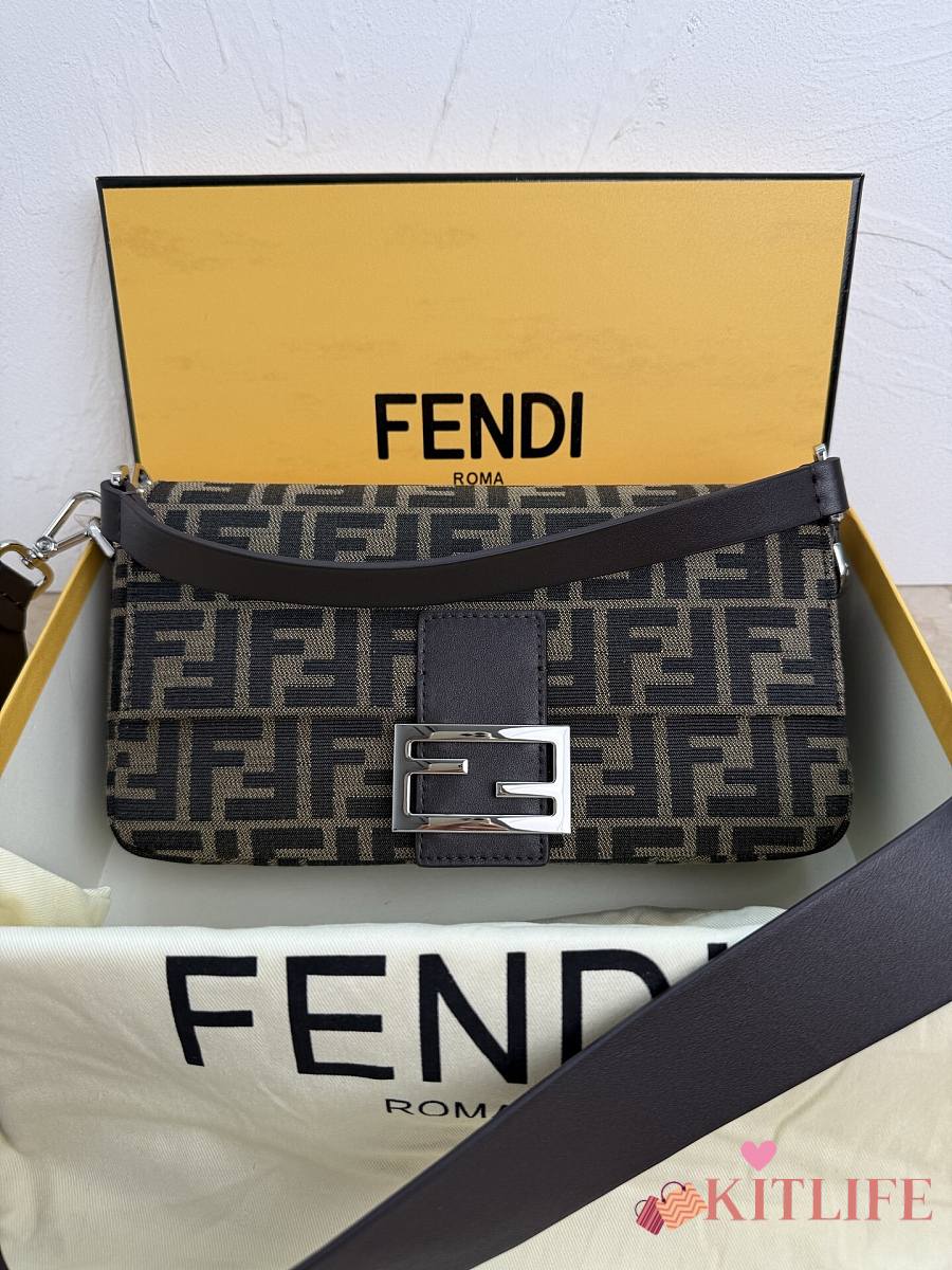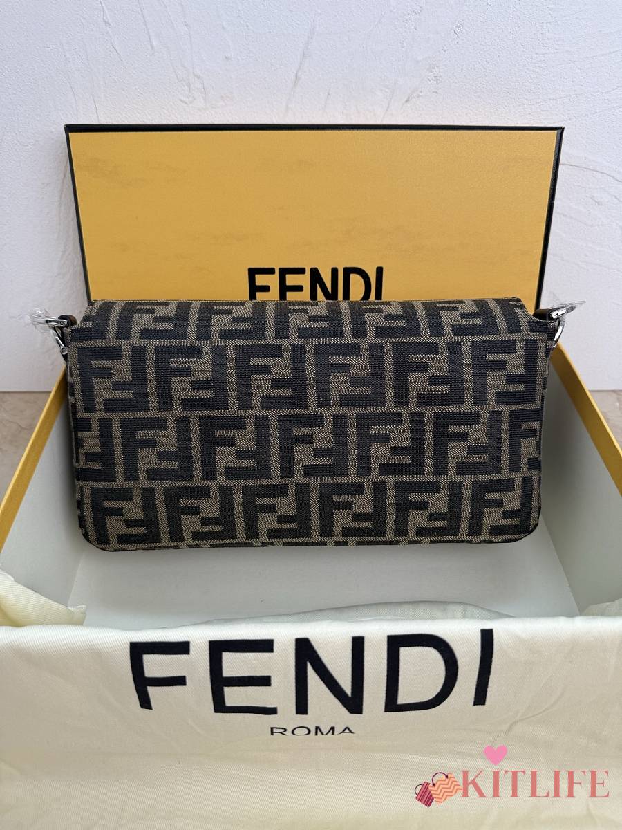 Kitlife Fendi Tobacco Brown FF Jacquard Fabric Bag Silver Buckle 27x6x15cm