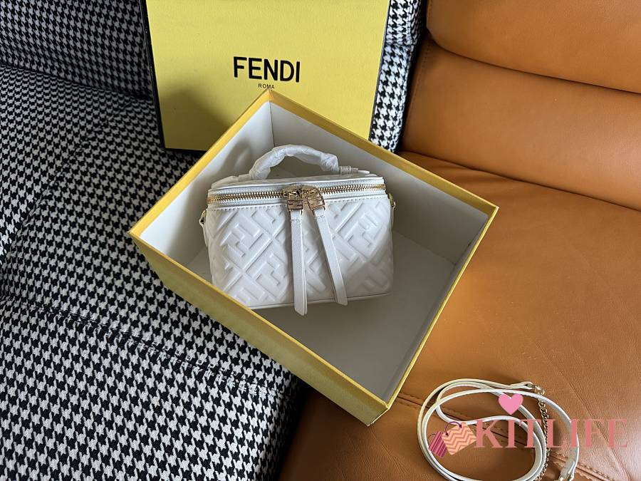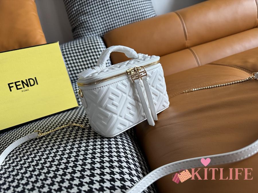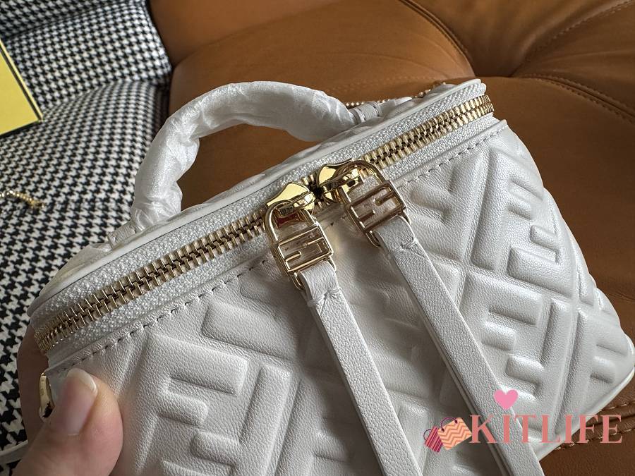 Kitlife Fendi White Nappa Leather Vanity Bag 16x8x11cm