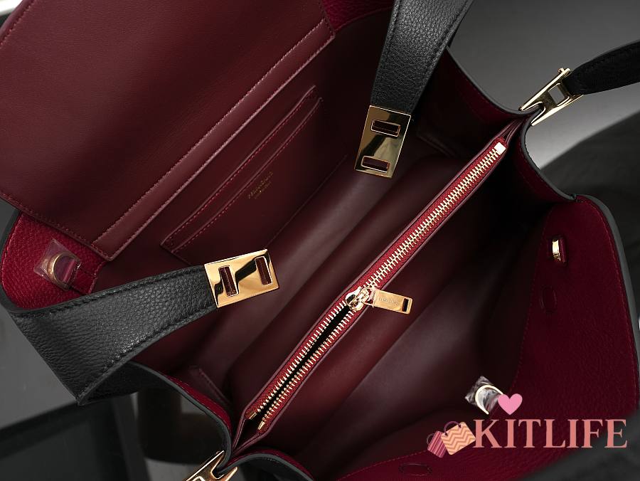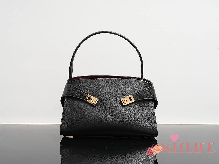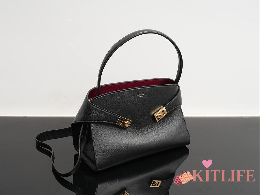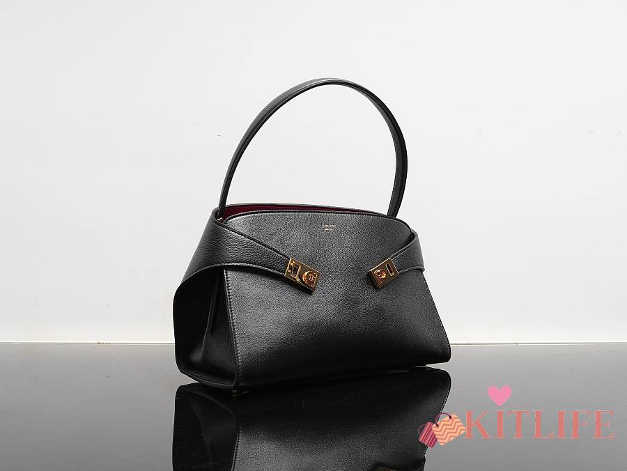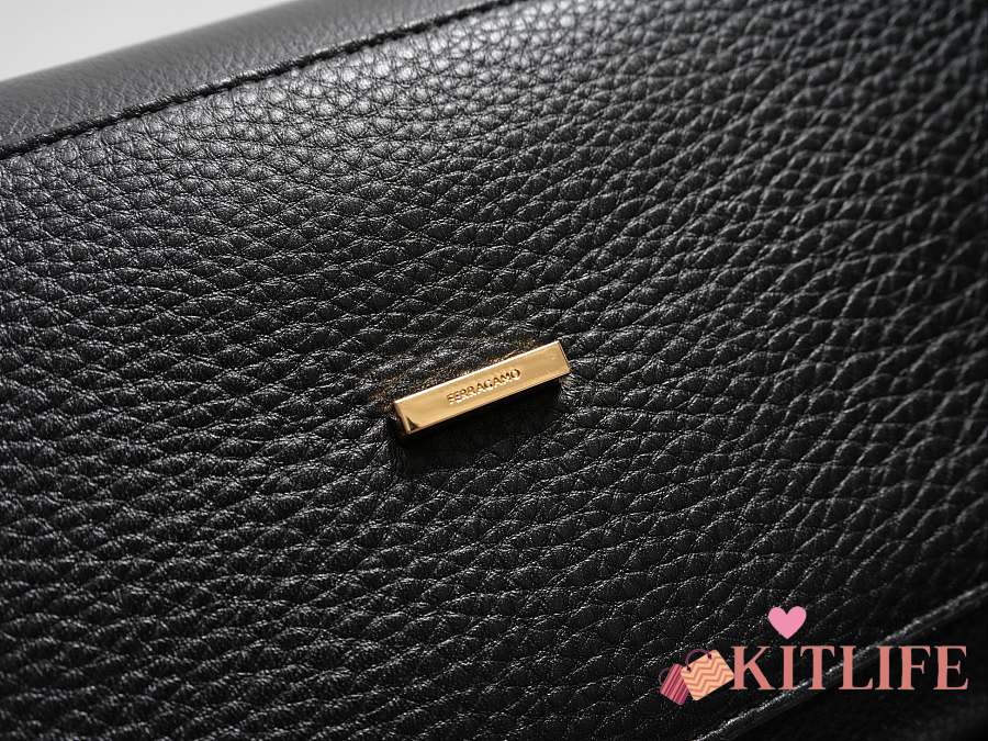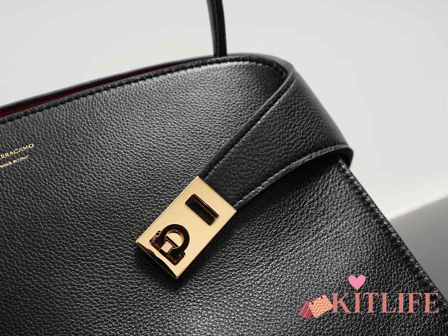 Kitlife Ferragamo Hug Soft Black Leather Handbag 34x25.5x15.5cm