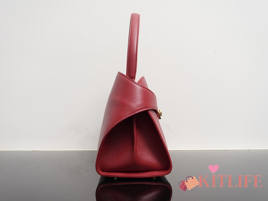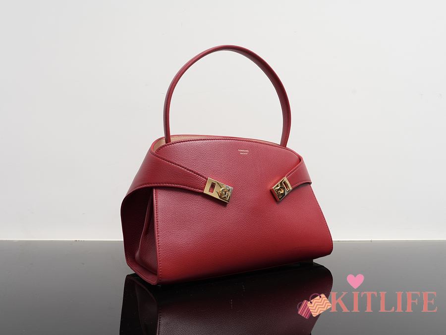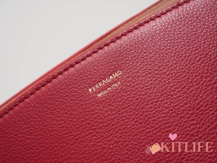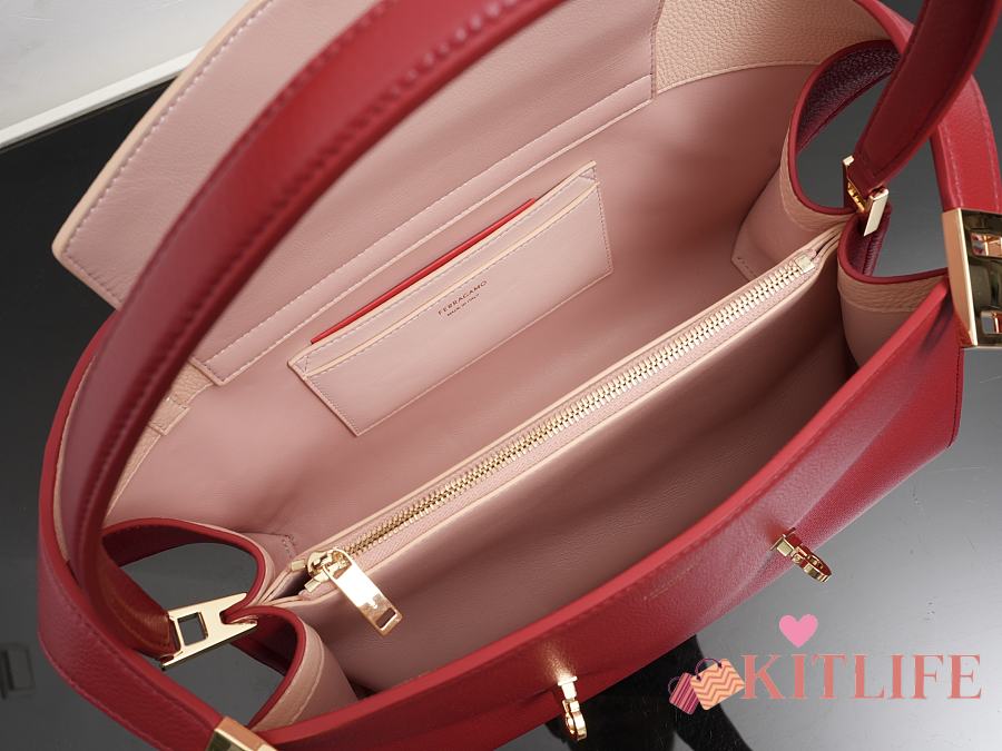 Kitlife Ferragamo Hug Soft Red Leather Handbag 34x25.5x15.5cm