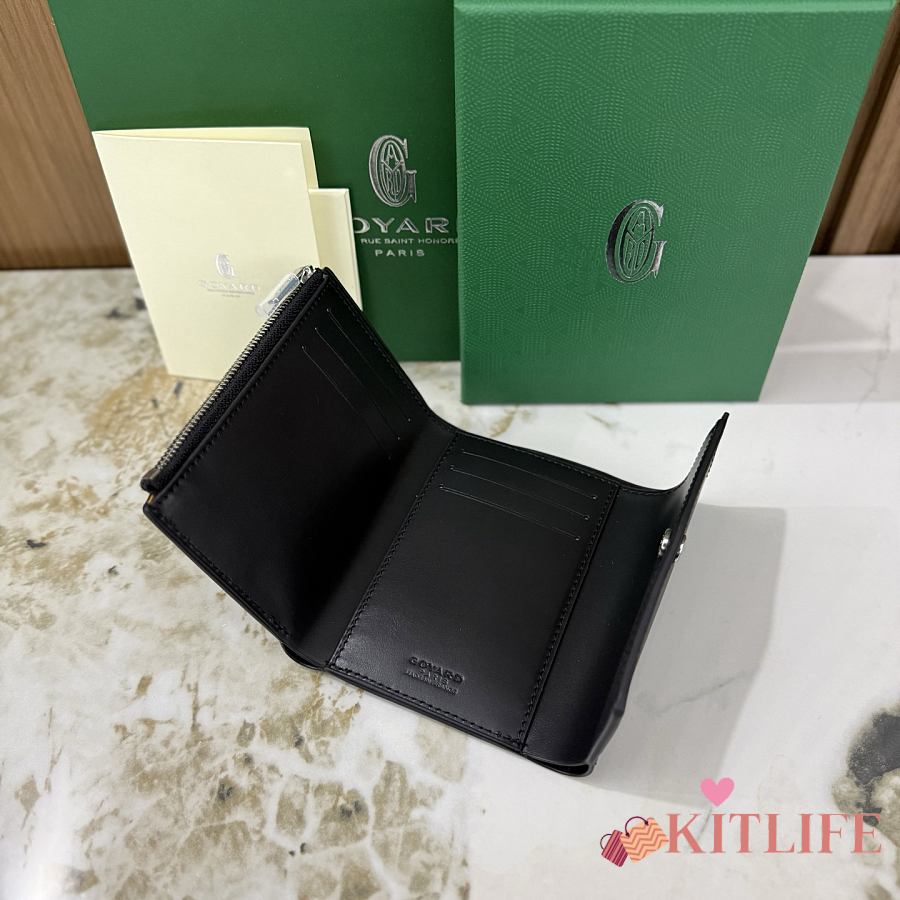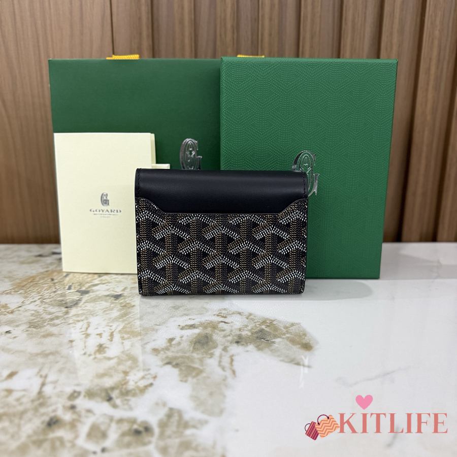 Kitlife Goyard Goyardine Saint-Gabriel Compact Wallet Black 12x2.5x9.3cm