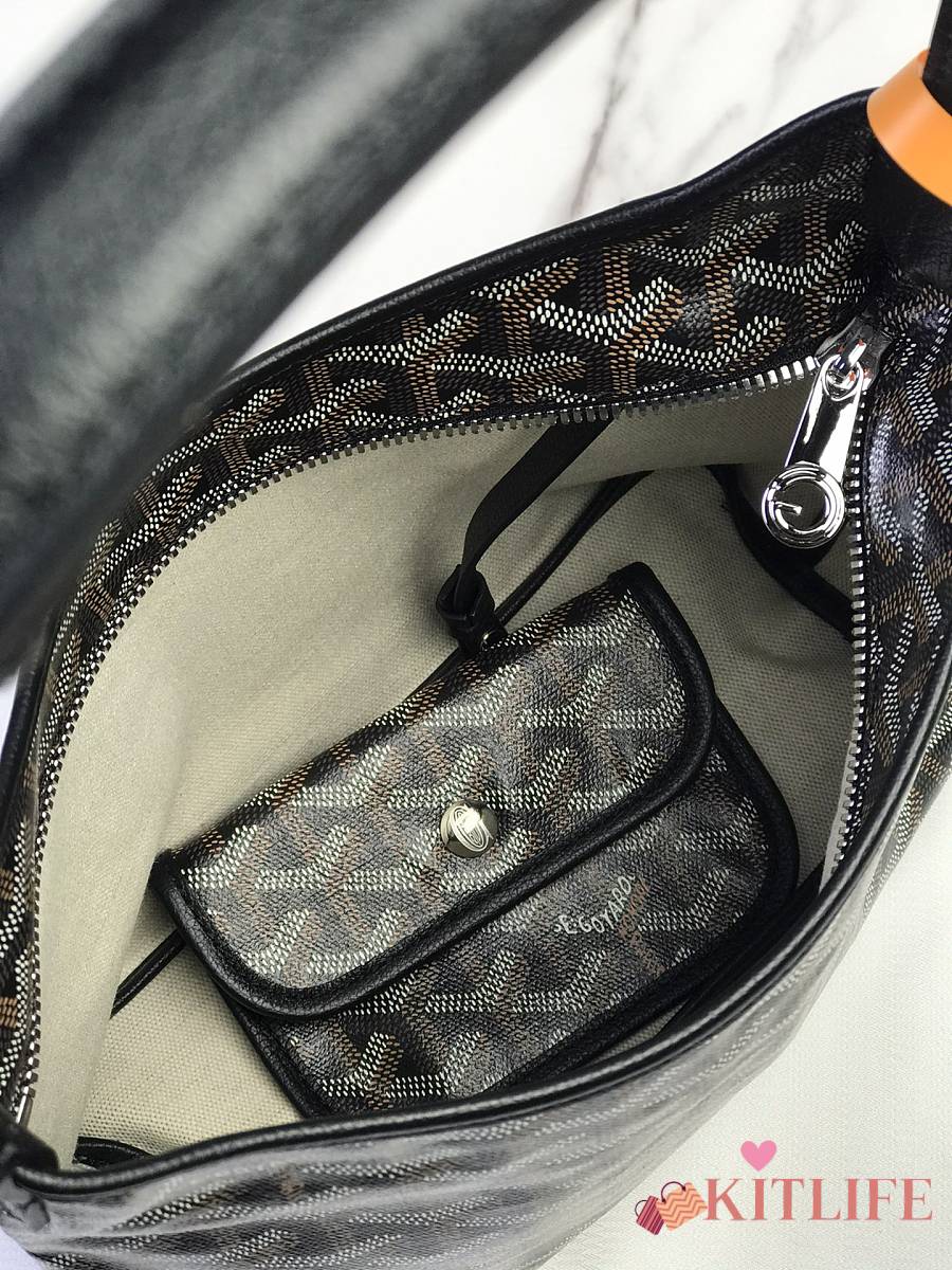 Kitlife Goyard Mini Bohème Hobo Goyardine Canvas Black Bag 120250 26x11x22cm