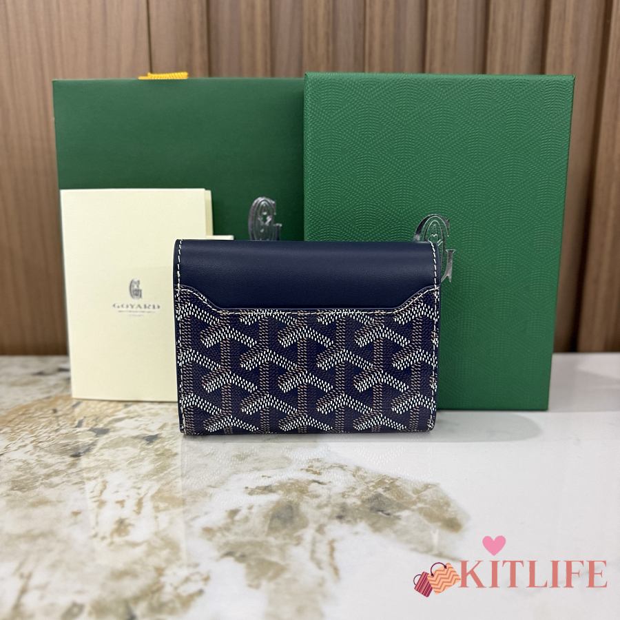 Kitlife Goyard Goyardine Saint-Gabriel Compact Wallet Dark Blue 12x2.5x9.3cm