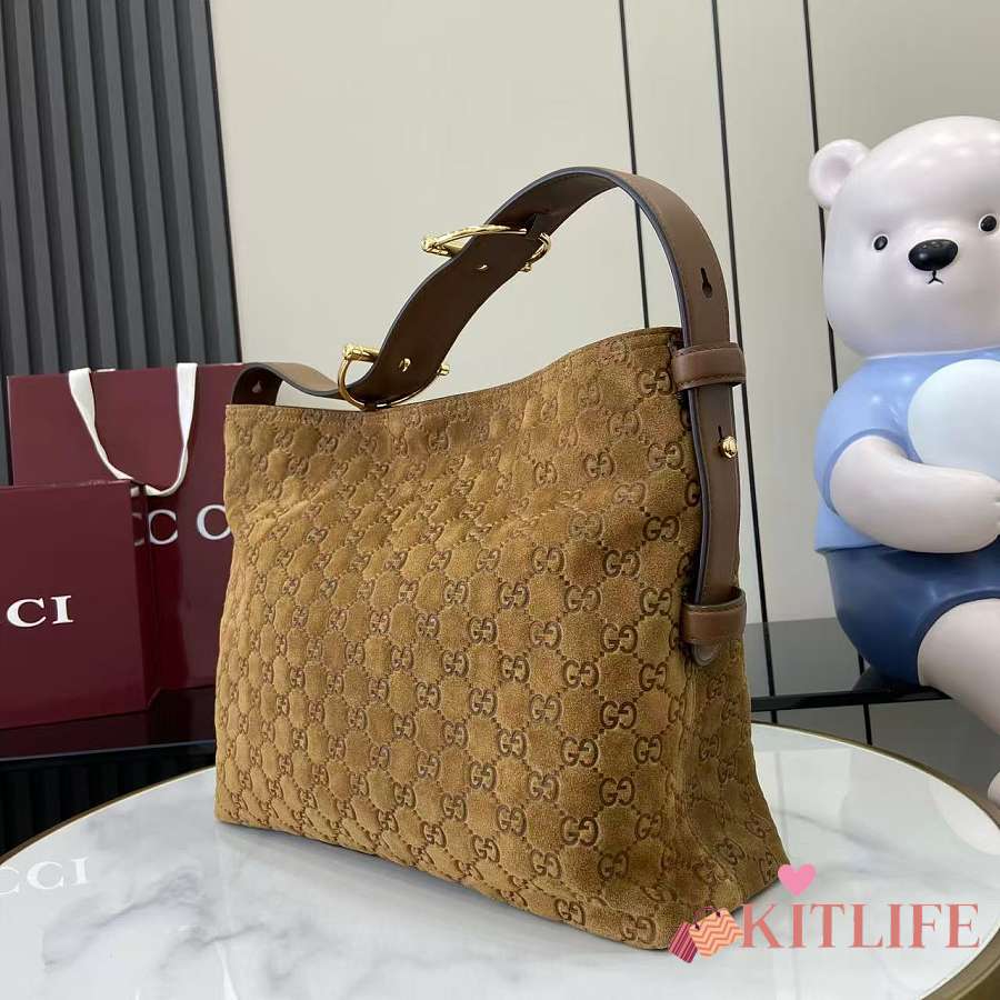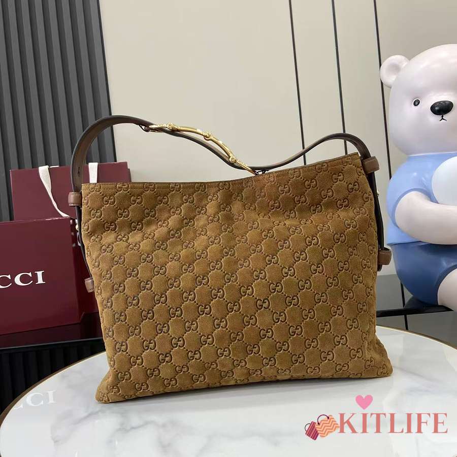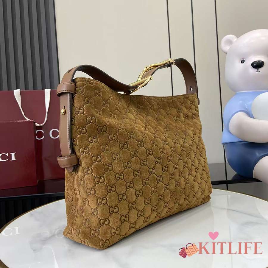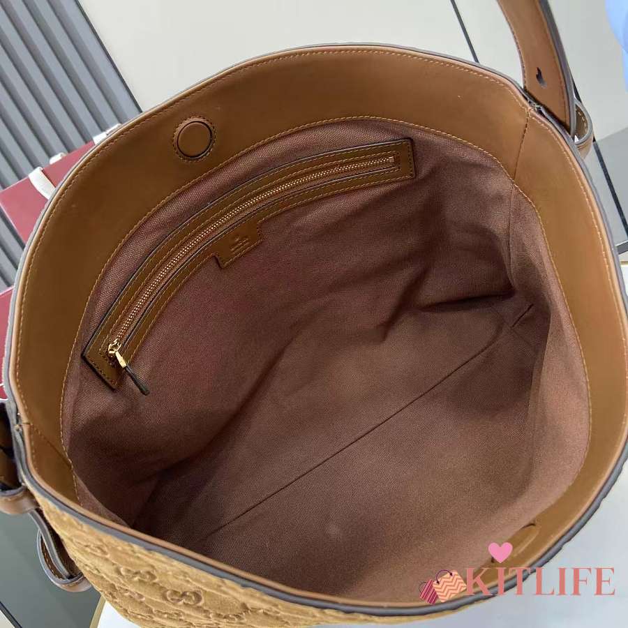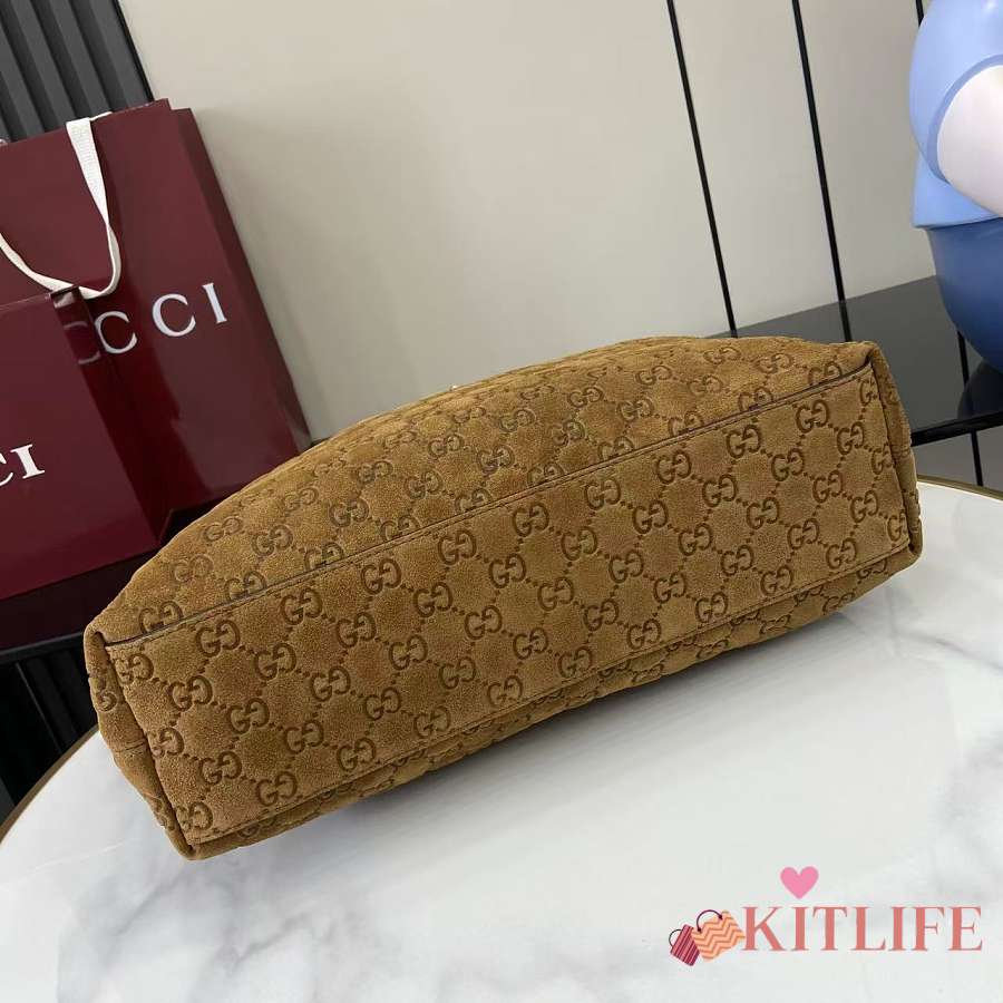 Kitlife Gucci Beatrix Medium Tote Bag Brown Embossed GG Suede 850926 35x27.5x11cm
