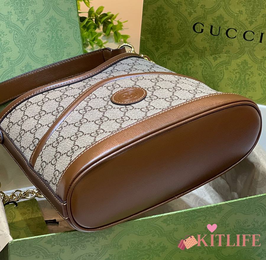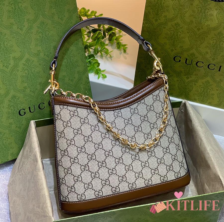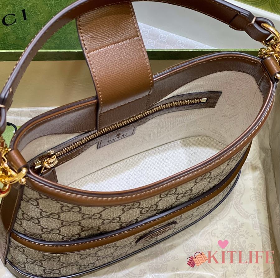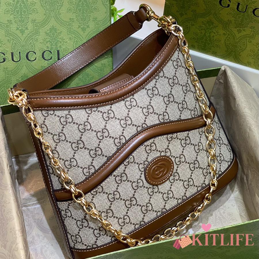 Kitlife Gucci Beige GG Supreme Retro Interlocking G Hobo Bag 696011 24.5x20x8cm