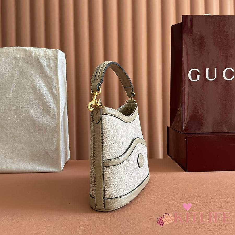 Kitlife Gucci Mini Bucket Bag Natural Canvas Brown Leather Trim - 782908 - 18.5x20.5x12.5cm