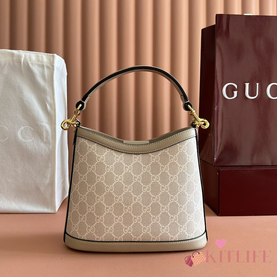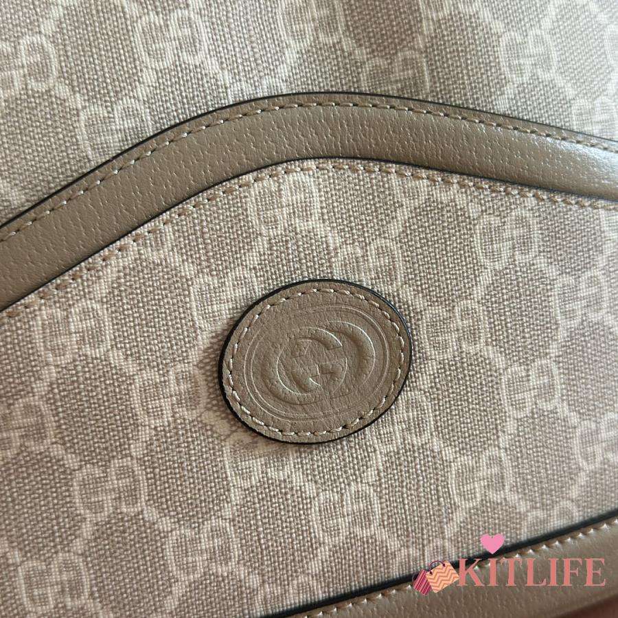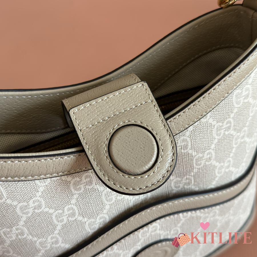 Kitlife Gucci Beige GG Supreme Retro Interlocking G Hobo Bag White 696011 24.5x20x8cm
