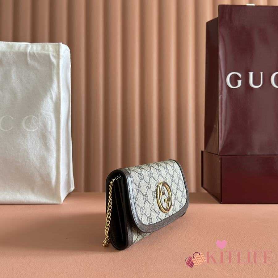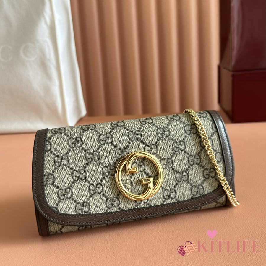 Kitlife Gucci Blondie Wallet On Chain In Beige And Ebony Supreme 725215 21x10.5cm