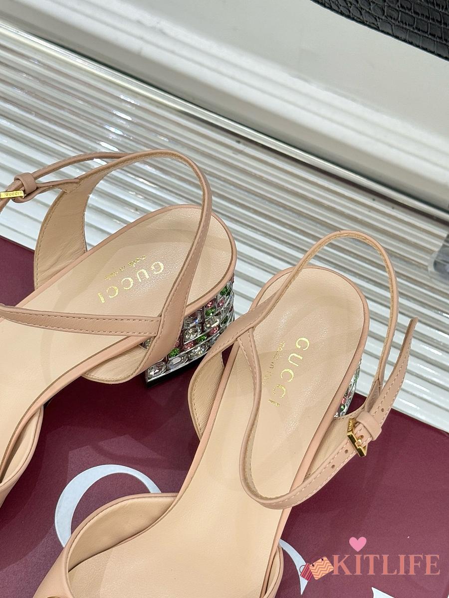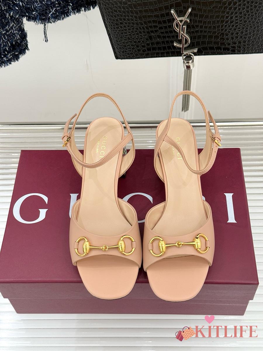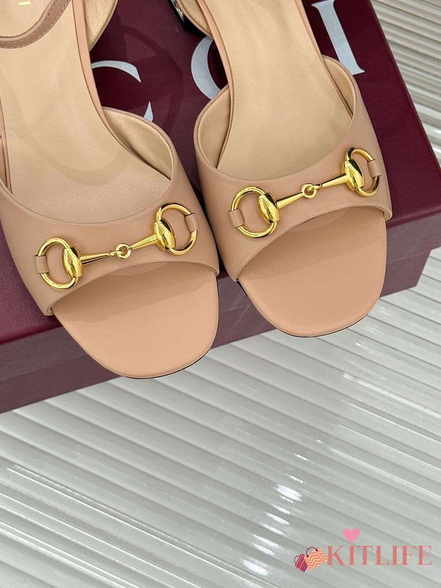 Kitlife Gucci Classic Horsebit Rhinestone Chunky Heel 55mm Sandals Beige