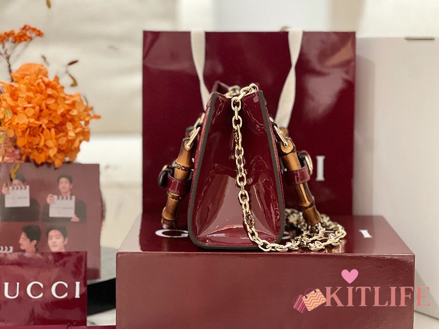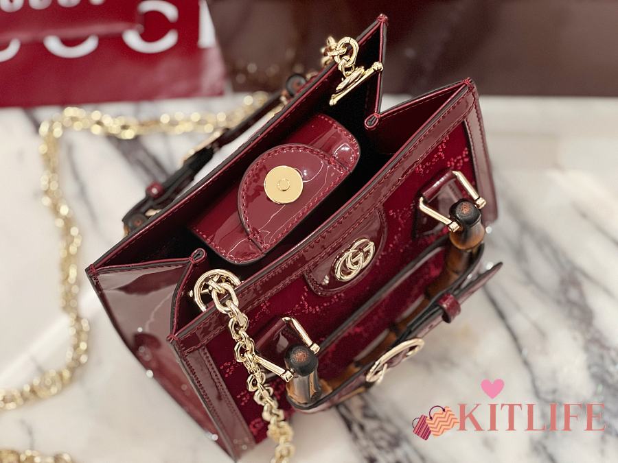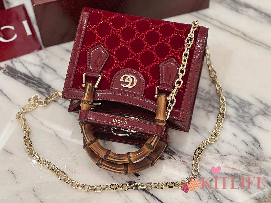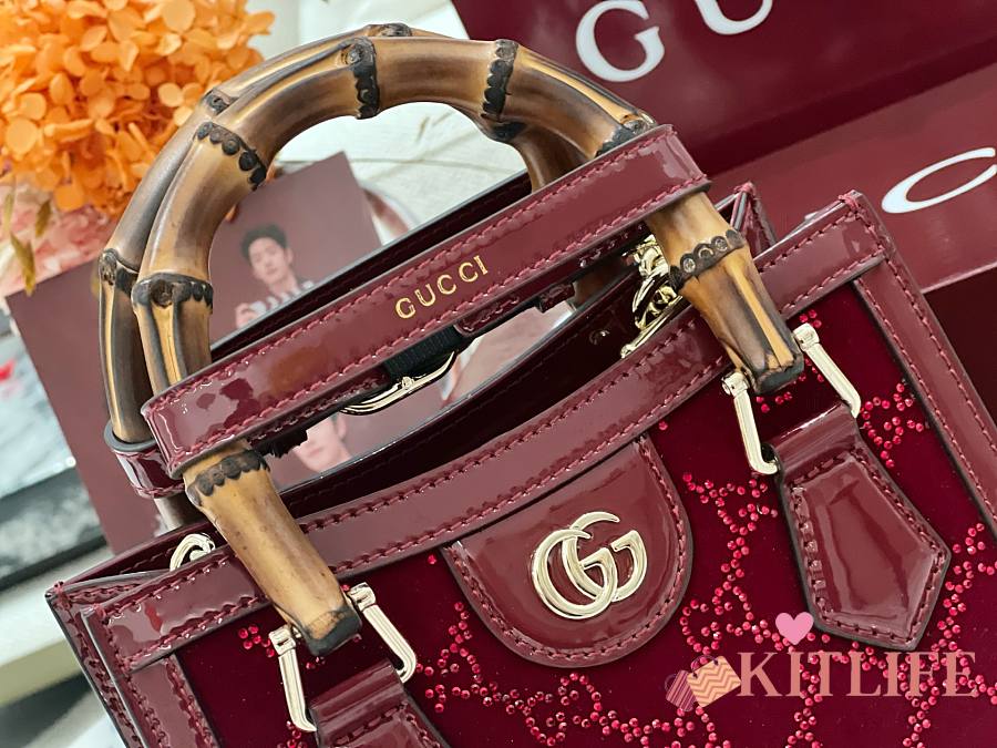 Kitlife Gucci Diana Crystals Small Tote Bag Rosso Ancora Red Velvet 707449 20×16×10cm