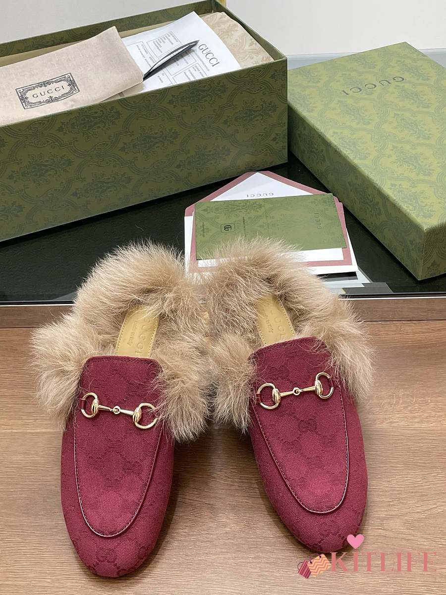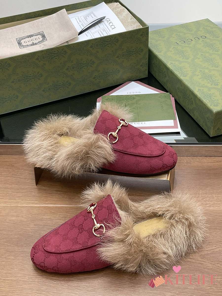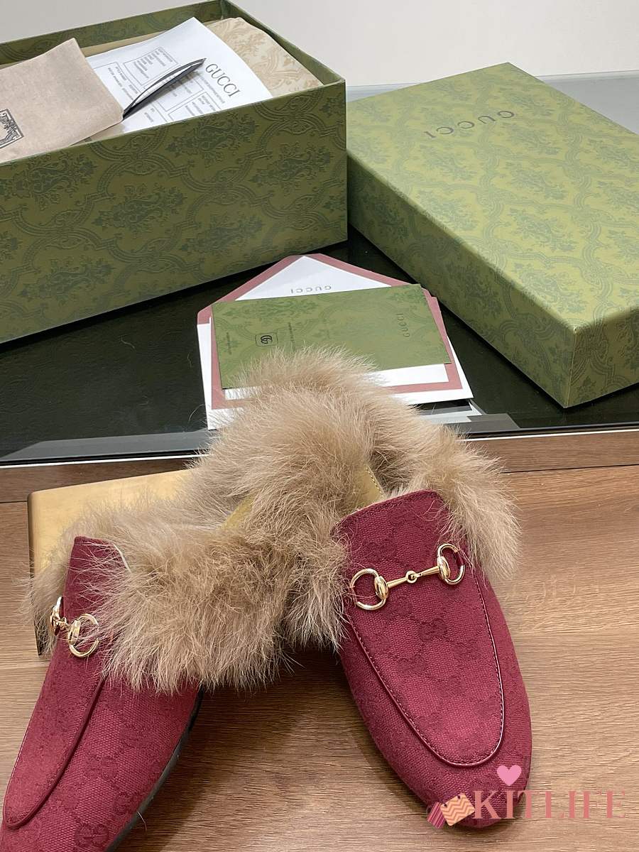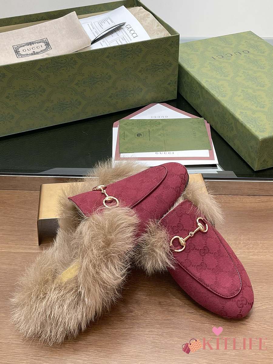 Kitlife Gucci Fur Women Princetown Slippers Red