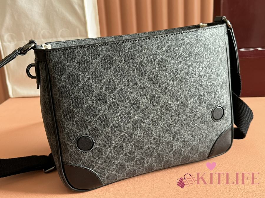 Kitlife Gucci GG Emblem Medium Crossbody Bag Black 821154 29×23×7.5cm