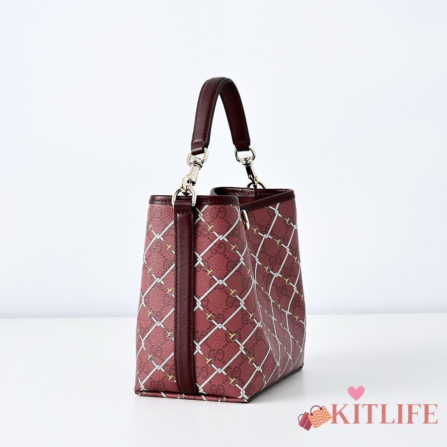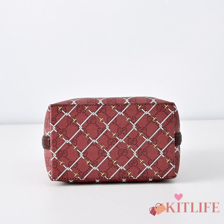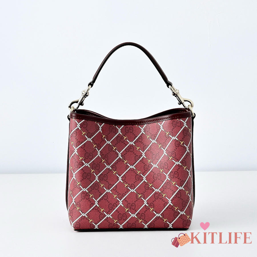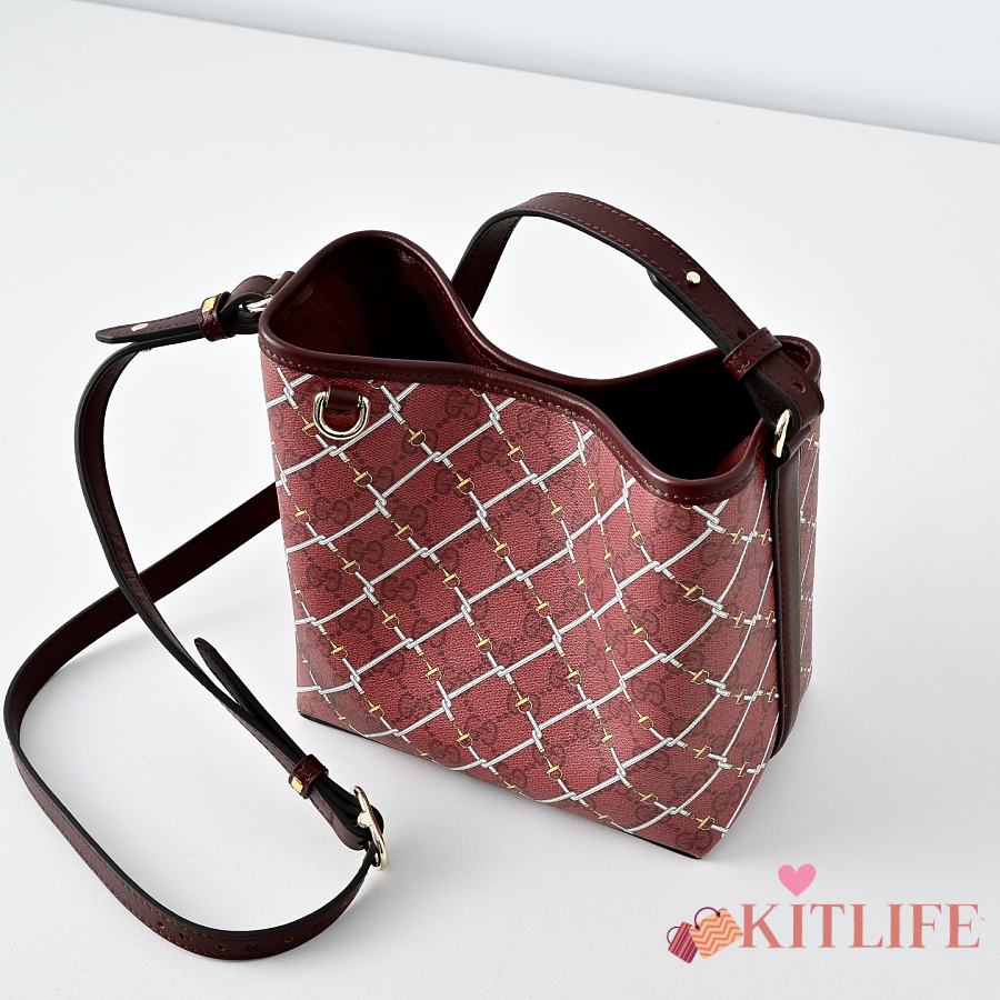 Kitlife Gucci GG Emblem Small Bucket Bag Rosso Ancora Red 815118 19×18×11cm
