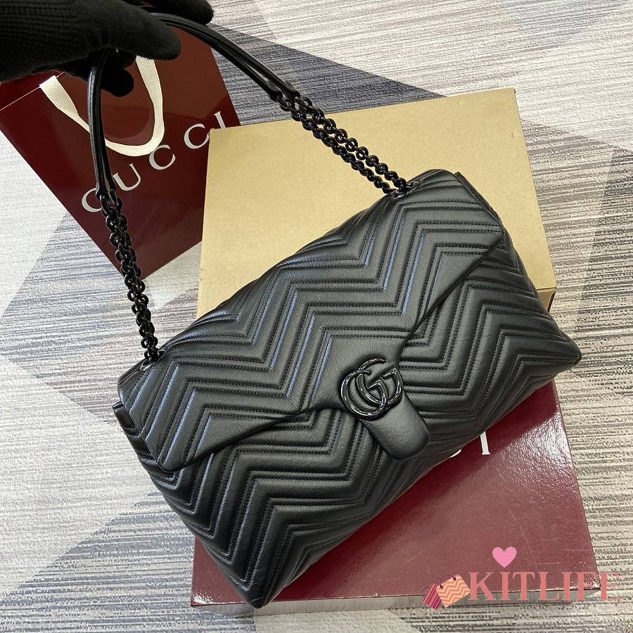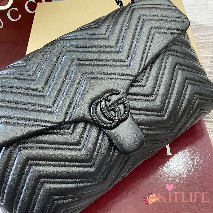 Kitlife Gucci GG Marmont Large Shoulder Bag Black 850659 37.5x21x9cm